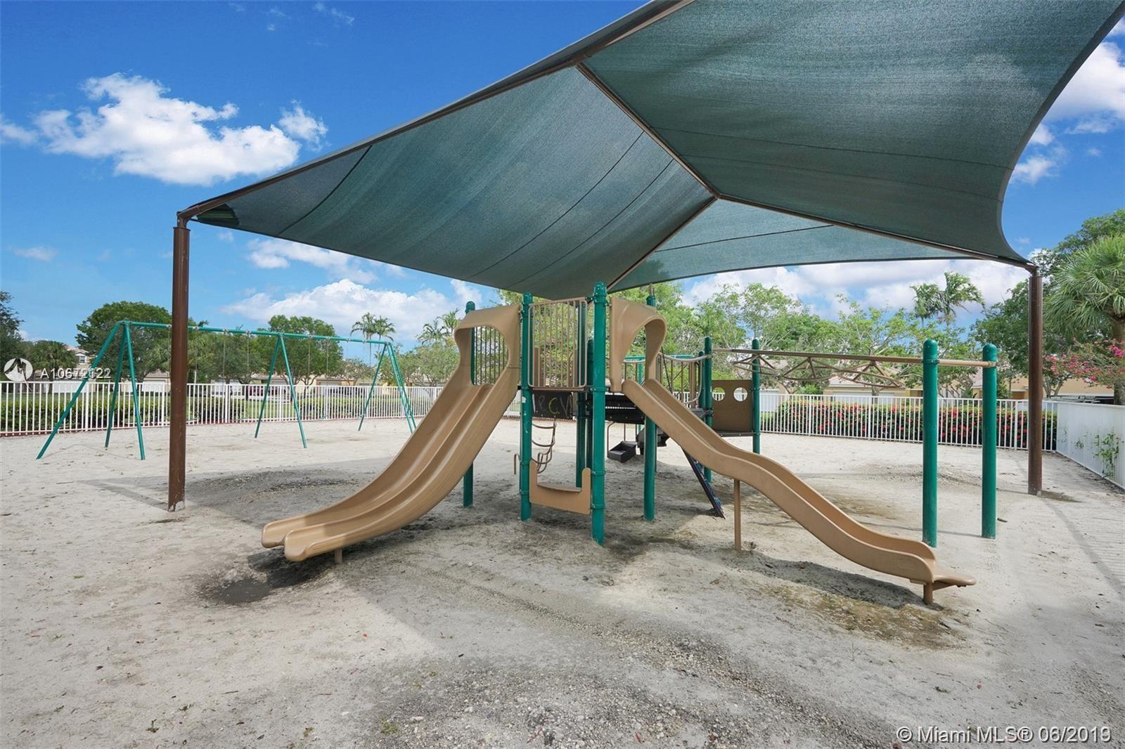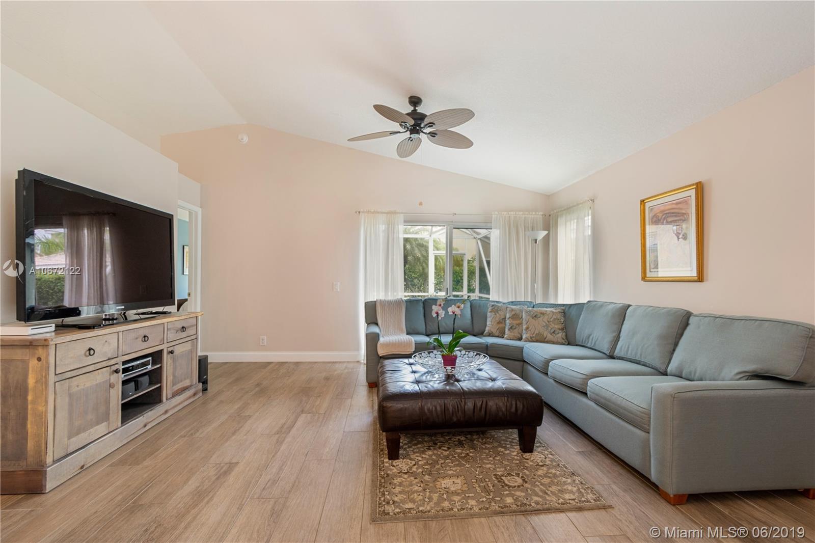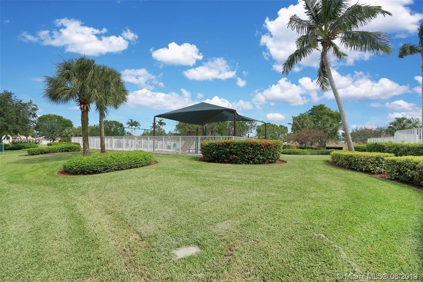GREAT FAMILY HOME IN WESTON! Lovely move-in ready one story 3-bedroom 2-bath split bedroom plan with 2-car garage! Home features an open concept floor plan, newer flooring +volume ceilings throughout, spacious living/family area, newer kitchen with gorgeous granite counter-tops, custom kitchen cabinetry, large pantry, lots of storage space and stainless appliances! Guest bedrooms come with custom organized closets! Large Master Suite, big walk-in closet, newer en-suite with seamless glass shower enclosure and rain shower head! There's a private enclosed terrace off the Master Suite, perfect for extra outdoor living space or play area for the little ones! Close to best A+Rated Schools, shops +major roadways and much more! Low HOA fees! Large social pool with children's play area!