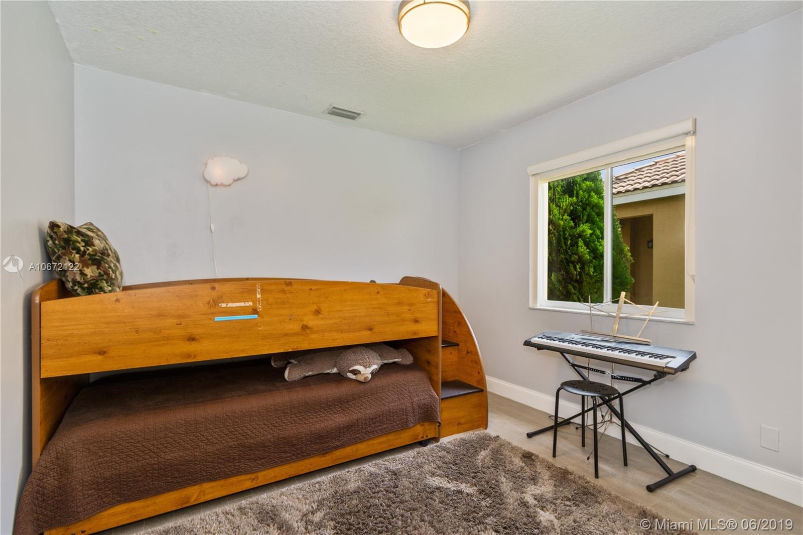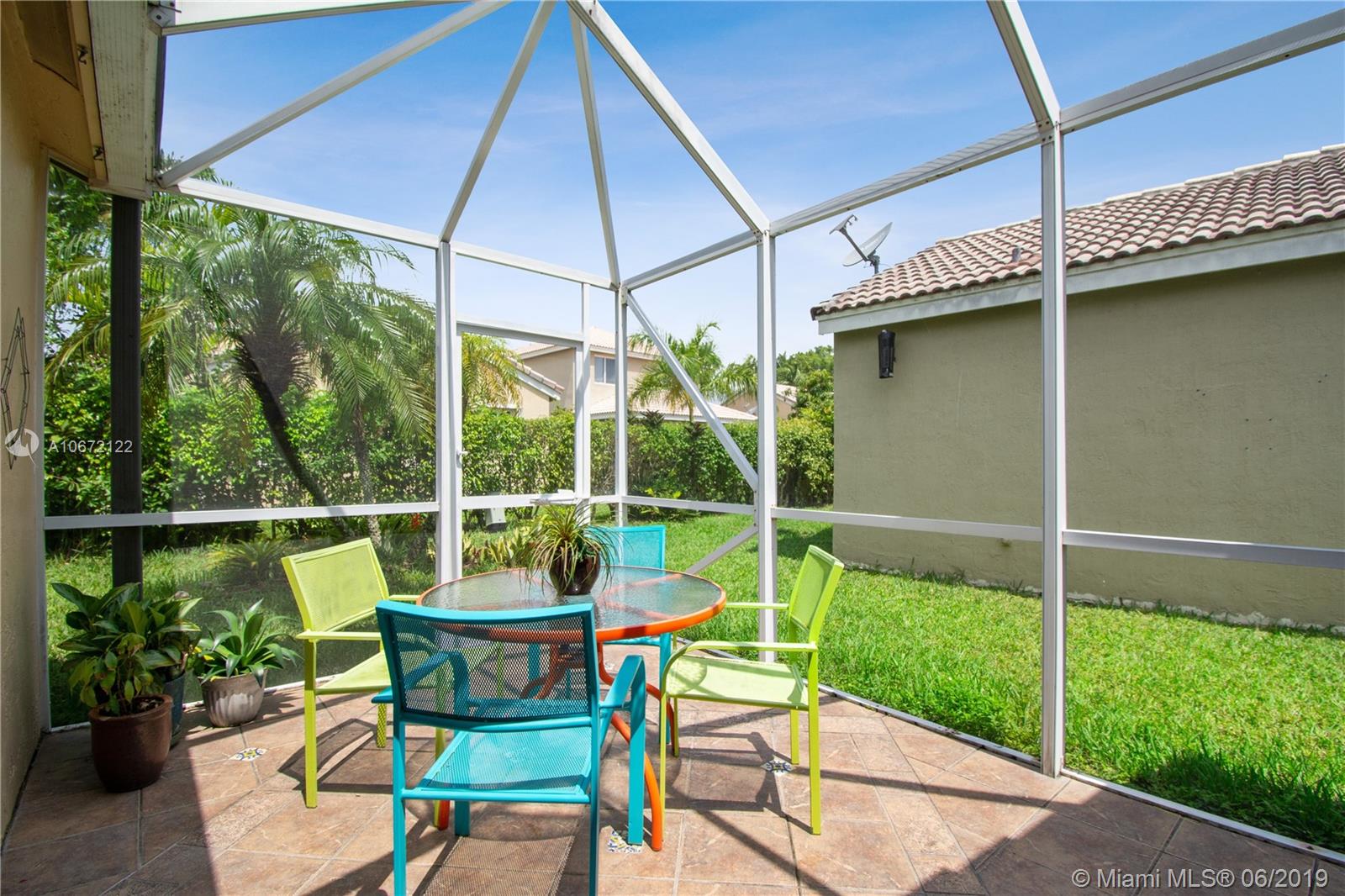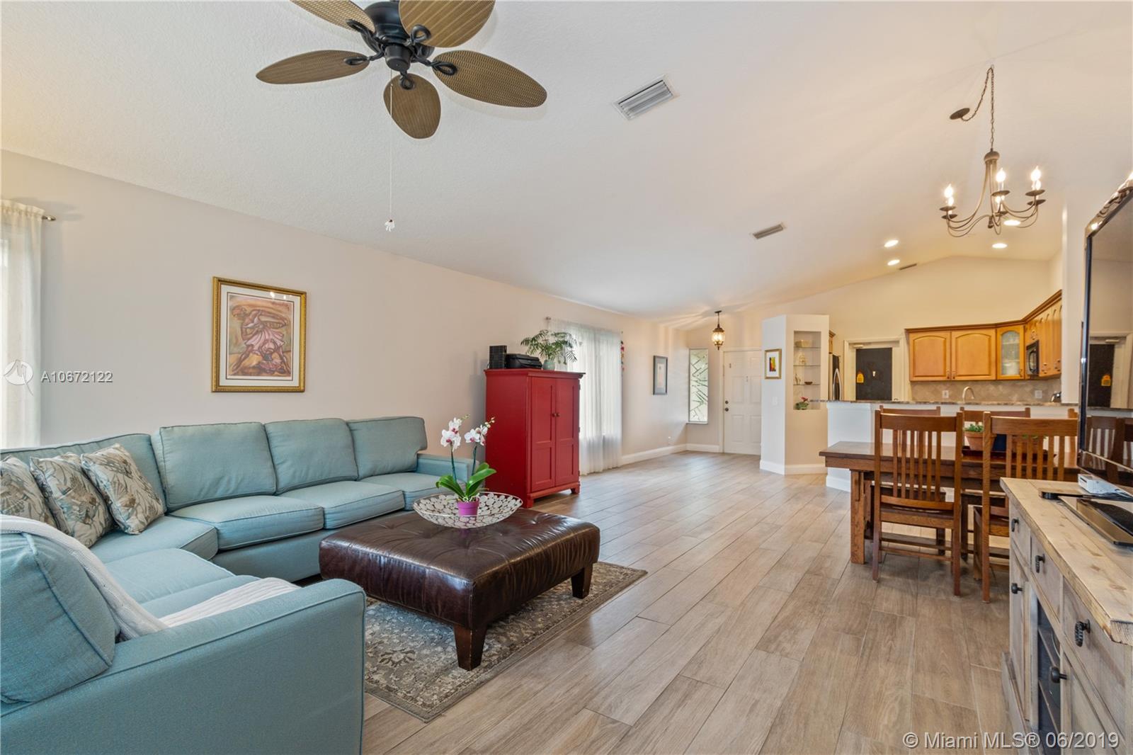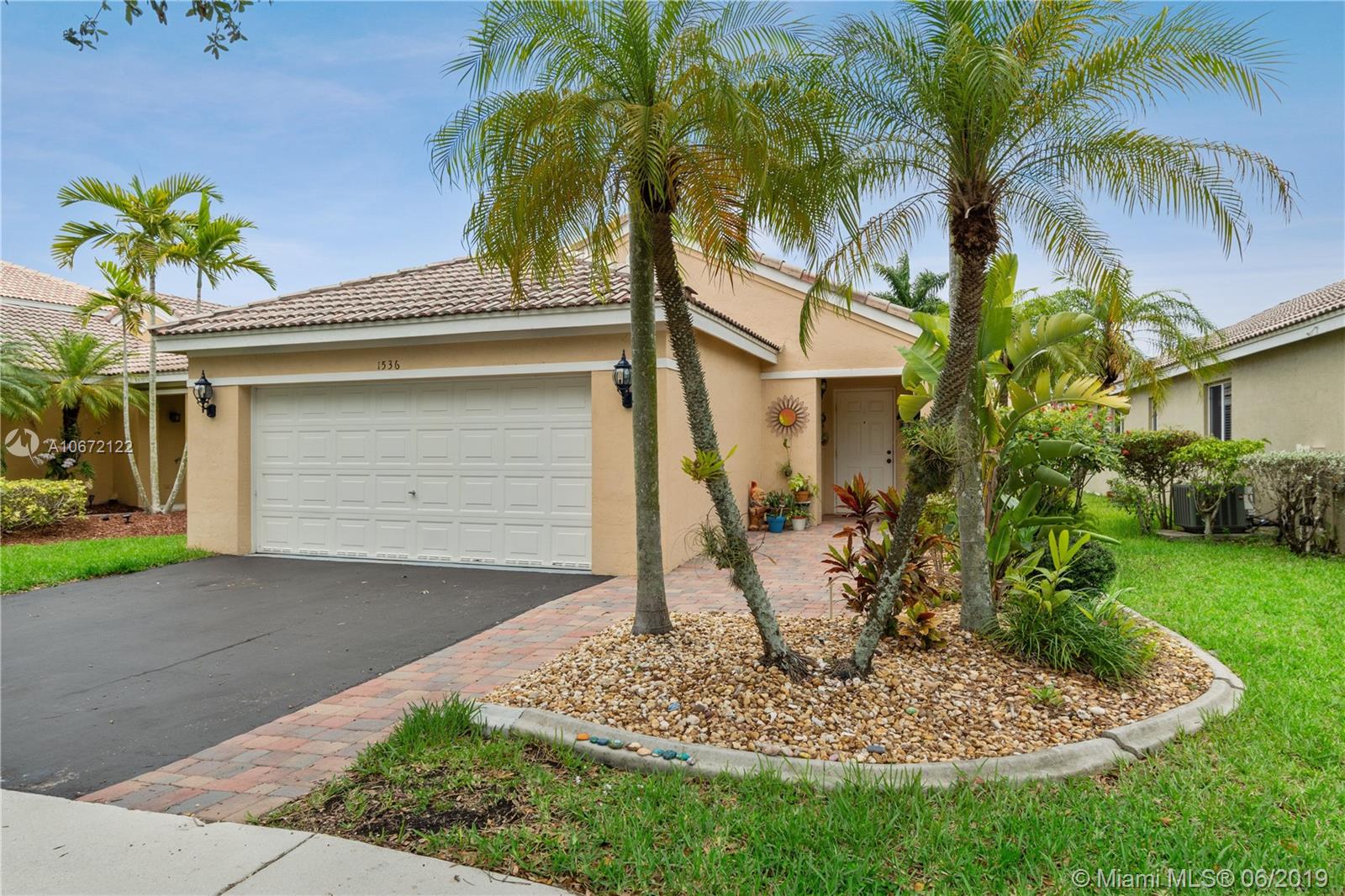 GREAT FAMILY HOME IN WESTON! Lovely move-in ready one story 3-bedroom 2-bath split bedroom plan with 2-car garage! Home features an open concept floor plan, newer flooring +volume ceilings throughout, spacious living/family area, newer kitchen with gorgeous granite counter-tops, custom kitchen cabinetry, large pantry, lots of storage space and stainless appliances! Guest bedrooms come with custom organized closets! Large Master Suite, big walk-in closet, newer en-suite with seamless glass shower enclosure and rain shower head! There's a private enclosed terrace off the Master Suite, perfect for extra outdoor living space or play area for the little ones! Close to best A+Rated Schools, shops +major roadways and much more! Low HOA fees! Large social pool with children's play area!
