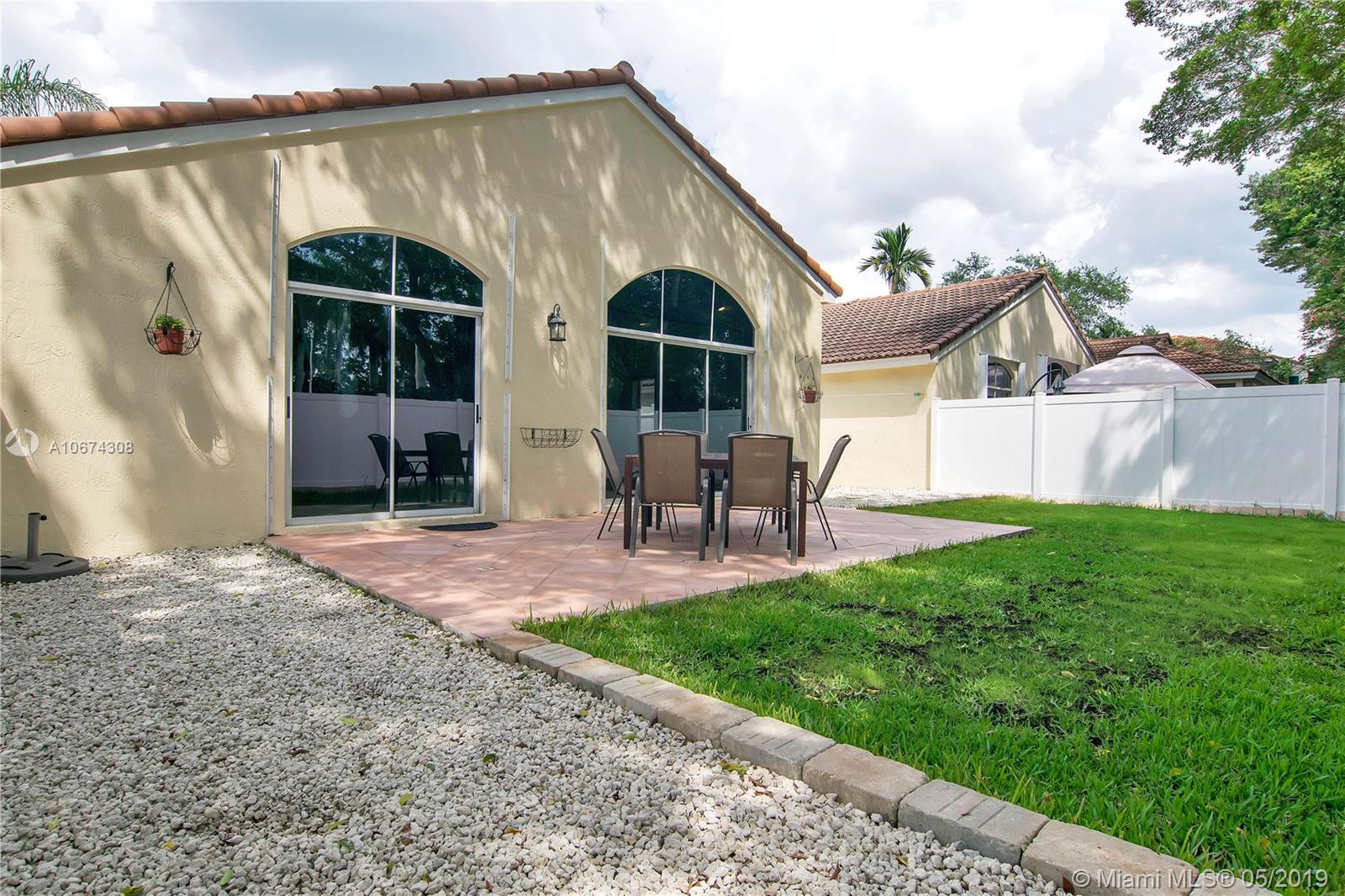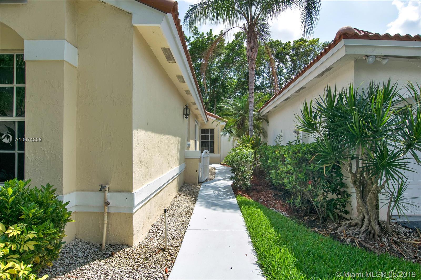 A cozy very nice one-story home with 3 bedrooms, 2 baths, 2 car garage, new roof 2018 and new fence. Kitchen has wood cabinets, granite counters and stainless-steel appliances. Neutral tile in living areas. Laminate flooring in the bedrooms. Master bedroom has California walk-in closet. Spacious Backyard with sitting area in patio and beautiful trees view. Hurricane shutters. Add your own touches! Walking distance to highly rated A+ elementary and middle school, community pool, tennis court, athletics track of Tequesta Park and shopping centers. House is in Emerald Isle, a gated community with surveillance located in the center of Weston, FL. The HOA takes care of the front lawn and sprinklers, gate, pool and overall maintenance. Home inspected in great conditions!