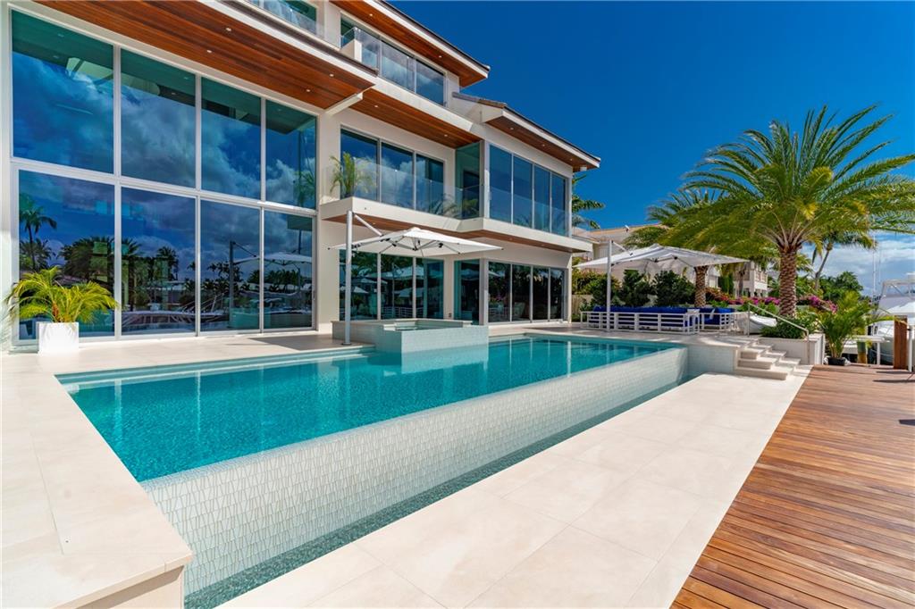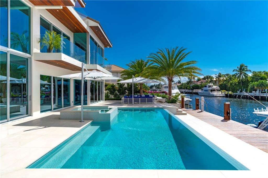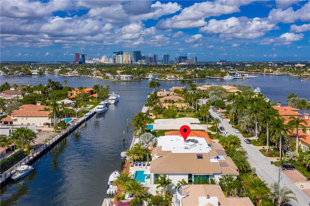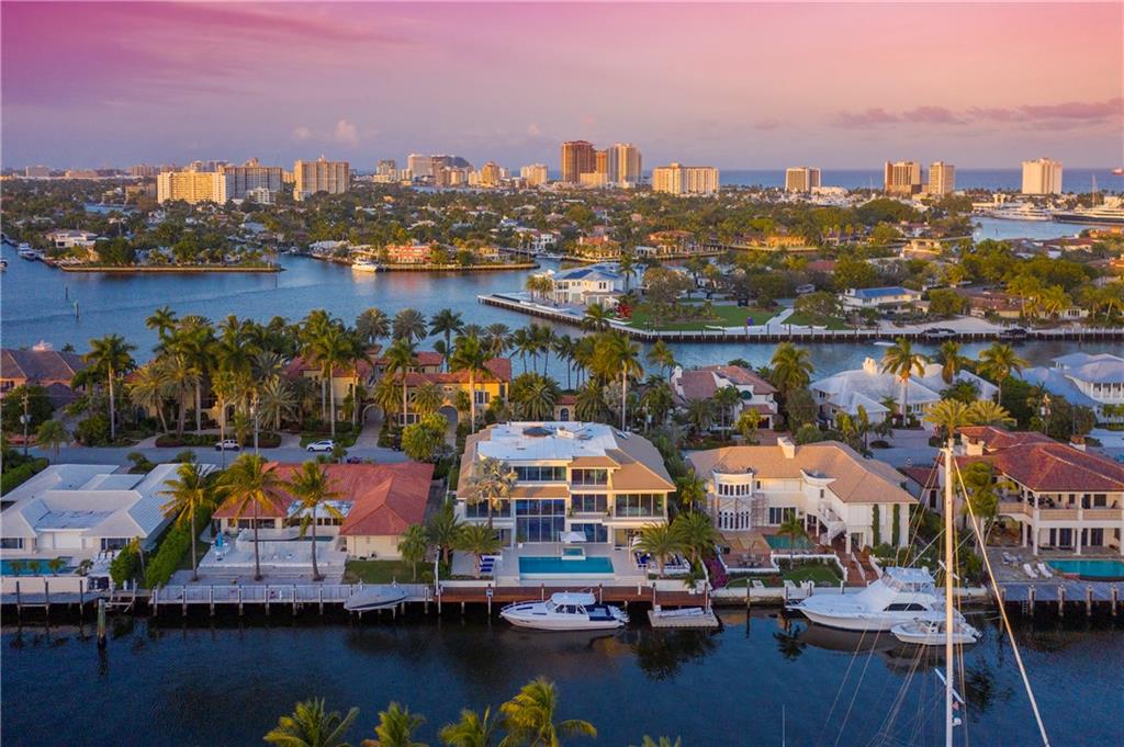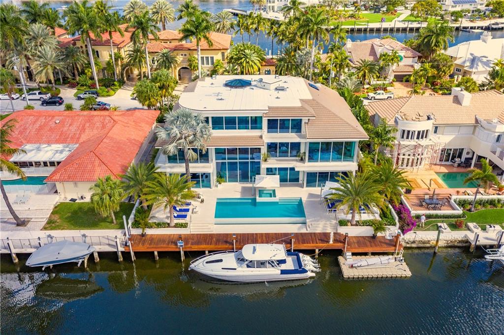 Custom ultra-modern 3 story masterpiece w/100' of WF on a wide canal. Just minutes to the inlet w/ Intracoastal views from 2nd & 3rd levels! Gourmet kitchen with top-of-the-line appliances. High-end finishes & features throughout - Ralph Lauren fixtures, custom woodwork, wine room, whole house generator, gym, elevator, theater, smart home security & automation systems. 3rd-floor entertainment space w/ wet bar & breathtaking views of the Intracoastal & downtown Fort Lauderdale. Immense master suite w/ sitting area, fireplace, water views & over-sized luxurious master bathroom. Private Harbor Beach Surf Club with 300 ft of beachfront & private marina membership available.