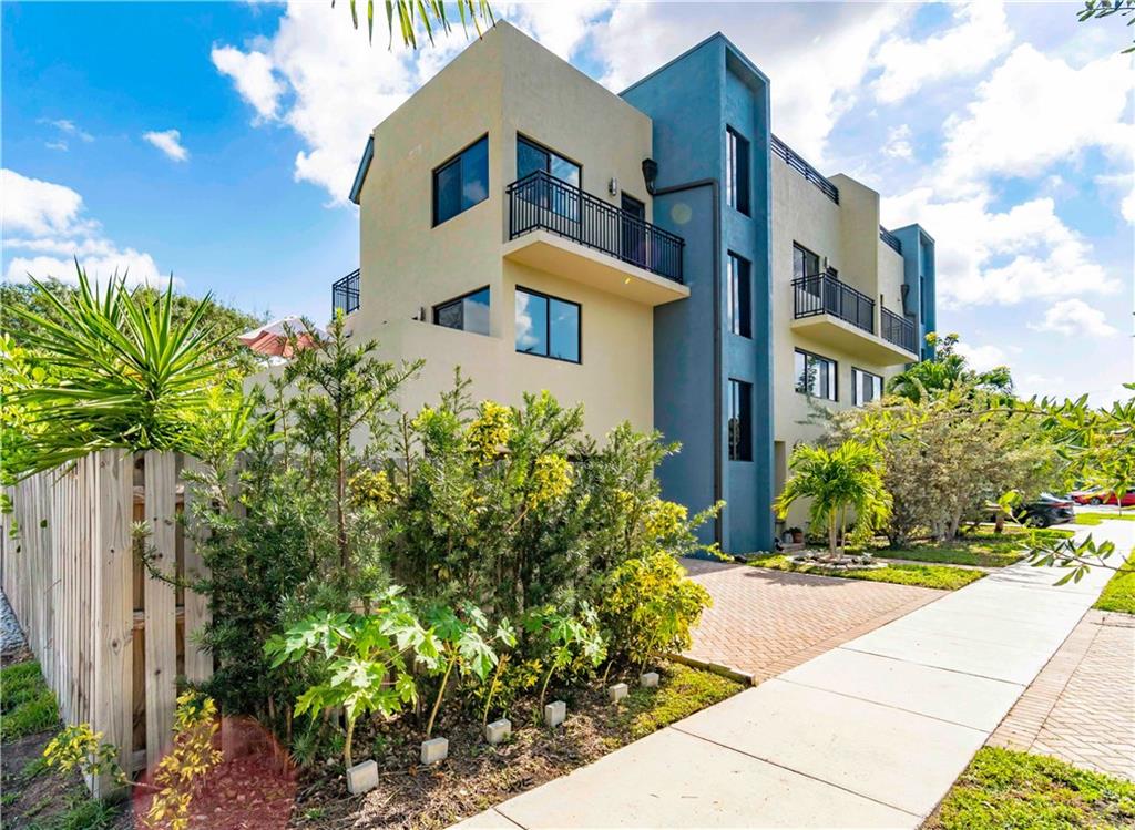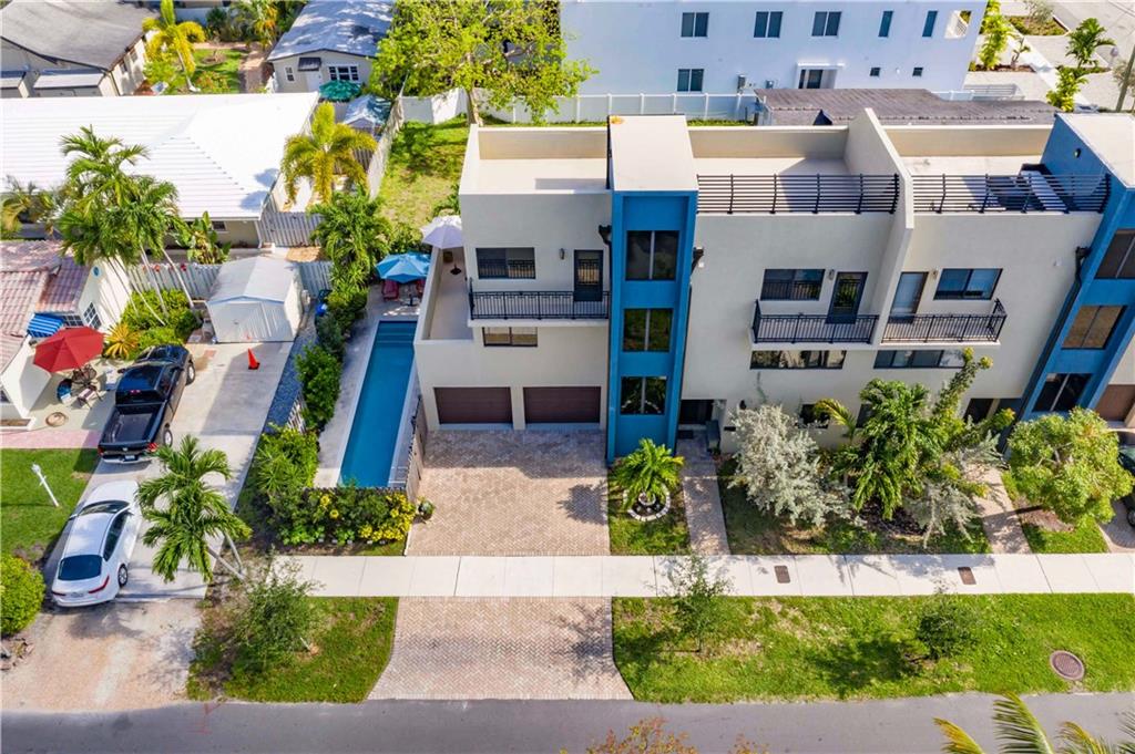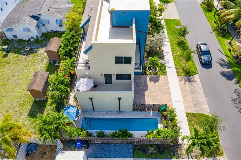 Contemporary Victoria Park Townhome (2016), 38' private lap pool, no HOA fees, downtown and beach skyline views!!! All for under $700k!! What are you waiting for? This home has many features for your enjoyment:contemporary design,large open spaces,lots of natural light,hurricane protection on all openings, Rooftop terraces include water and electric, perfect for adding a Rooftop Kitchen!.There are 3 levels looking over treetops of neighborhood,not to mention sunset views! Open concept kitchen with all amenities and granite countertops. Each level has an outdoor terrace bringing the outside in. Each bedroom en suite to bathroom, plus 1/2 bath for guests. Consistent large neutral tile throughout home. Oversized two car garage plus driveway for more parking,lots more! Call now.