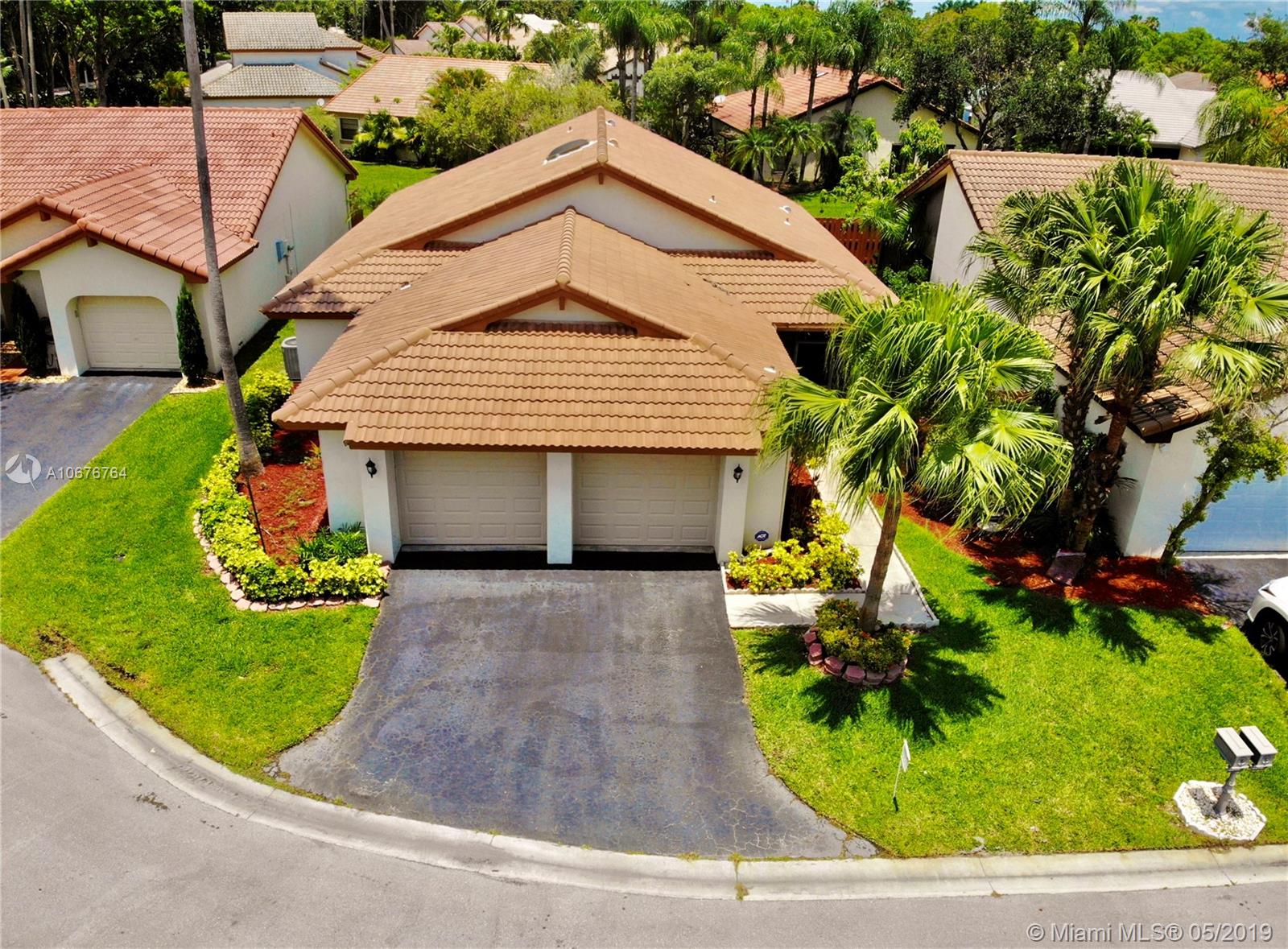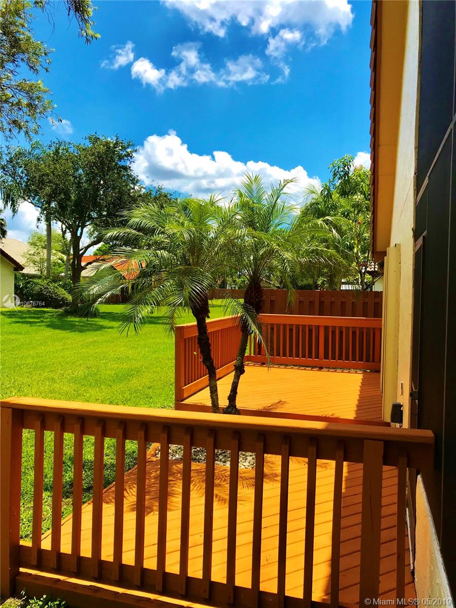 Wow! rarely available this beautiful spacious one story home on cul de sac is ready for you, right in the heart of Weston, enjoy the beauty of living in country isles with its luscious landscaping and gorgeous parks, this home has 3 large bedrooms with plenty of closet space and two full bathrooms, open living and dining areas with skylight, relax and enjoy yourself on a huge 400 sqft. covered patio ideal for entertaining guests and family as well as a back yard wood deck to enjoy your BBQ's. All windows have Accordion Hurricane Shutters and garage and front door hurricane rated as well. Association fee includes lawn maintenance, sprinklers and community pool. Newer Roof and A/C. Easy to show!