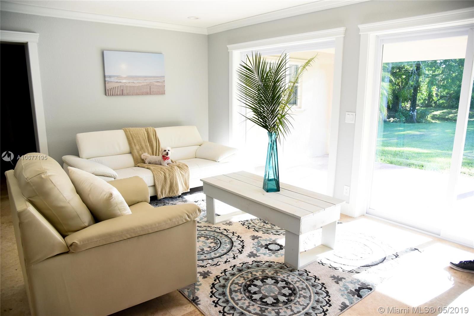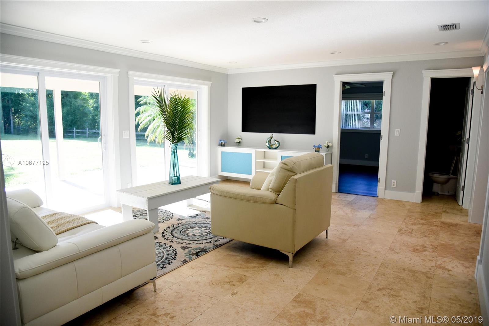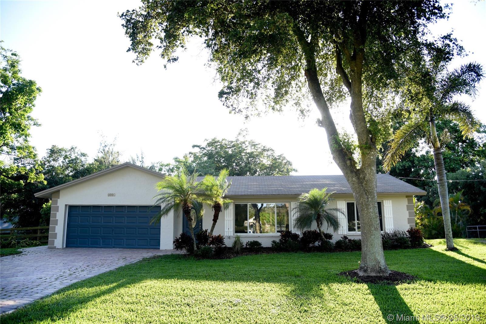 Totally updated 5 bedroom, 2.5 baths ranch on .80 ac fully fenced in lot with pond and room for a horse stall ! House is in like new condition totally updated with brand new custom kitchen cabinets and quartz counter top. This gourmet type kitchen has SS appliances and opens up to a large dining area and a huge family room that has 2 large french doors ( impact ) opening to a huge patio ideal for entertainment and with a relaxing pond view! Travertine floors in living area and wood floor in the master and brand new laminate floors in all other 4 bedrooms. Remodeled baths and crown moldings t/out Freshly painted in and out. Horse lovers must see this totally updated house !