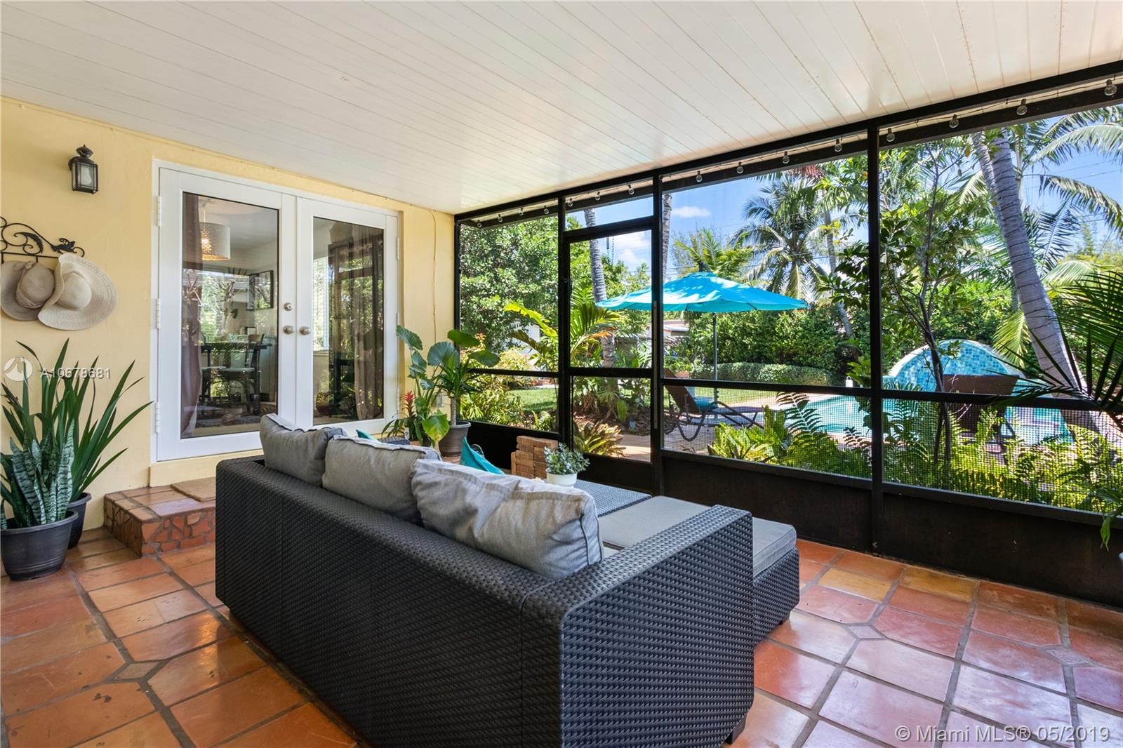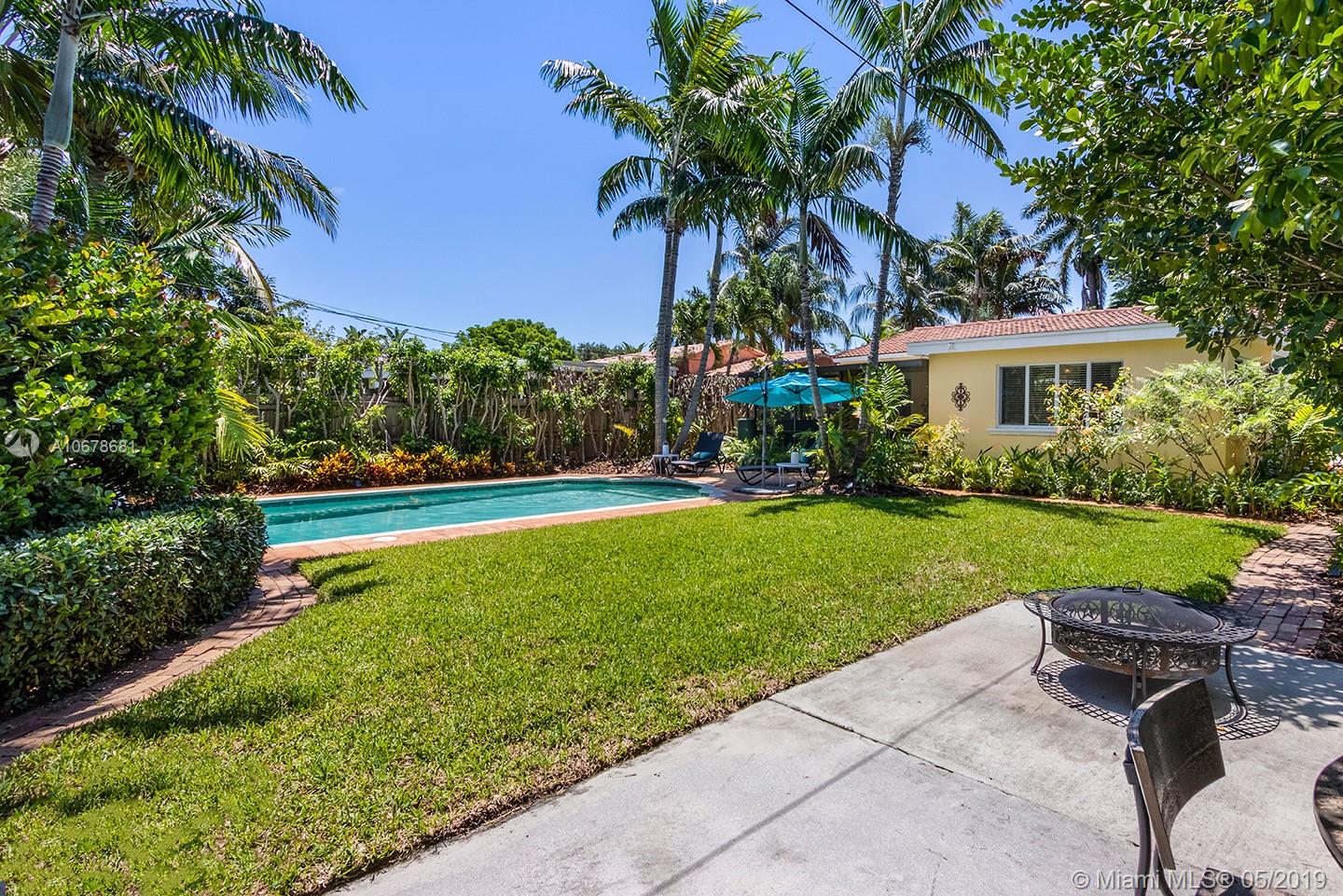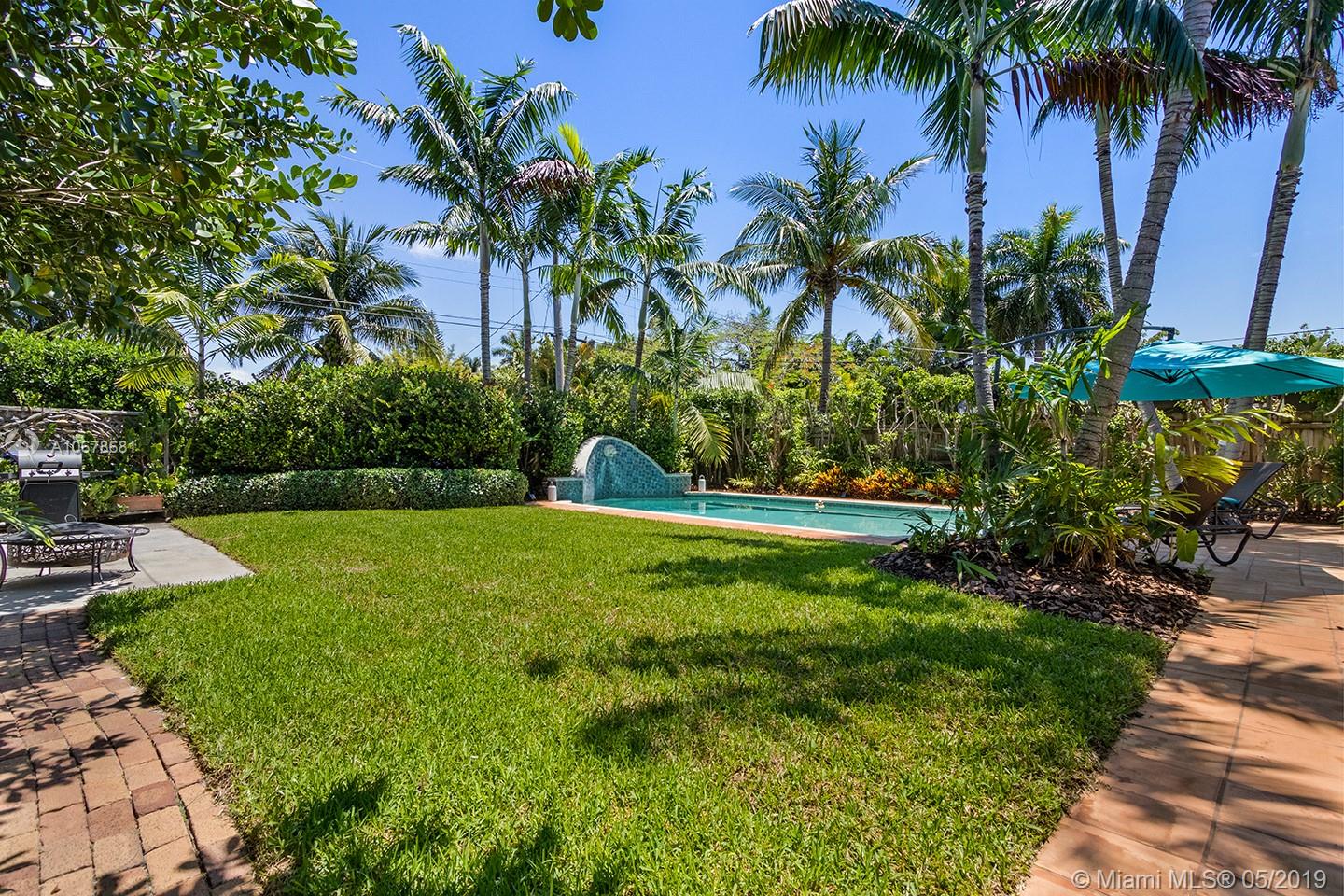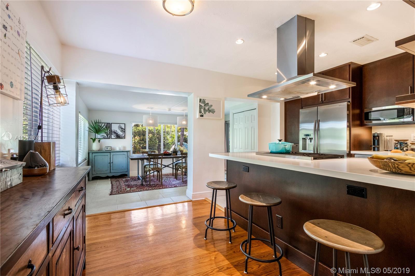 Classic 3/2 Split Pool home w/circular brick driveway in Hollywood Lakes. Stunning garden/pool views from elegant custom designed chef's kitchen w SS appliances, Wolf GAS range w/Ansi hood, New double door fridge, deep double sink, Medallion Silver ginger wood soft close cabinets w/neutral Caesarstone counters, breakfast bar area, refinished wood/tile floors, crown molding, front Den/office plus dining room, updated baths, master w/shower only, great outdoor living, heated pool w/ Waterfall, and brand new heat pump, Professional Landscape w/ Lush Garden for privacy and fenced back yard, screened patio, auto sprinkler system. Impact doors and windows, including 2 sets of French doors, add'l parking in back for RV or boat, tile roof, storage shed, stackable w/d, newer tankless gas WH.