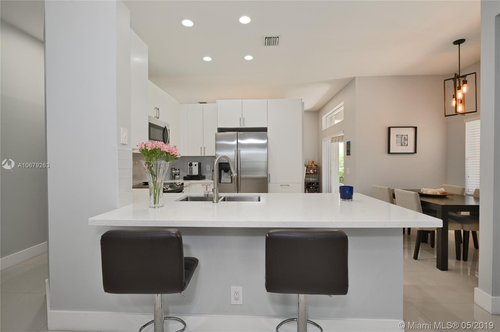 Impeccable and Inviting Home in one of Weston's most Desired Communities. This beautiful remodeled 3 bedrooms, 2 bathroom home offers a delightful and bright split floor plan. An exquisite modern kitchen with white cabinets, quartz countertops and stainless steel appliances. Breakfast area opening up to a spacious family room. Porcelain floors throughout. Ample master suite, walk in closet & stunning master bath. Amazing & relaxing backyard w/covered patio area ideal for entertaining. Accordion shutters all around. Newer A/C unit & water heater. Community offers 5 star resort style amenities like pools, water slide, miniature golf, restaurant, fitness room, sports fields and more! This ideal location provides easy access to highways & shopping centers. A+ school district. A must see!!