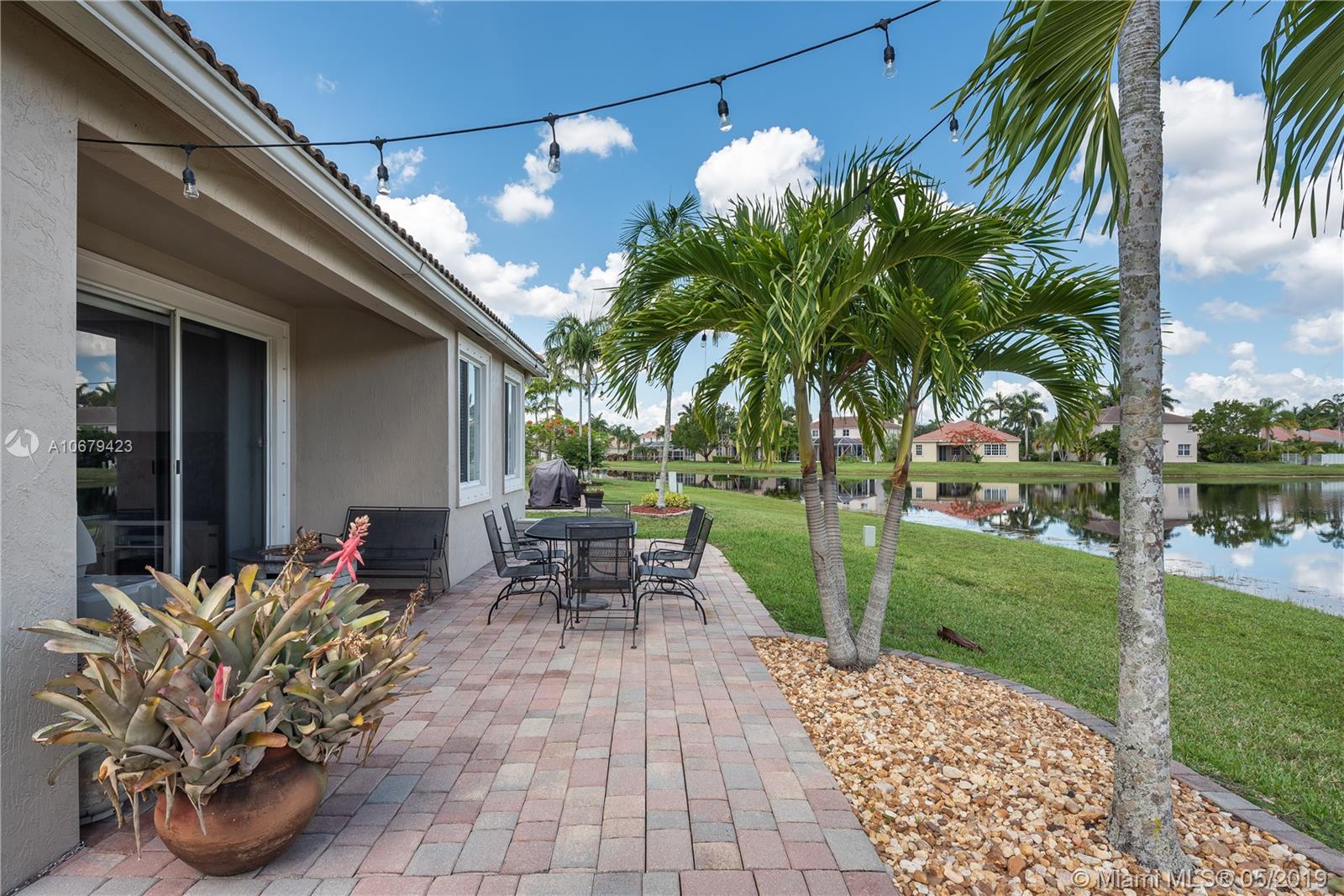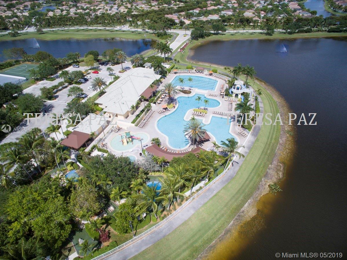 Beautiful home! 4 bedrooms, 2.5 bathrooms with the master bedroom located on the first floor with living room, dining room and family room. Room for a pool. Spectacular lake view for you to enjoy amazing sunrises and sunsets. 2 car garage and yes also 2008 roof, A/C unit 3 years old, accordion shutters second floor. The kitchen has all stainless steel appliances, gated community "Savanna" with resort-style amenities, heated Olympic lap pool, family and kids pools and water slide, BBQ area, mini golf, playground and more. Low maintenance fee $128 monthly. Nearby Weston Regional Park, Publix, restaurants, stores...Excellent schools Manatee Elementary, Falcon Cove Middle and Cypress Bay High School.