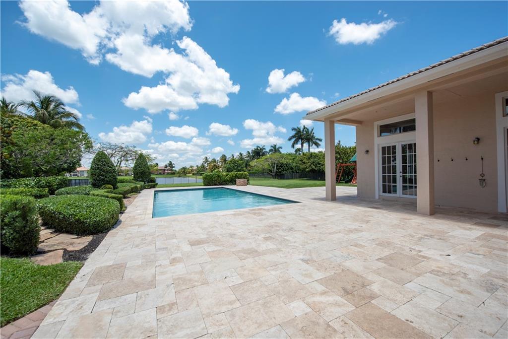 Spectacular Lakefront property featuring a resort style 20X40 solar heated salt water pool surrounded by a wide marble paver patio for the perfect Florida lifestyle! Stunning interior details include espresso wood floors flowing throughout, tray ceilings,crown moldings, new LED hi hat lighting, 3 way split floor plan with a private master bedroom retreat complete with two custom shelved walk in closets... plus a bonus room off the family room! Huge fenced yard on a builders acre and complete Hurricane protection. Long Lake Ranches is one Davie's premier and exclusive guard gated communities with paygrounds, tennis courts, basketball courts & clubhouse plus two guard gated entrances. Close to shopping, major highways, airport and parks!!!A rated Davie schools.