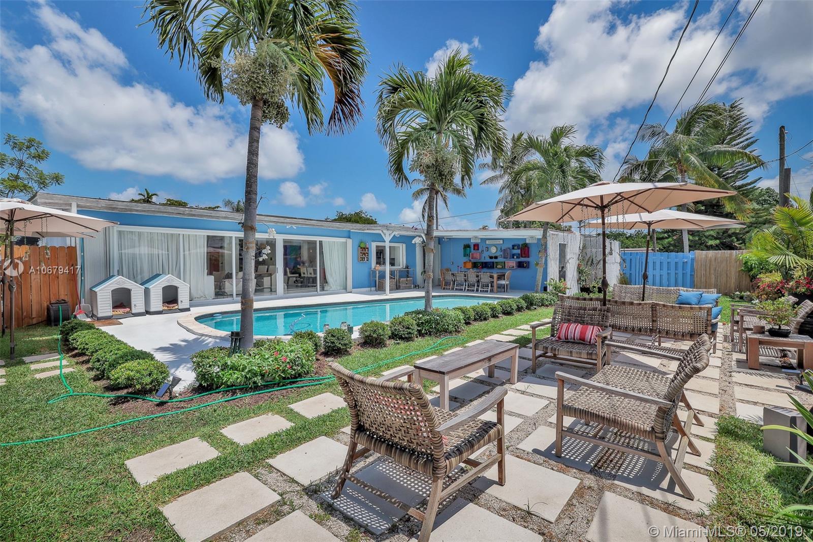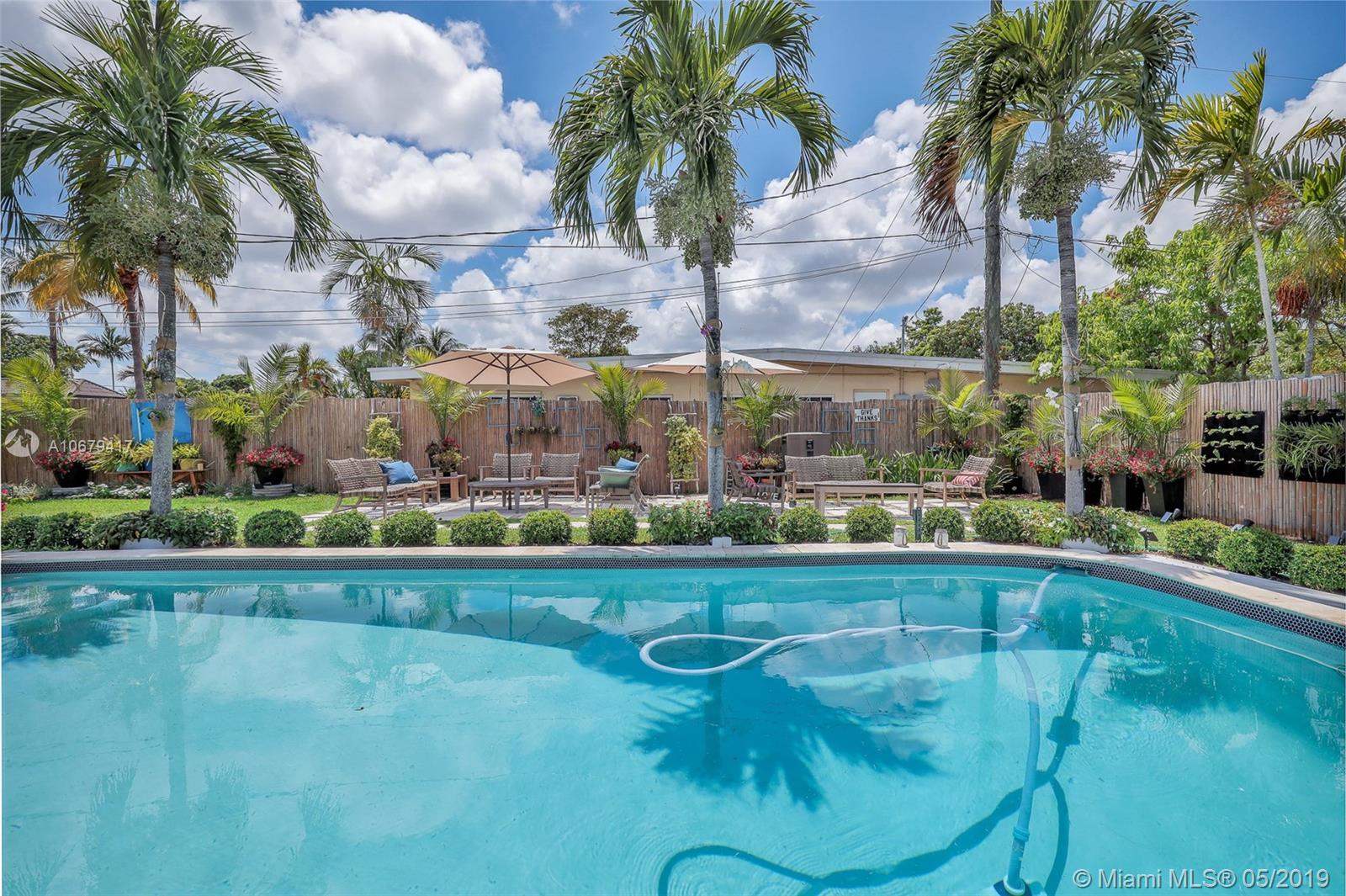 Bright and Spacious 3 bedrooms plus office in desirable neighborhood of Sky Lake. Open floor plan perfect for entertaining, porcelain tile floors throughout. Oversized glass sliding doors overlooking pool area with covered patio, impeccable landscaping and fenced backyard. Stunning kitchen and bathrooms. Famous interior designer Lu Marinho took care of every detail, amazing colors, wall papers and special touches that makes this home your Oasis. Accordion shutters, newer A/Cs , new pool heater, security system. Less than 5 minutes to restaurants, shops and convenience locations.
