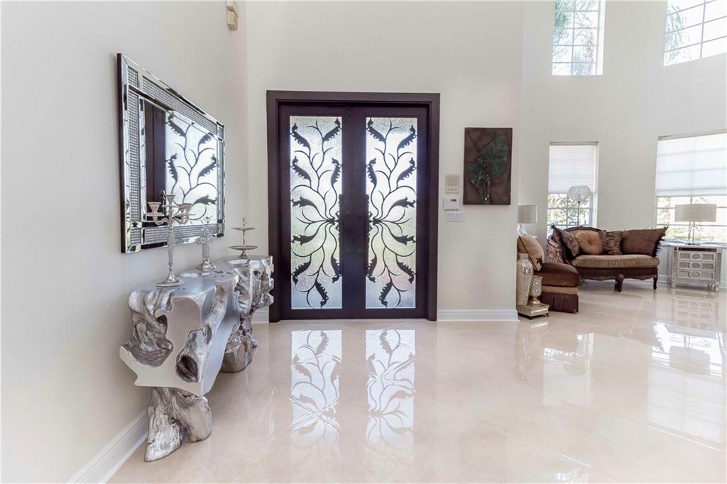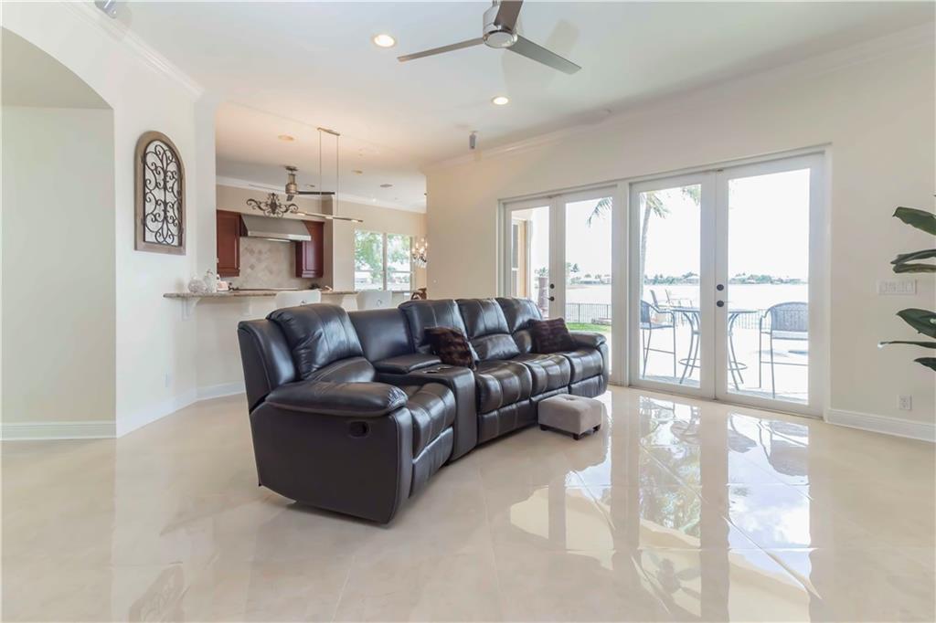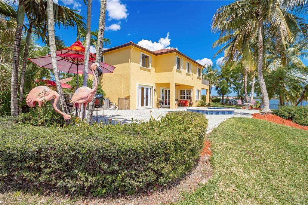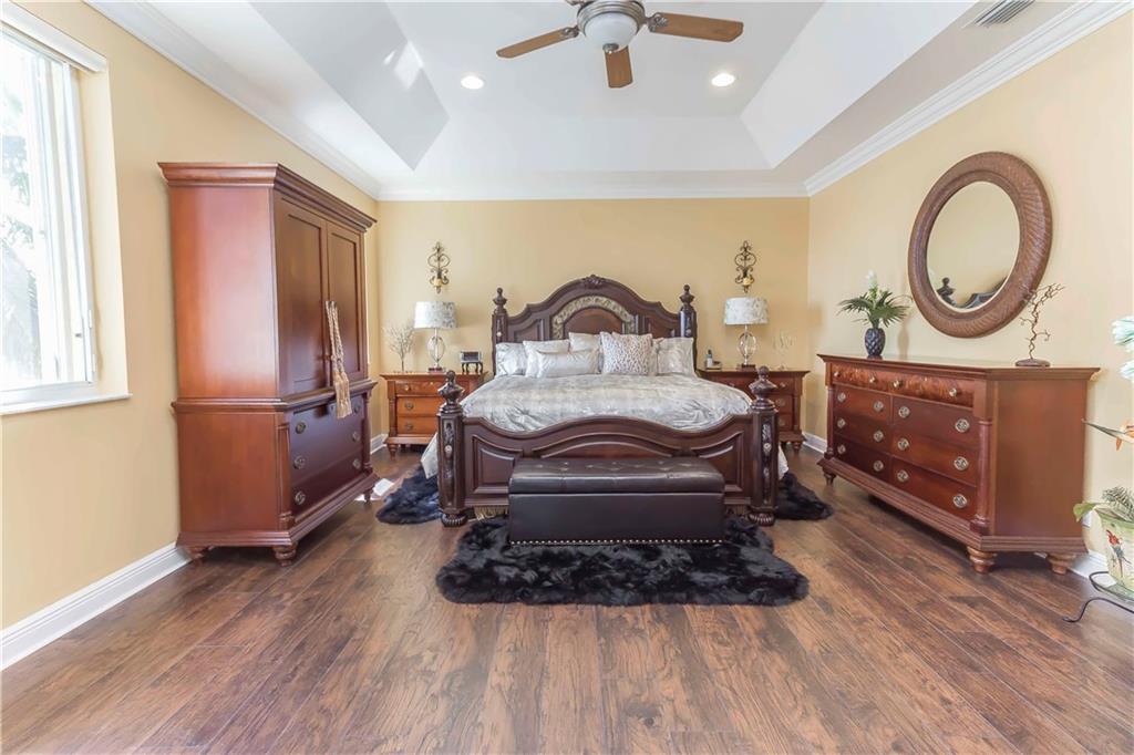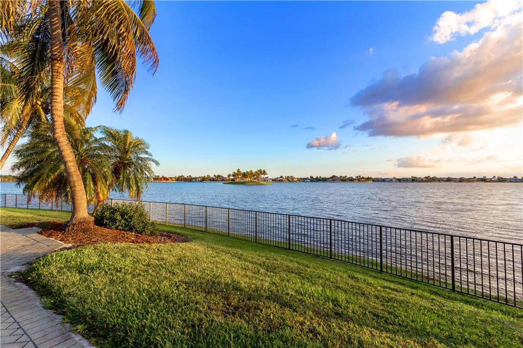 Absolutely gorgeous true 7 bedroom home overlooking the wide lake w breath taking views. Home has been freshly painted inside & out, & garage doors. Gorgeous new impact glass & iron doors invite you into this spectacular home. All new flooring throughout, porcelain on lower level common areas, rich new laminate in bedrooms & upper level. Home fully protected by accordion shutters, home security system & generator. Expansive master is complete w wet bar, mini refrigerator, & private balcony. New wrought iron railing on stairs. Kitchen has 6 burner gas Viking stove, new refrigerator, dishwasher & micro. Updated bathrooms. 3 lg beds on 1st floor, 4 lg beds upper level & loft area. New lighting & fans are found throughout. Lush landscaping on oversized lot provides complete privacy.