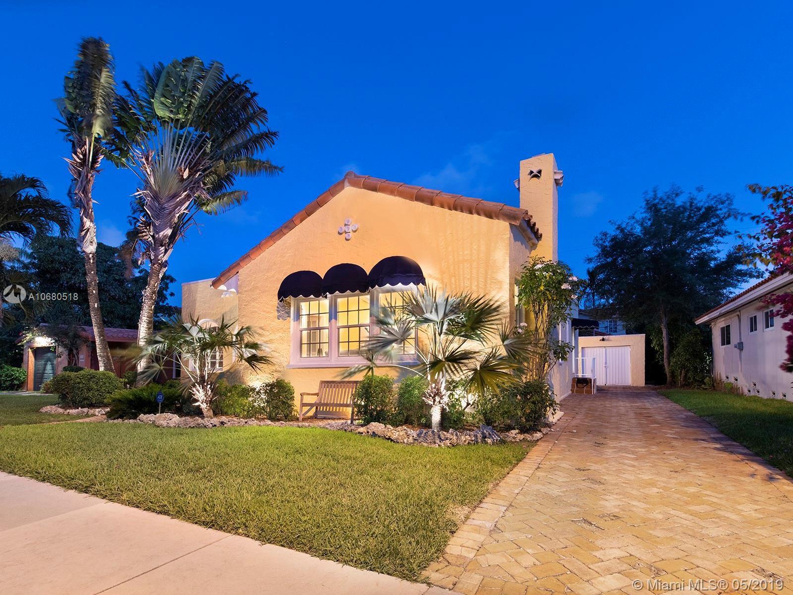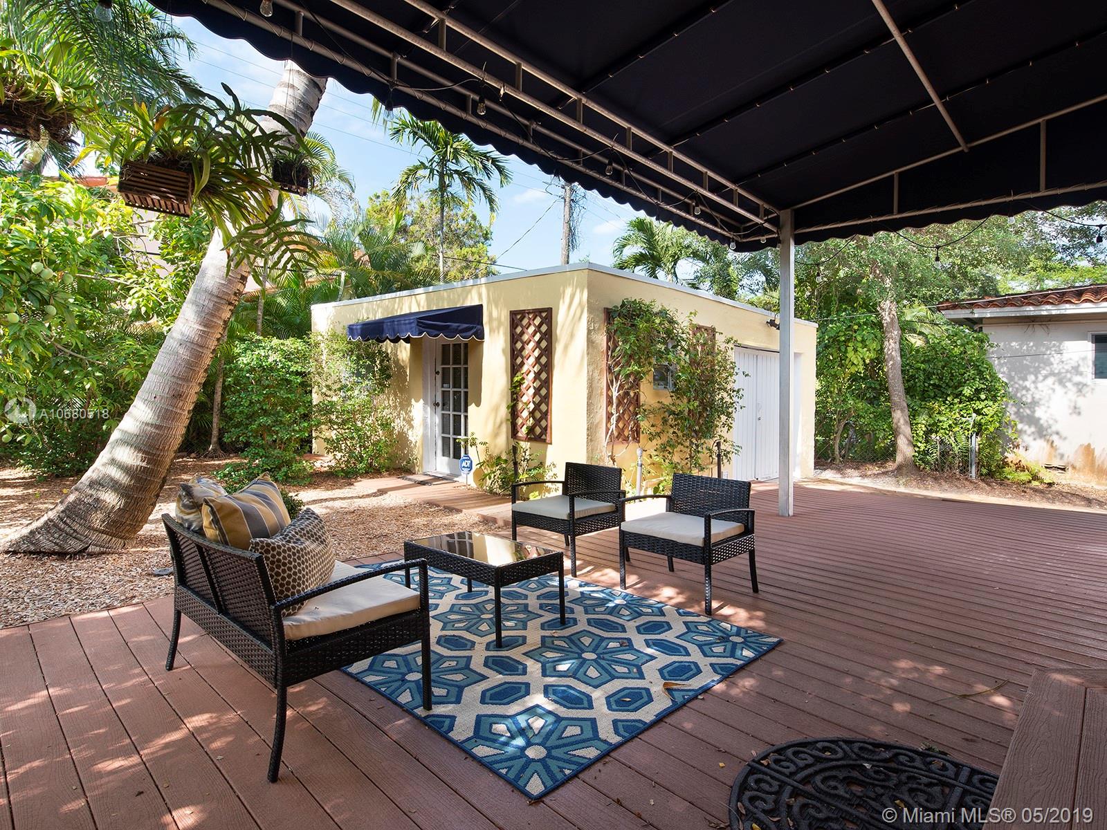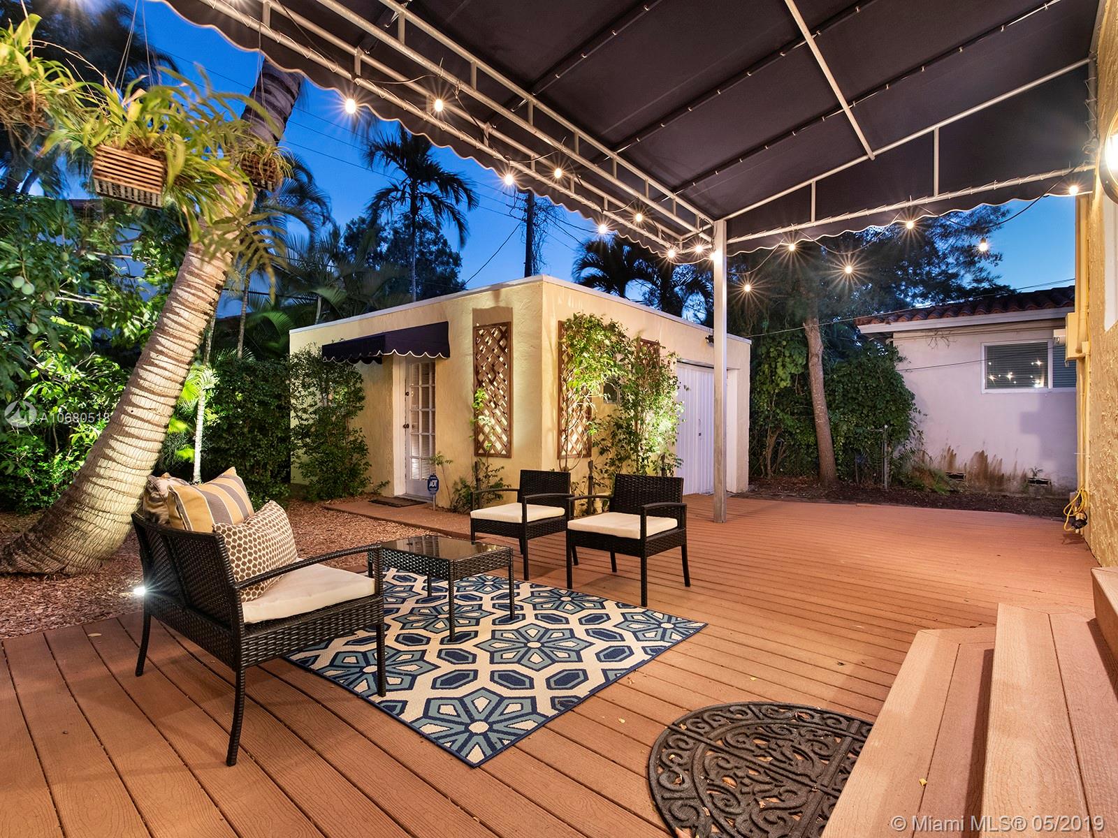 A 1920s home eligible for historic designation, this gem on a quiet Coral Gables street is the complete package with 3 bedrooms and 2 bathrooms in the main house, a cozy 1/1 guest cottage in the back, a low-maintenance backyard with mature fruit trees and landscape lighting, a working fireplace, extra storage space with washer/dryer, and a composite deck with awning & lighting for perfect gatherings. This home has not only been updated aesthetically, but the owners have also taken meticulous care of the “bones” of the home. These updates include a new roof, impact windows and doors, updated plumbing, new kitchen sink, new countertops, new cabinet doors, and refurbished hardwood floors. Walking distance to Publix, Granada Golf Course, and Coral Gables Country Club, this home is a treasure.