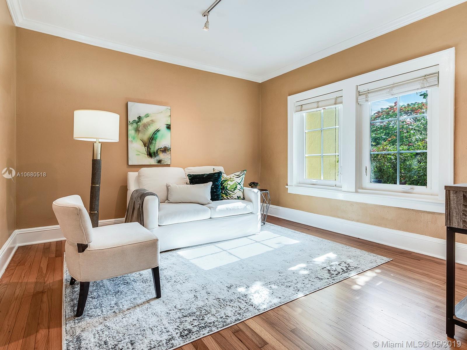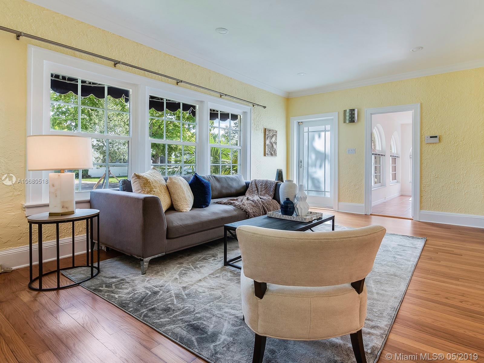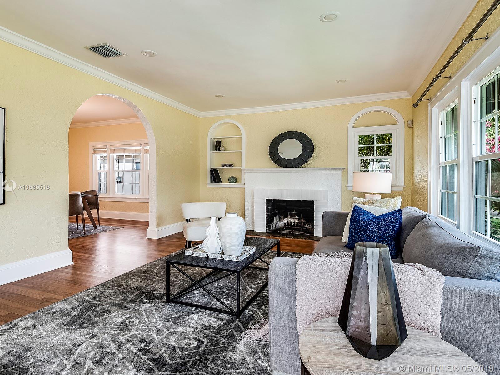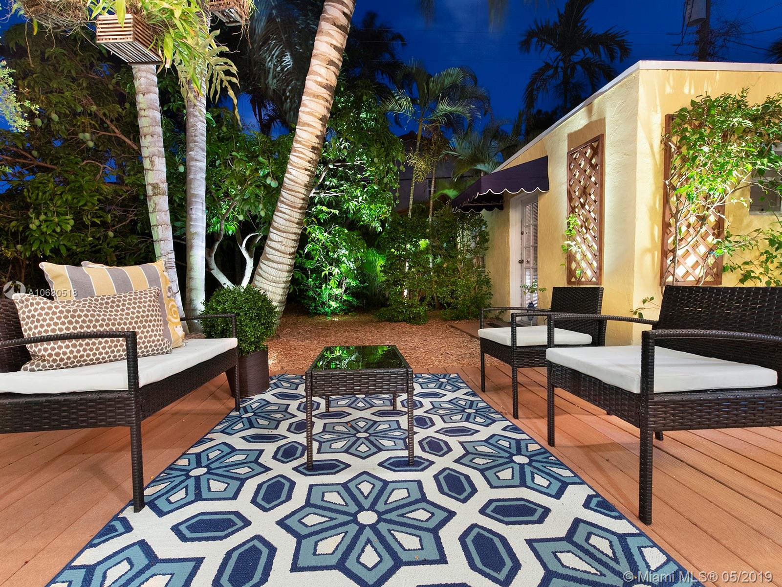 A 1920s home eligible for historic designation, this gem on a quiet Coral Gables street is the complete package with 3 bedrooms and 2 bathrooms in the main house, a cozy 1/1 guest cottage in the back, a low-maintenance backyard with mature fruit trees and landscape lighting, a working fireplace, extra storage space with washer/dryer, and a composite deck with awning & lighting for perfect gatherings. This home has not only been updated aesthetically, but the owners have also taken meticulous care of the “bones” of the home. These updates include a new roof, impact windows and doors, updated plumbing, new kitchen sink, new countertops, new cabinet doors, and refurbished hardwood floors. Walking distance to Publix, Granada Golf Course, and Coral Gables Country Club, this home is a treasure.