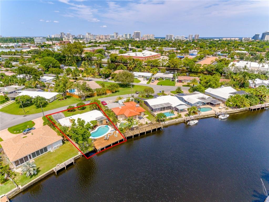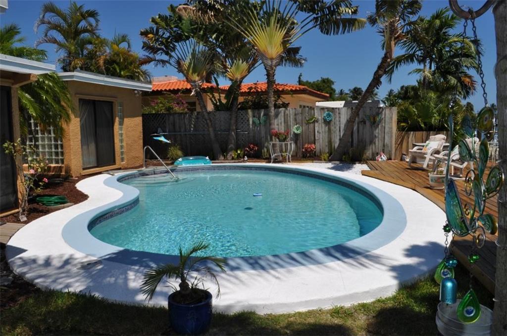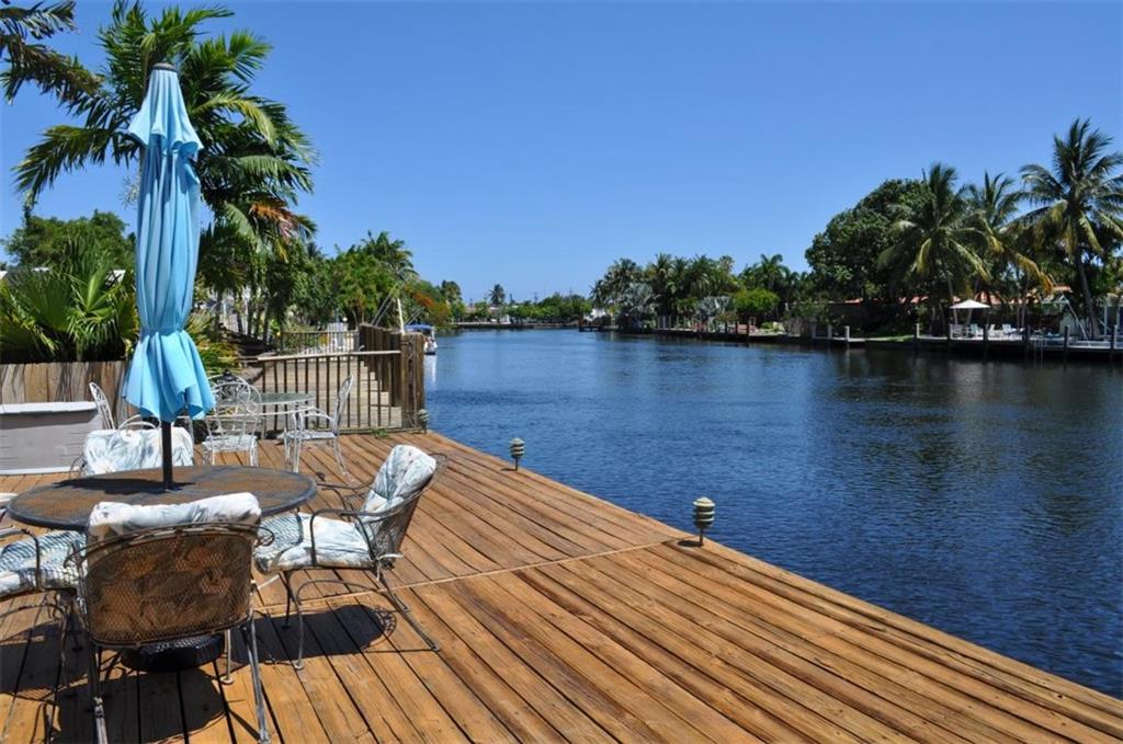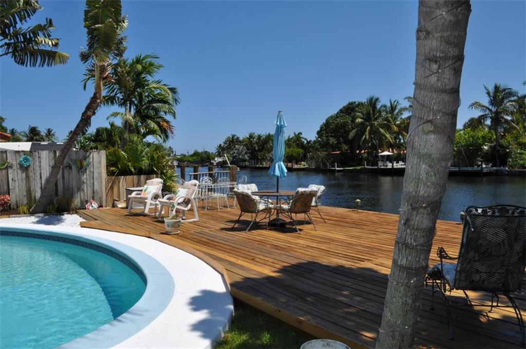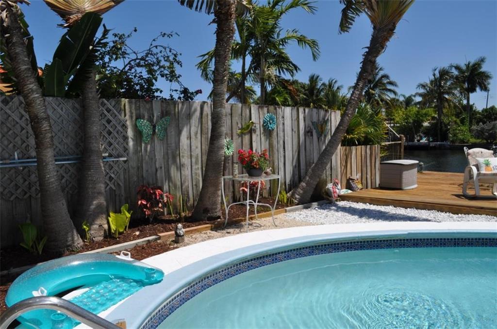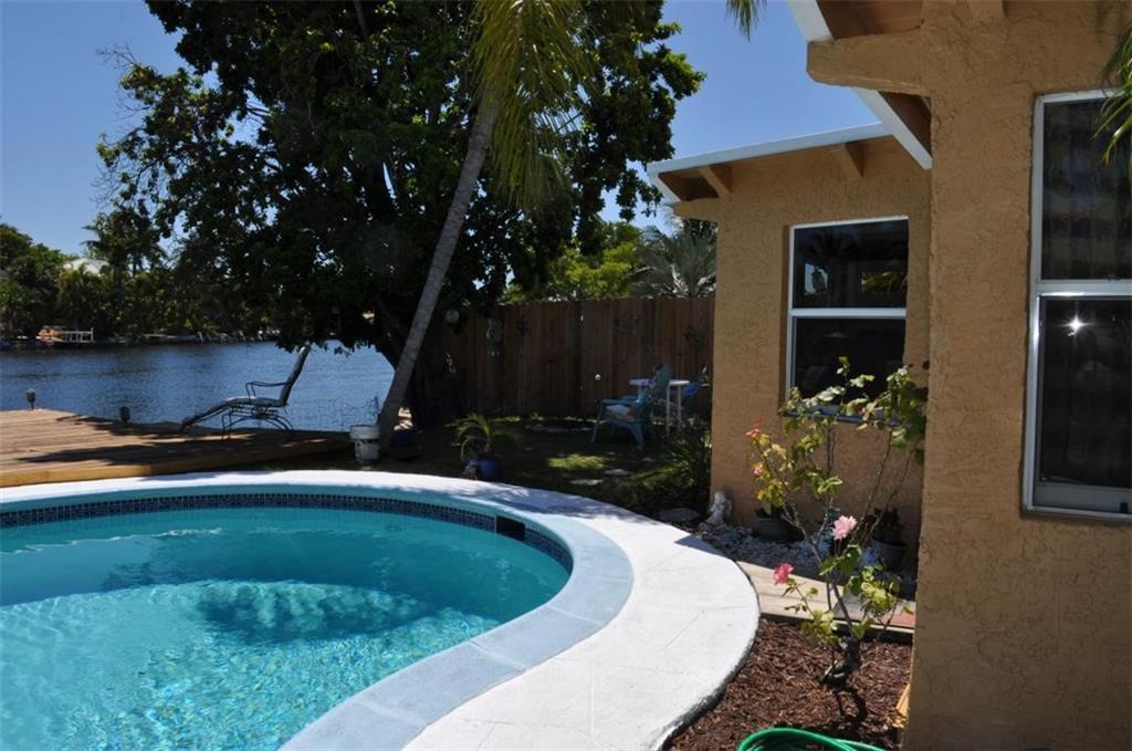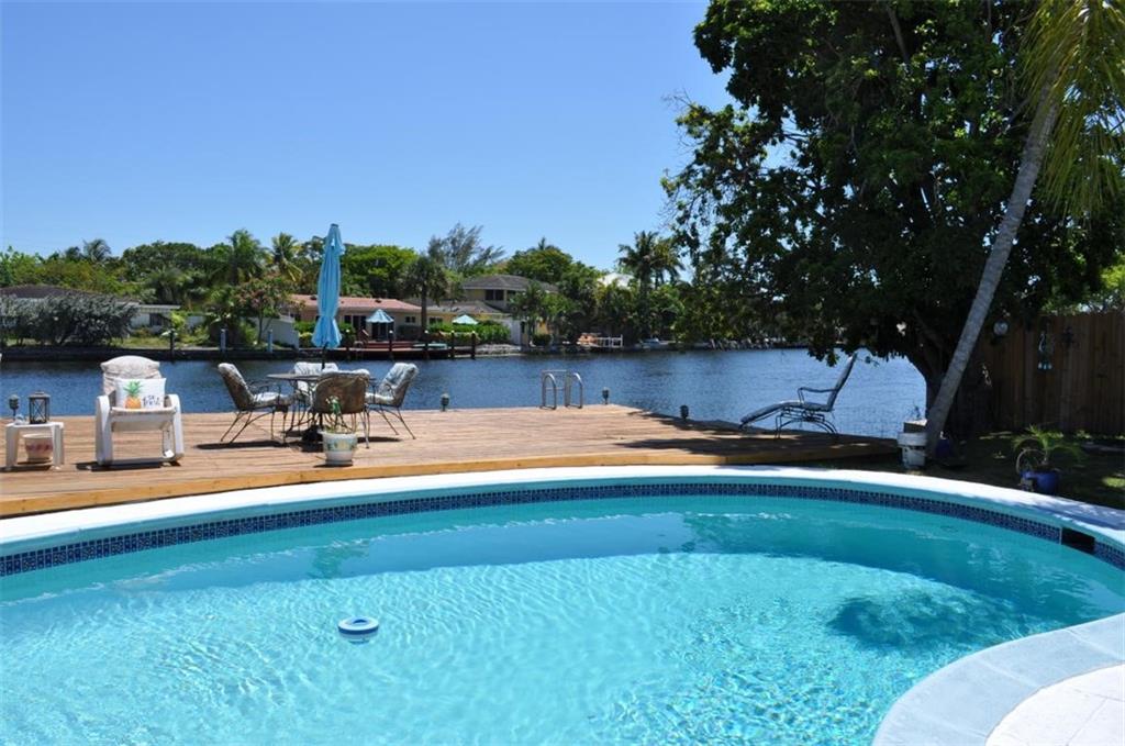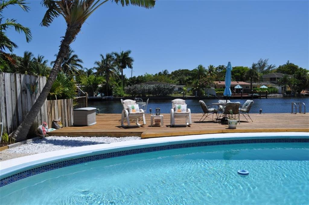 Location, Location, Location!! Almost 60 feet of waterfront located right in the middle of everything but tucked away in a quiet neighborhood. Most desirable South exposure from newly stained and oversized wood plank deck. Watch gorgeous sunsets while floating in your just resurfaced pool at the widest part of this secluded canal on the North Fork of the Middle River. Ocean access waterway! Renovated kitchen, newer appliances, mostly tile floors, some impact windows, wood burning fireplace. Family room overlooks pool, patio and water 10 minutes to the beach. Ready for your personal touches, room to expand the home. Close to Target, Movies, Restaurants, Angelo's Bakery Bar!!