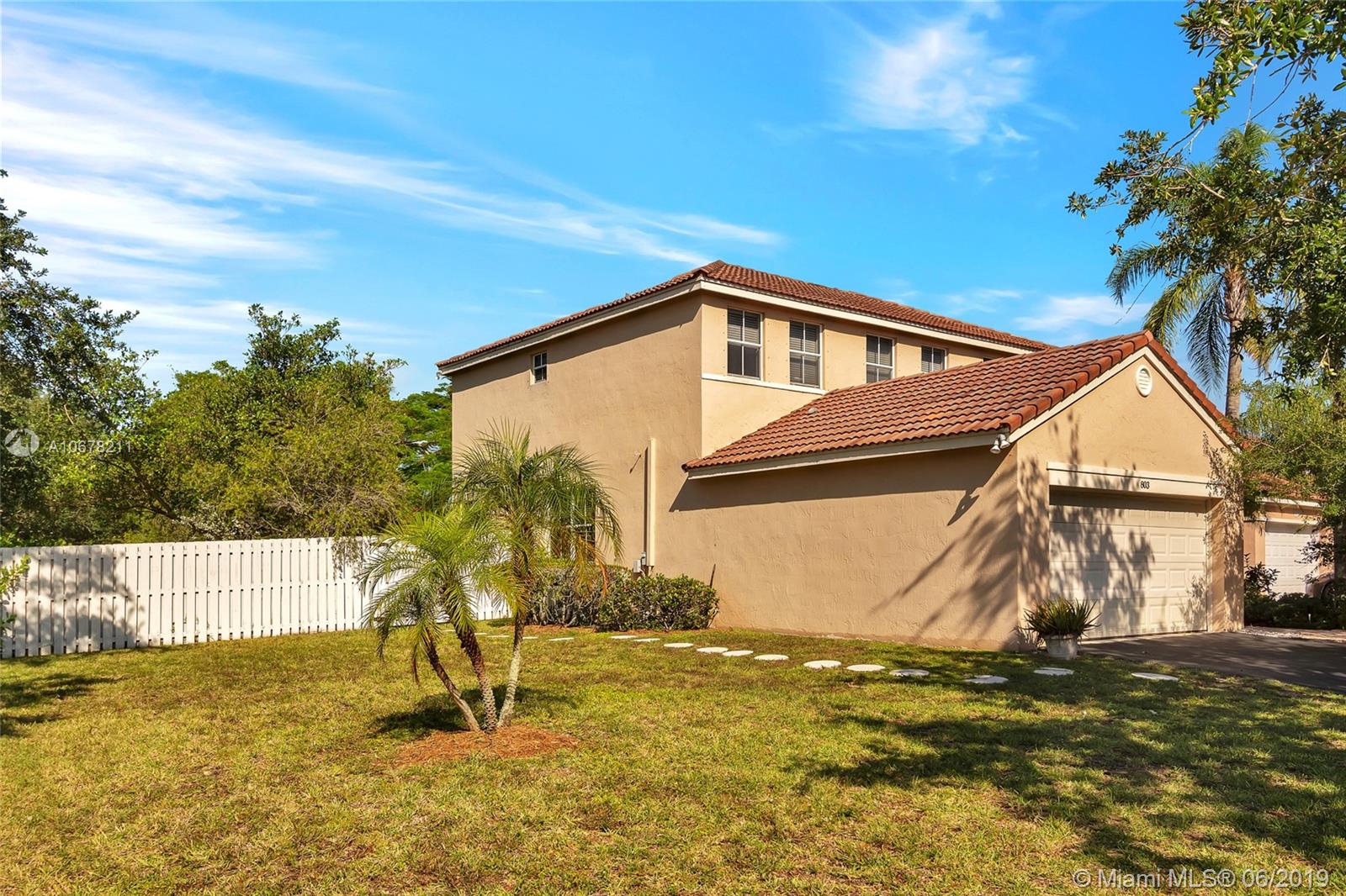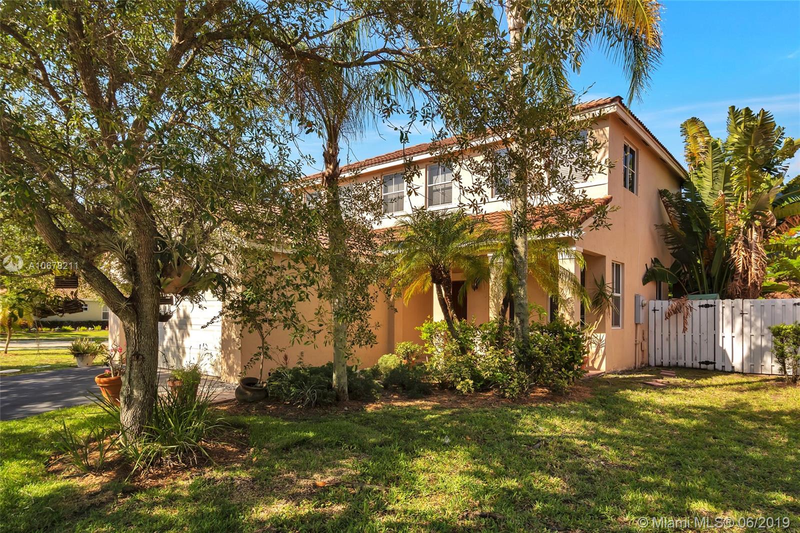 Rare Dartmouth model in The Falls. This 2-story 3/2.5 home sits on an amazing fenced corner lot over 10,000 sq.ft. with tons of room for a pool if so desired. Community pool with basketball and volleyball courts. All bedrooms upstairs with beautiful flowing downstairs living area. Great schools and quiet neighborhood. Stainless appliances. Priced to sell! Property comes with 1 year home warranty to Buyer.