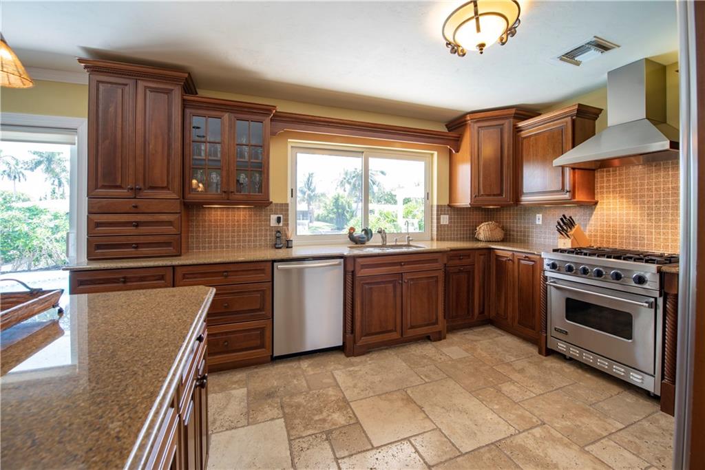 Have it all in Coral Ridge Isles - Gorgeous & completely remodeled waterfront! Brand New Roof. Amazing chef's kitchen w/Viking range, Subzero & Miele stainless appliances, granite counters & large breakfast bar/island. Family room adjoins kitchen & opens to pool & patio. Spacious master suite w/spa like bath & ample walk-in closet. Master bath w/soaking tub & separate shower. Travertine in Opus pattern throughout. Carpet guest rooms. Eurotech impact windows throughout & 3 sets of new impact sliders open to pool & patio. Private covered outdoor living area & private pool area. Salt water pool. Lush landscaping, paver drive & paver courtyard entryway create wonderful curb appeal. Best street in neighborhood w/no condo building in Cul-de-Sac. A+ location, close to Beach, Best Schools & Shops!