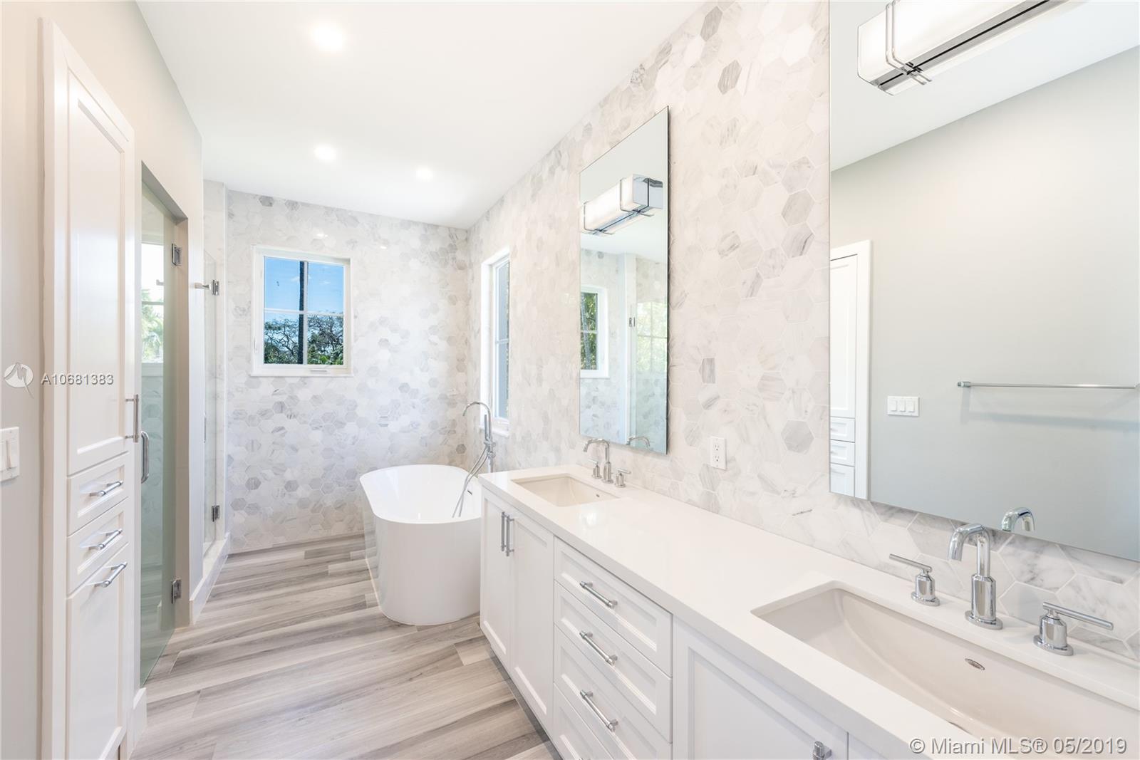 Beautiful new construction home on a corner lot nestled on a picturesque and quiet tree-lined street in Coral Gables. Home features spacious four bedrooms/three full baths, one bedroom and bath downstairs, three bedroom/two baths up. Second-floor laundry suite. Sustainable porcelain wood tile throughout. Stunning state of the art marble and stainless-steel kitchen that opens to a big dining room and family room space bound to be the center of living. Outdoor patio entertainment on both back and side of the home. Large detached garage. Impact windows and doors and plenty of storage within the house as well. Square footage as per the builder.