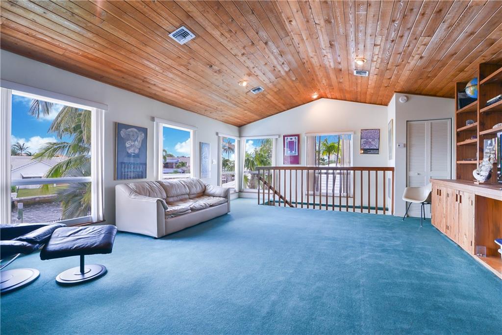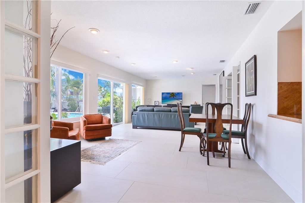 EXQUISITE 5 BEDROOM, 4 BATH WATERFRONT RESIDENCE PERFECT FOR A LARGE FAMILY, 3 HOMES FROM THE POINT. UPGRADES INCLUDE PORCELAIN FLOORING, UPDATED KITCHEN WITH STAINLESS STEEL APPLIANCES AND GRANITE COUNTER TOPS, UPDATED BATHS, IMPACT GLASS, NEW ELECTRIC AND CENTRAL VACUUM. UNIQUE FEATURES OF THIS HOME INCLUDE UPSTAIRS LOFT WITH TONGUE AND GROOVE CEILING AND ITS OWN PRIVATE BEDROOM AND BATH, SPACIOUS LAUNDRY ROOM, FIRST FLOOR MASTER SUITE WITH PRIVATE PATIO AND WALK IN CLOSETS, LARGE 2 CAR GARAGE AND CIRCULAR DRIVEWAY. 80 FEET OF WATERFRONT WITH A GORGEOUS SWIMMING POOL COMPLETE THIS STUNNING FAMILY RESIDENCE IN CORAL RIDGE COUNTRY CLUB. CLOSE TO FINE DINING AND SHOPS IN BEAUTIFUL FORT LAUDERDALE. DINING ROOM CHANDELIER DOES NOT CONVEY. SELLERS ARE WILLING TO MOVE OUT ON SHORT NOTICE.
