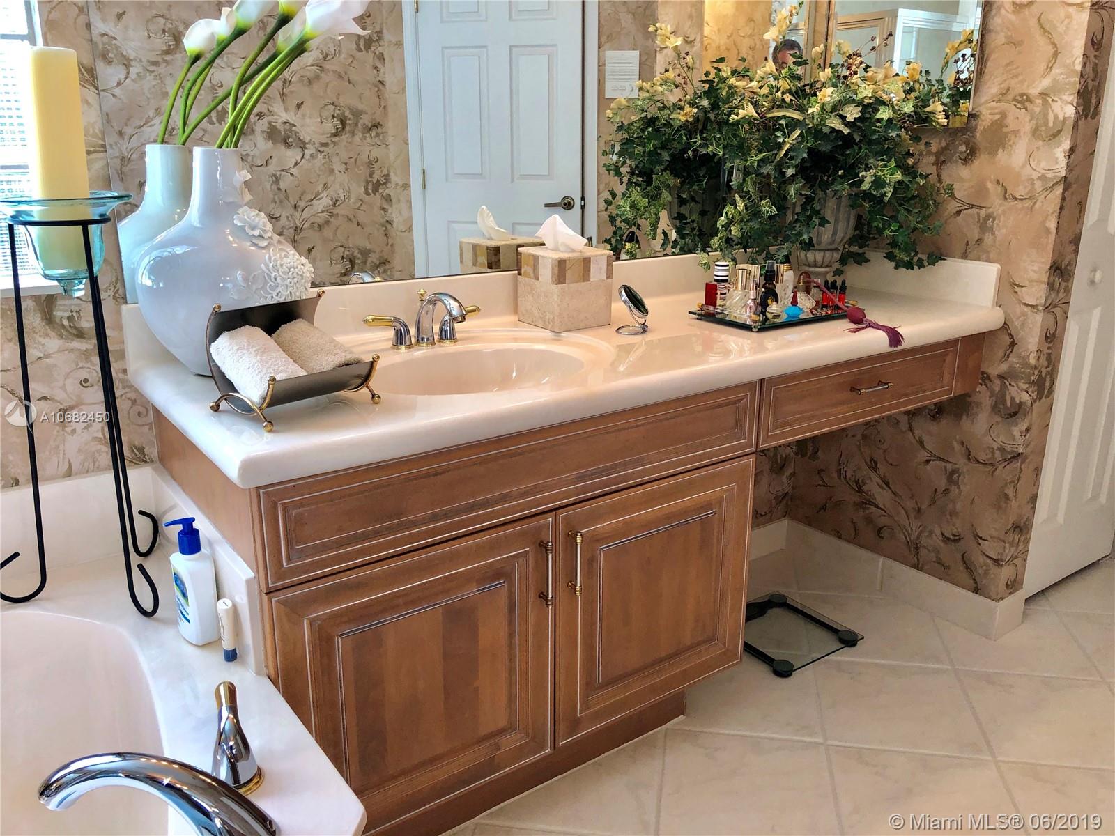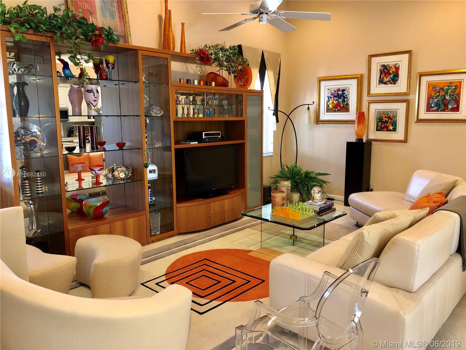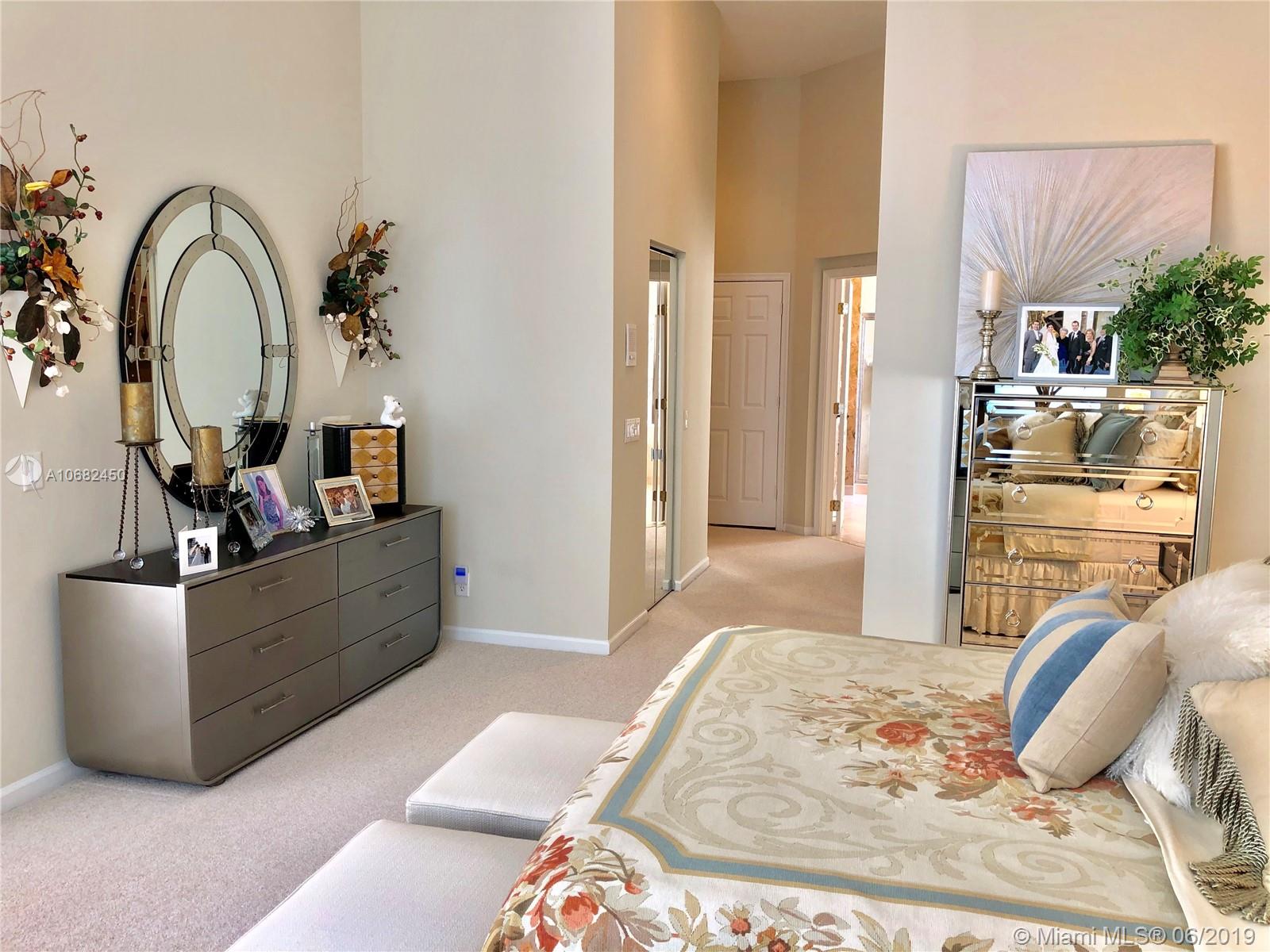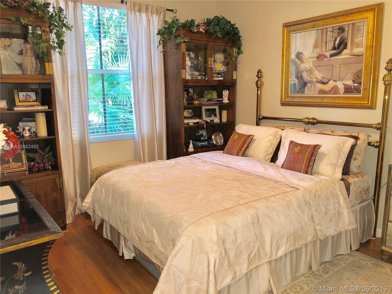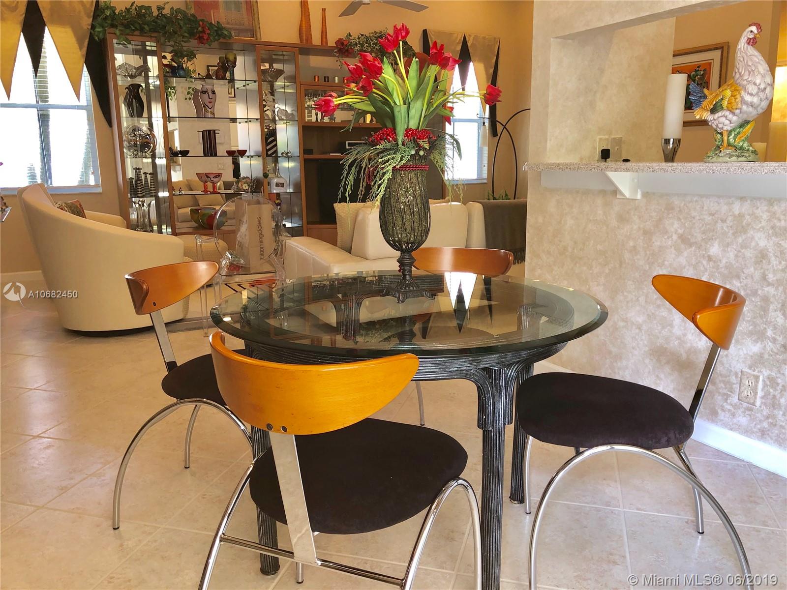 Original owners have maintained this elegant home with pride. Enter this spacious one story via your expansive circular paver driveway, lushly landscaped and enter through glass impact doors. Neutral diagonal coral stone tile flows through the living areas. Enjoy soaring ceilings and windows on private pool with paver patio, fully fenced and lushly landscaped. Split floor plan with private bedroom wing with wood floors, blinds and cabana bath to pool. Master bath with slider to patio, silloutte shades and luxurious master bath with roman tub, dual sinks. White kitchen with upgraded stainless steel appliances, center island and fashionable corian countertops. This home shows pride of ownership. Full accordion protection. Walk to community park.