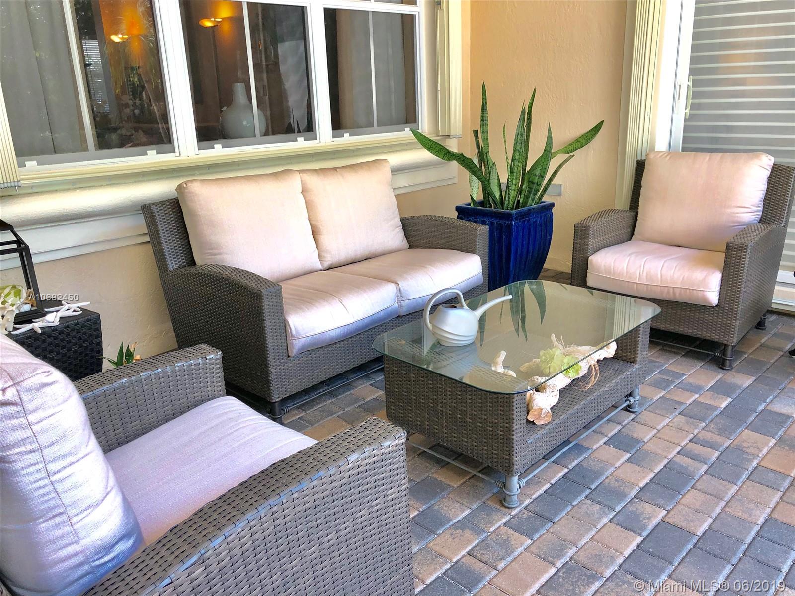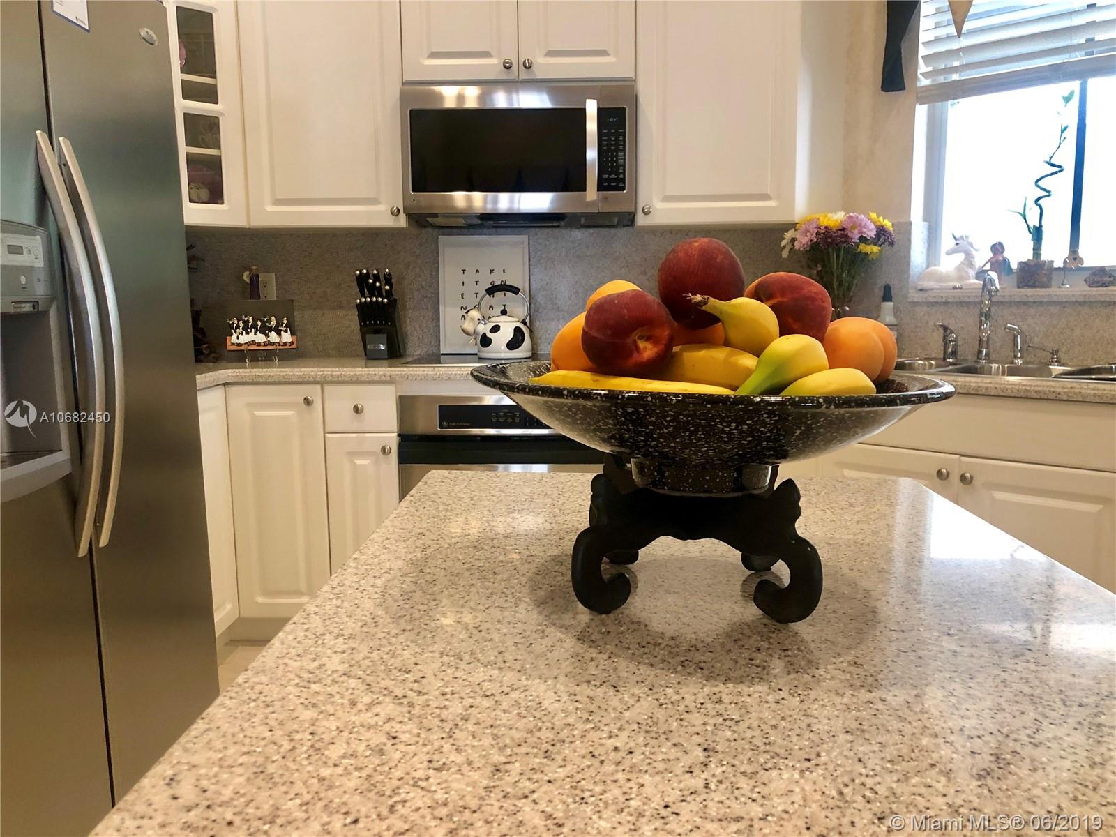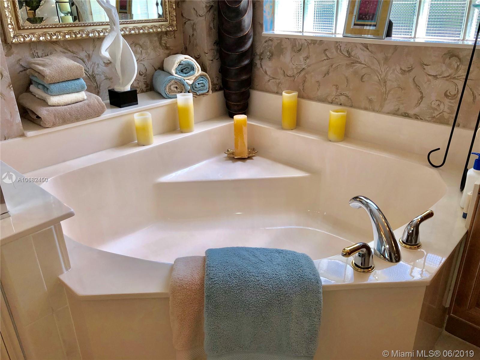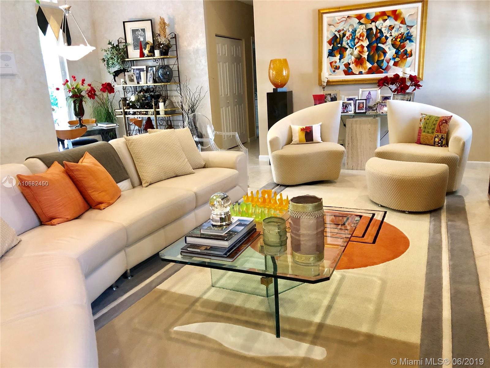 Original owners have maintained this elegant home with pride. Enter this spacious one story via your expansive circular paver driveway, lushly landscaped and enter through glass impact doors. Neutral diagonal coral stone tile flows through the living areas. Enjoy soaring ceilings and windows on private pool with paver patio, fully fenced and lushly landscaped. Split floor plan with private bedroom wing with wood floors, blinds and cabana bath to pool. Master bath with slider to patio, silloutte shades and luxurious master bath with roman tub, dual sinks. White kitchen with upgraded stainless steel appliances, center island and fashionable corian countertops. This home shows pride of ownership. Full accordion protection. Walk to community park.