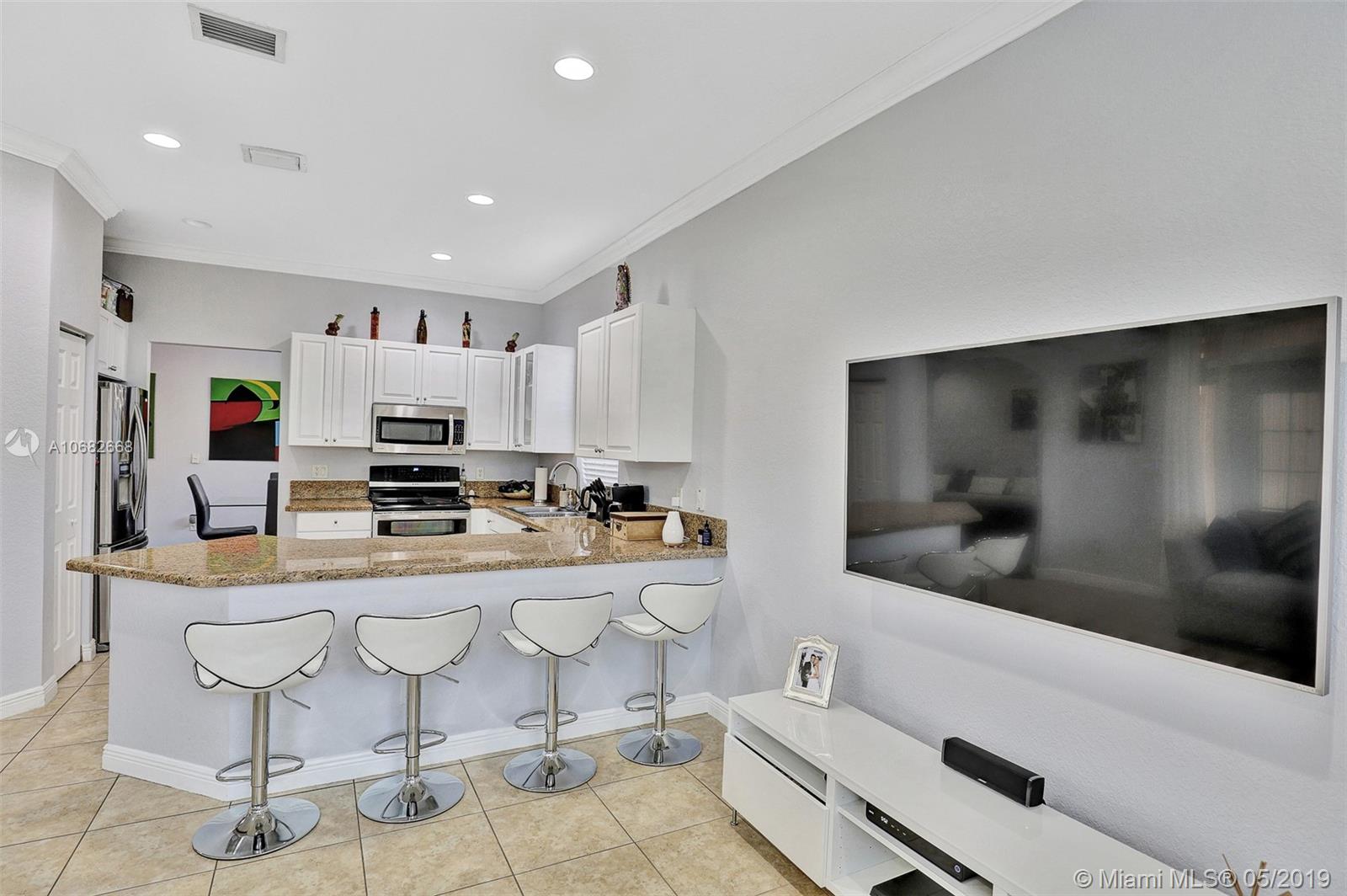 Shows like new! Beautiful one story home with 2 car garage spaces. Freshly painted, updated bathrooms with shower frameless glass doors and new wall tile. Updated kitchen with granite countertops, stainless steel applicances. Live in the most sought after gated community of Bellagio at Vizcaya with resort-style amenities in clubhouse and nearby highly rated Somerset Academy Elementary School. Very easy to show!