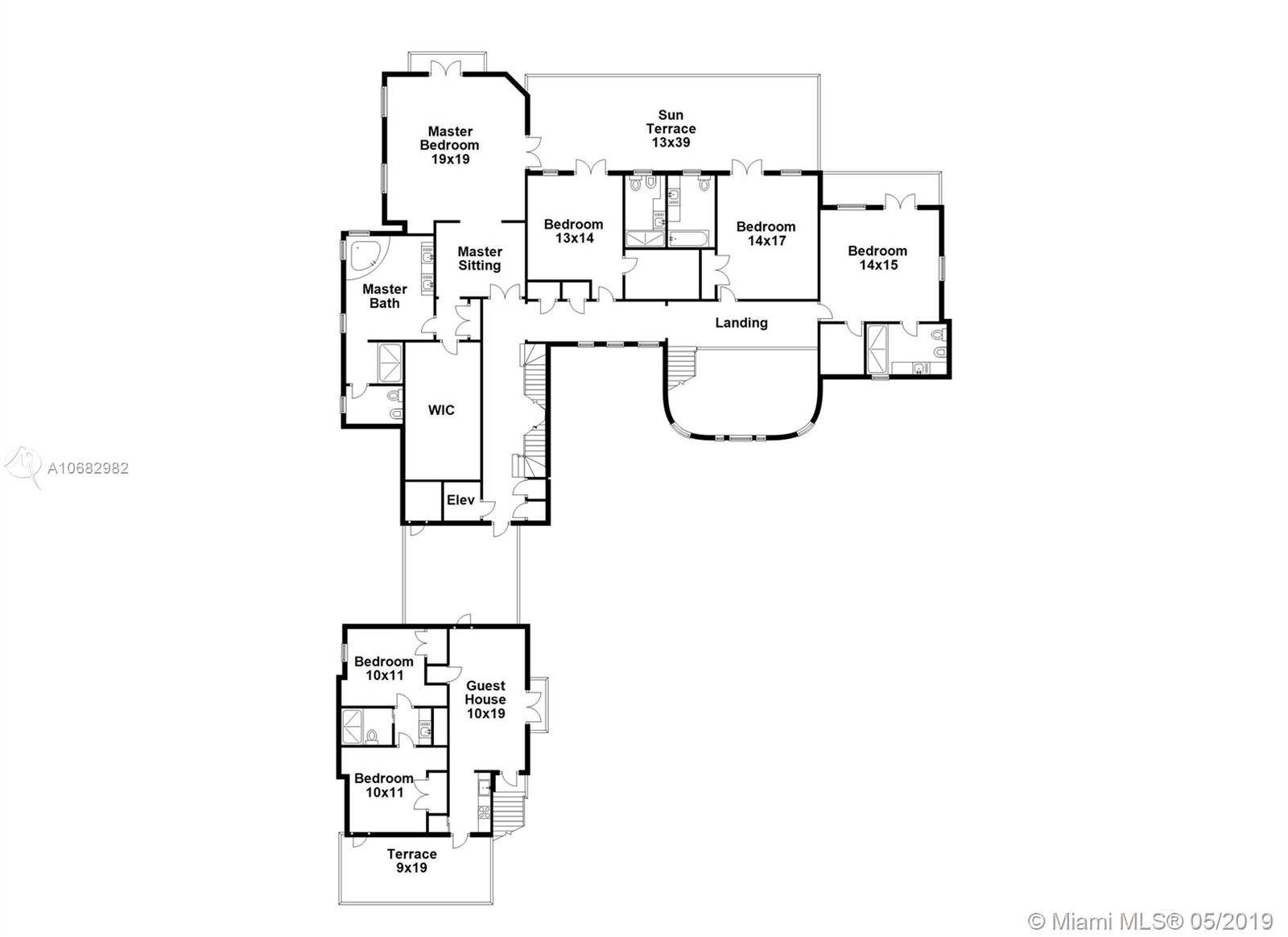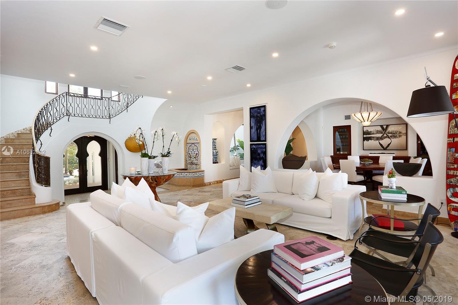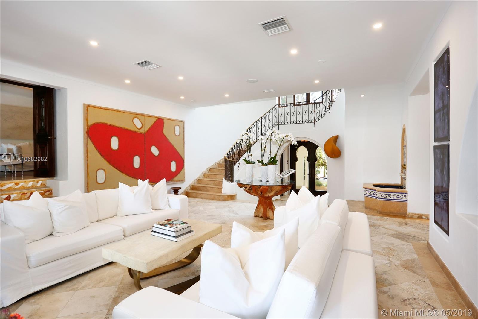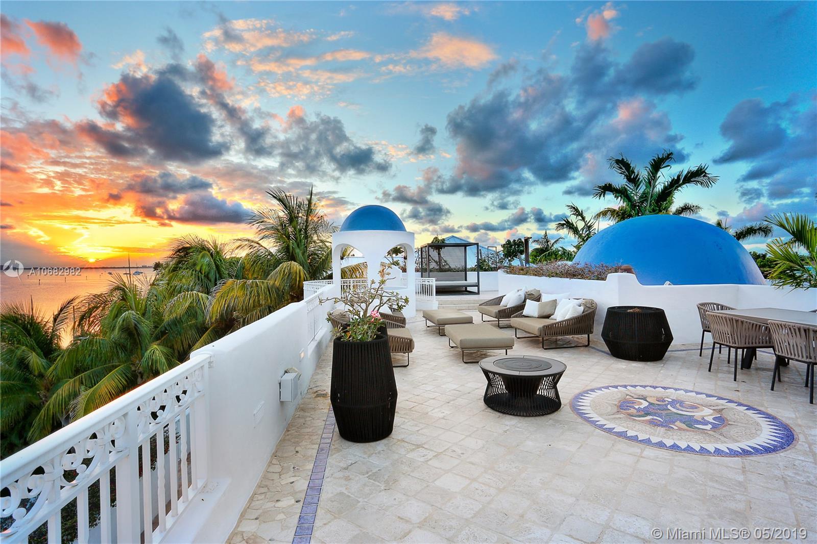 Views of wide water lagoon from this beautiful Mediterranean home located in the fabled Island of Key Biscayne. Sited on a half acre +/- lot with 7 bedrooms, 7 full baths and 2 half baths, it offers the ultimate destination for anyone seeking to accommodate either a growing or a multi-generational family. There is a spacious 2 bedroom guest house attached, located over an air conditioned 2 car garage. The sprawling roof-top patio is the ultimate spot for entertaining and enjoying fabled, Miami sunsets and city skyline views. There are an almost endless list of amenities: deep water dock for a large vessel, free-form swimming pool and jacuzzi, summer kitchen, gym, library, elevator, gourmet kitchen and family room overlooking the lagoon. Bring your most discriminating buyers!
