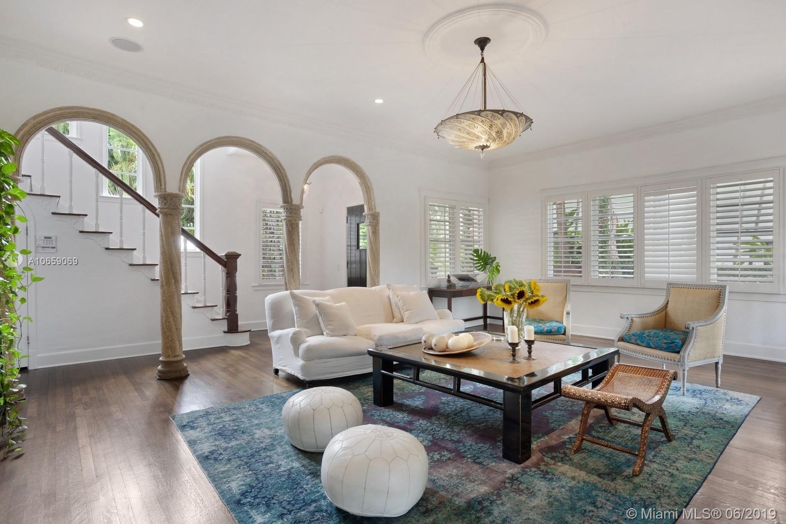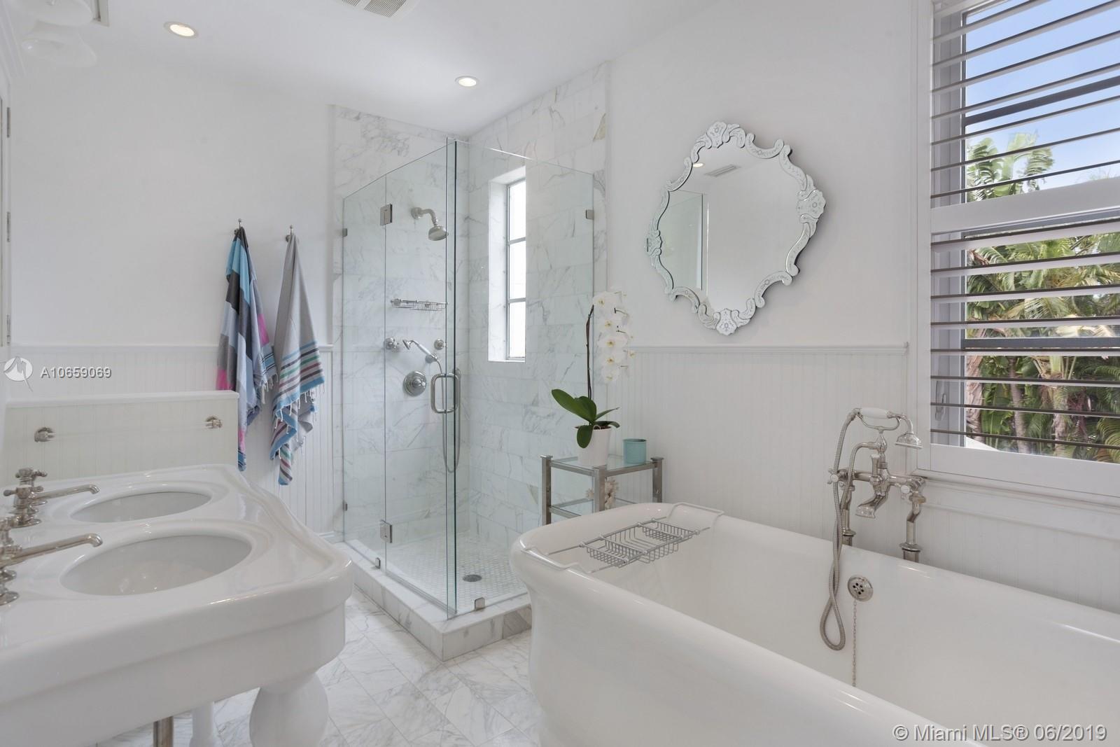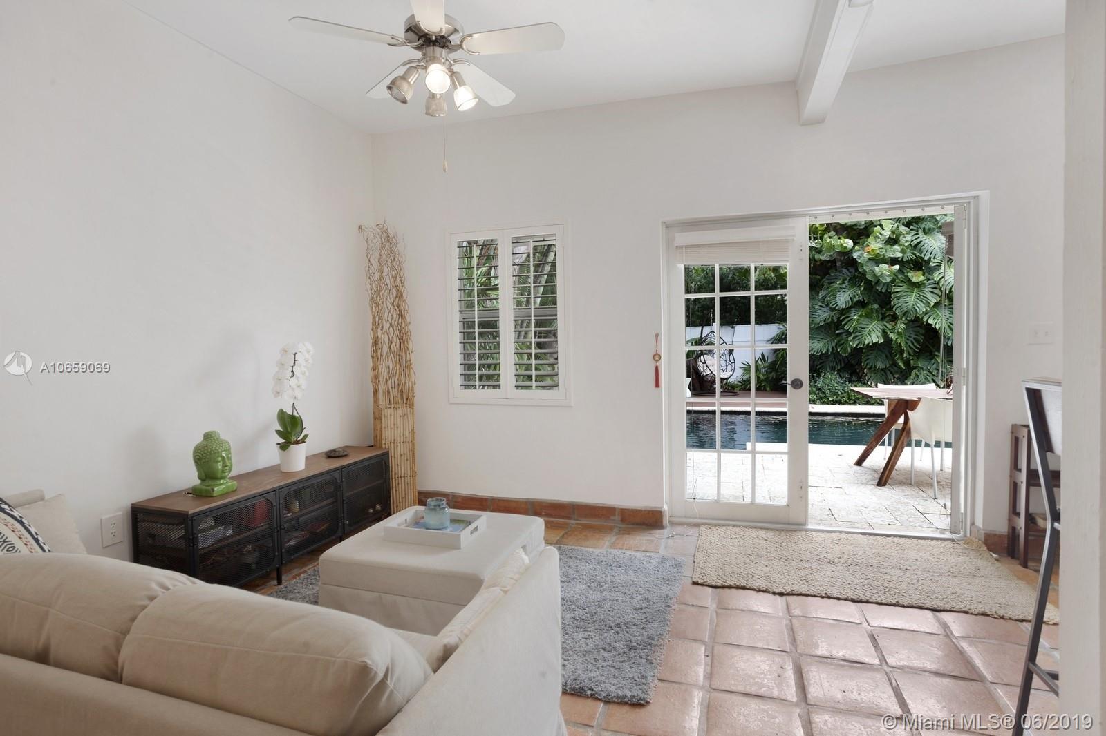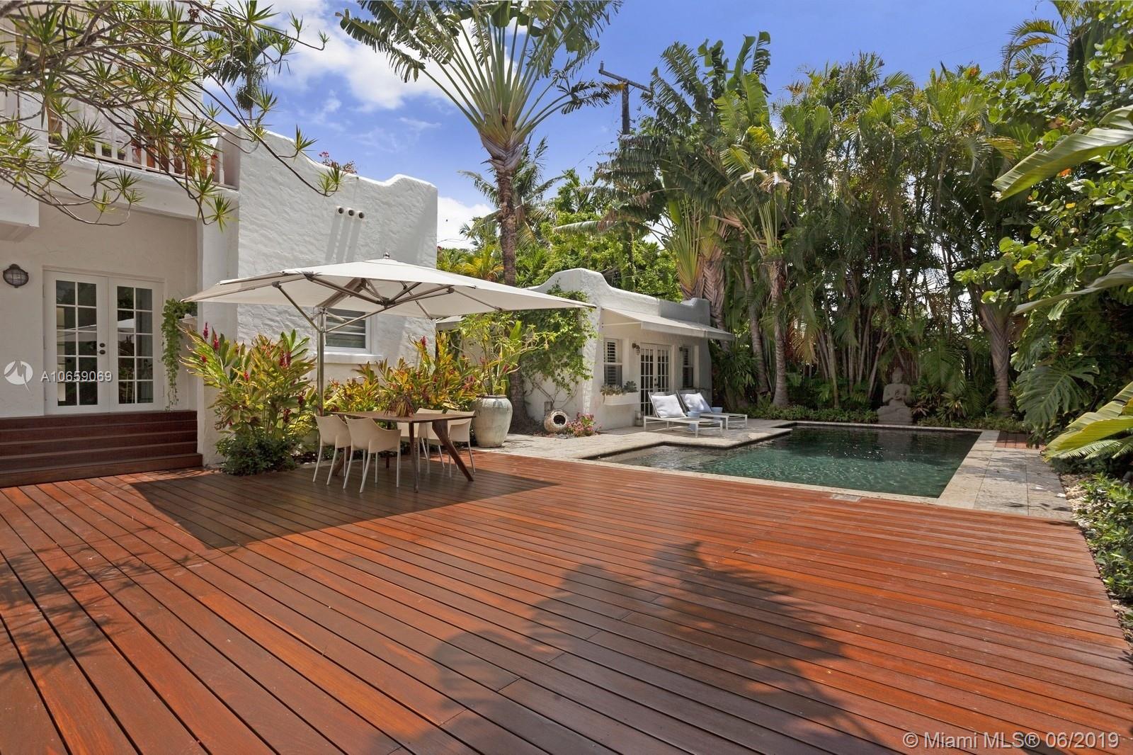 UNIQUE & PRIVATE TROPICAL OASIS ON MIAMI BEACH'S PRESTIGIOUS NORTH BAY ROAD. IMPECCABLY RESTORED ARCHITECTURAL GEM FEATURES GOURMET KITCHEN W/ NEW COUNTERTOPS & CABINETRY, STAINLESS STEEL ISLAND W/VIKING GAS RANGE & HOOD, FORMAL DINING ROOM, OPEN & GRAND LIVING AREA W/ SOARING CEILINGS & SEPARATE DEN W/ARCHED WINDOWS OVERLOOKING PRIVATE GARDEN. BRIGHT & AIRY UPSTAIRS BEDROOMS FEATURE FRENCH DOORS LEADING ONTO ROMANTIC OUTDOOR PRIVATE BALCONIES. RELAX IN A SERENE & LUSH OUTDOOR SETTING SURROUNDED BY TROPICAL LANDSCAPING & NATIVE PALMS, BRAND NEW IPE WOOD DECK, POOL AREA & SPACIOUS PRIVATE POOL GUEST HOUSE FEATURING KITCHEN & BATH. DESIRED & CENTRAL CLOSE TO NEW TRADER JOE'S,FRESH MARKET, SUNSET HARBOUR/SOUTH BEACH SHOPS & RESTAURANTS. AS PER OWNER PROPERTY IS 5BED/4.5BATH.