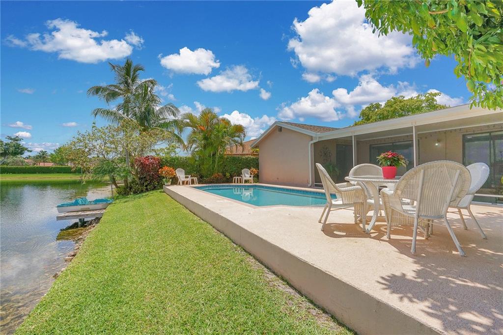 Beautiful lake front pool home located in one Davie's most sought after communities! This home features endless lake views, screened in patio area, new appliances,hurricane shutters, updated kitchen and bath, as well as low HOA. Located in close proximity to Davie's top rated schools, shops and, highways this home is truly move in ready and one that should be seen!