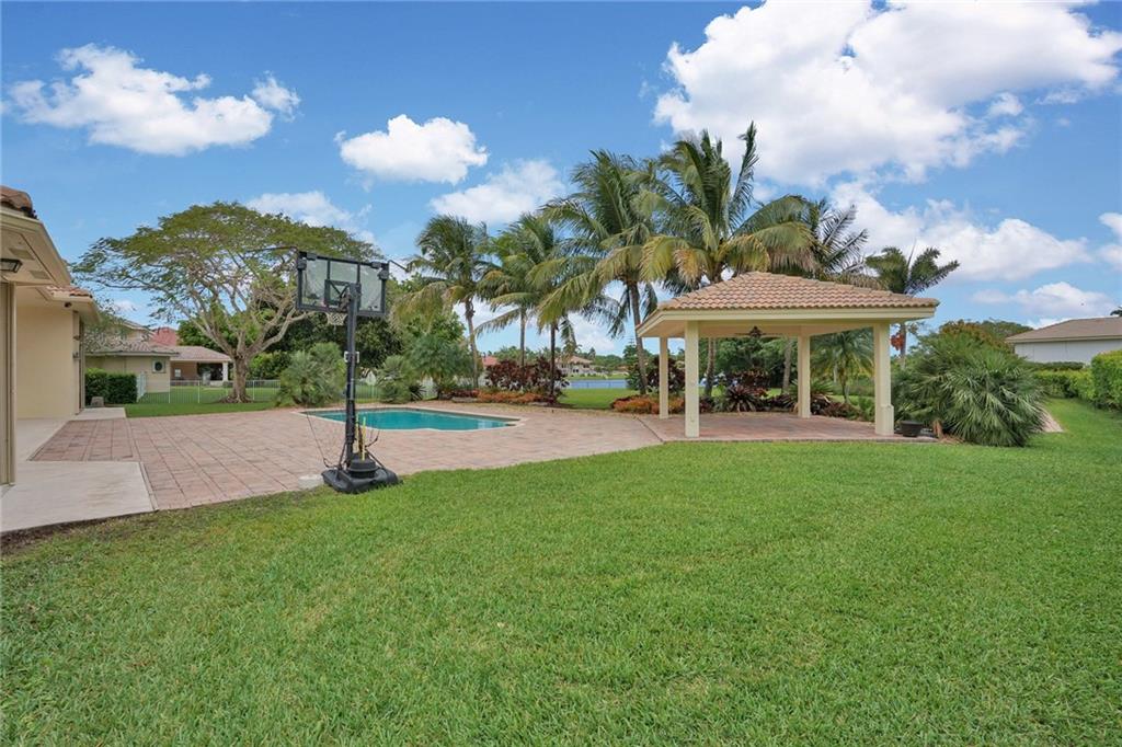 Fabulous Waterfront Home in Prestigious 24/7 Guarded Gated Westridge Community with Exquisite Landscapes overlooking a Magnificent Lake and Large Patio. Located on Approximate an Acre of Land, 5 Bedroom 4 Bathrooms, Open Layout Home with High Ceilings, Hardwood & Title Floors, Large Windows with customized Plantation Shutters, Large Sliding Doors. Renovated Gourmet Kitchen, Granite Counter Top, Large Cabinets, Stainless Steel Appliances, Separate Dedicated Laundry Room, Large Walk-in Closets, 3 Car Garage, Circular Paved Driveway, Large Paved Patio, 36x16 Swimming Pool, Private Customized Gazebo with Water and Electric Power, Barrel Title Roof, Hurricane Window Accordions on ALL Windows for Great Protection of You and Your Family!