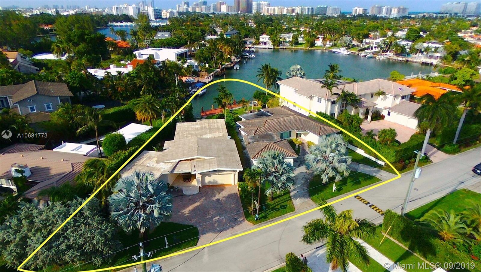 Waterfront in Surfside on the Isle of Biscaya! Unique property. Rare find. 4 beds, 3 baths, with 25 linear ft of water frontage. Nice dock. Wide canal view. No fixed bridges. A schools. Spacious layout in this 2,562 sq ft house with marble floors and a two car garage, originally built in 1956. Hurricane proof windows. Overall this house is in good condition on the most tranquil pie shaped lot. Bathrooms need updating. Police patrolled Surfside is a most sought after neighborhood. Short walk to the beach. Easy to show. Can be purchased with 1277 Biscaya Dr, the house next door to make a combined 17000+ sq ft lot with 50+ linear ft of water frontage (See ML# A10716284)