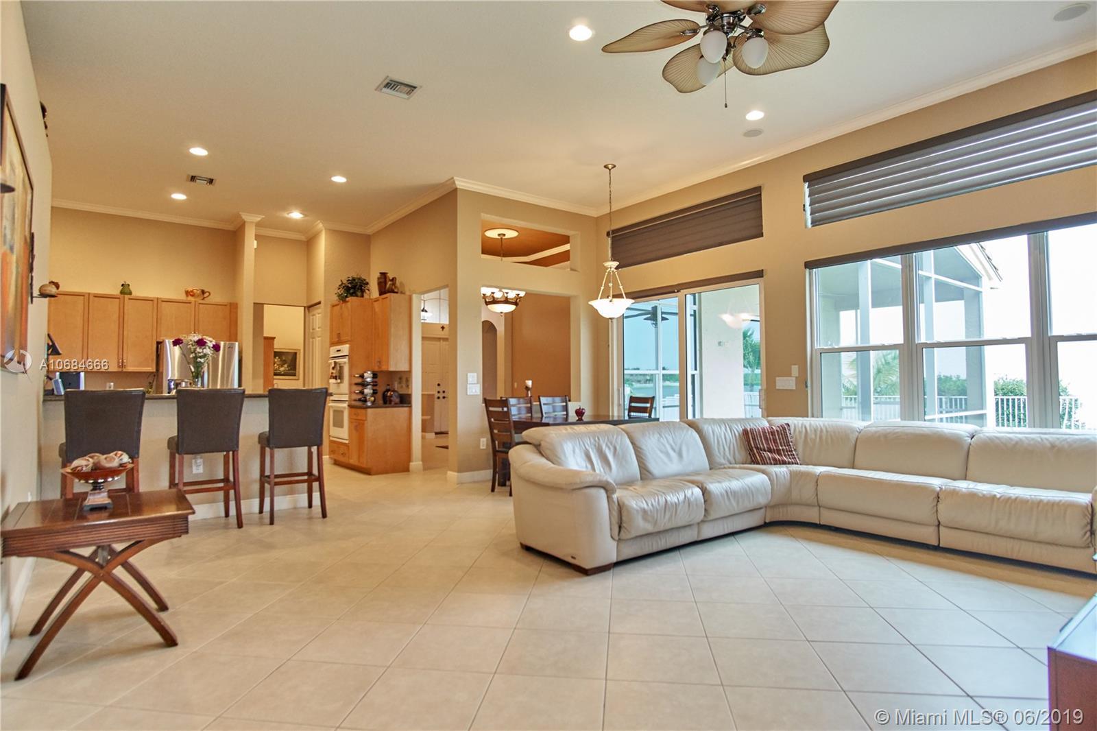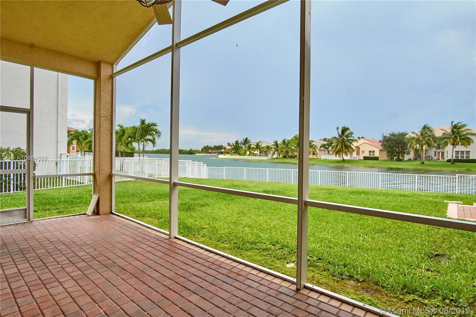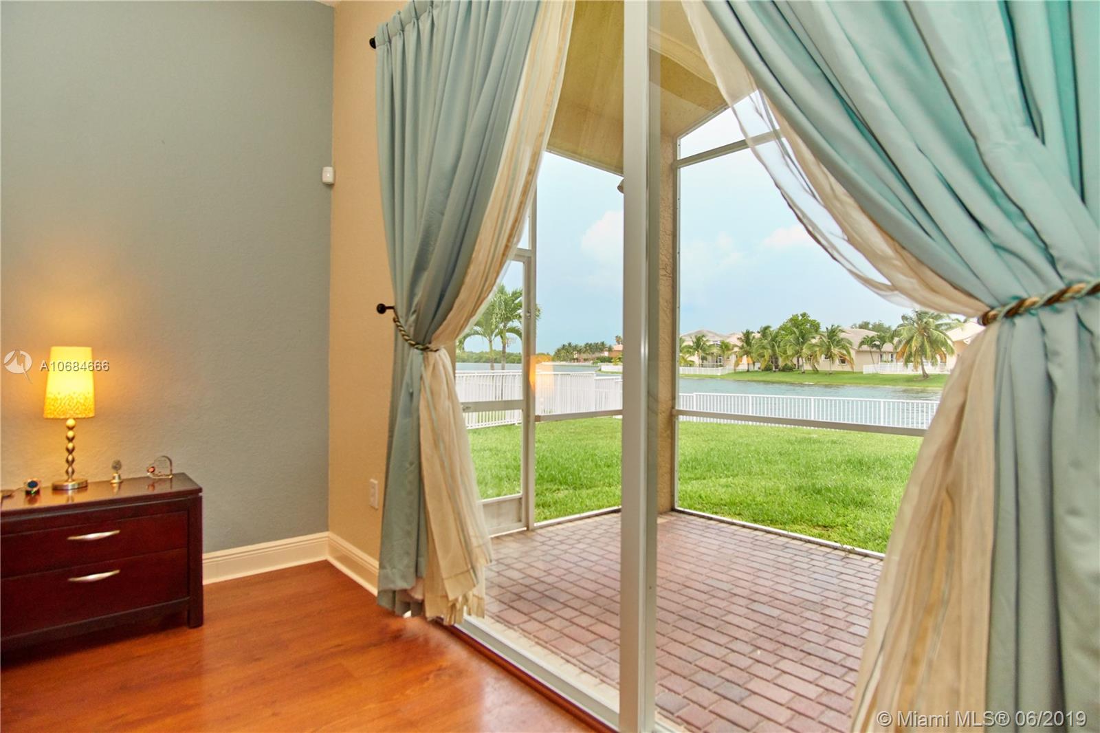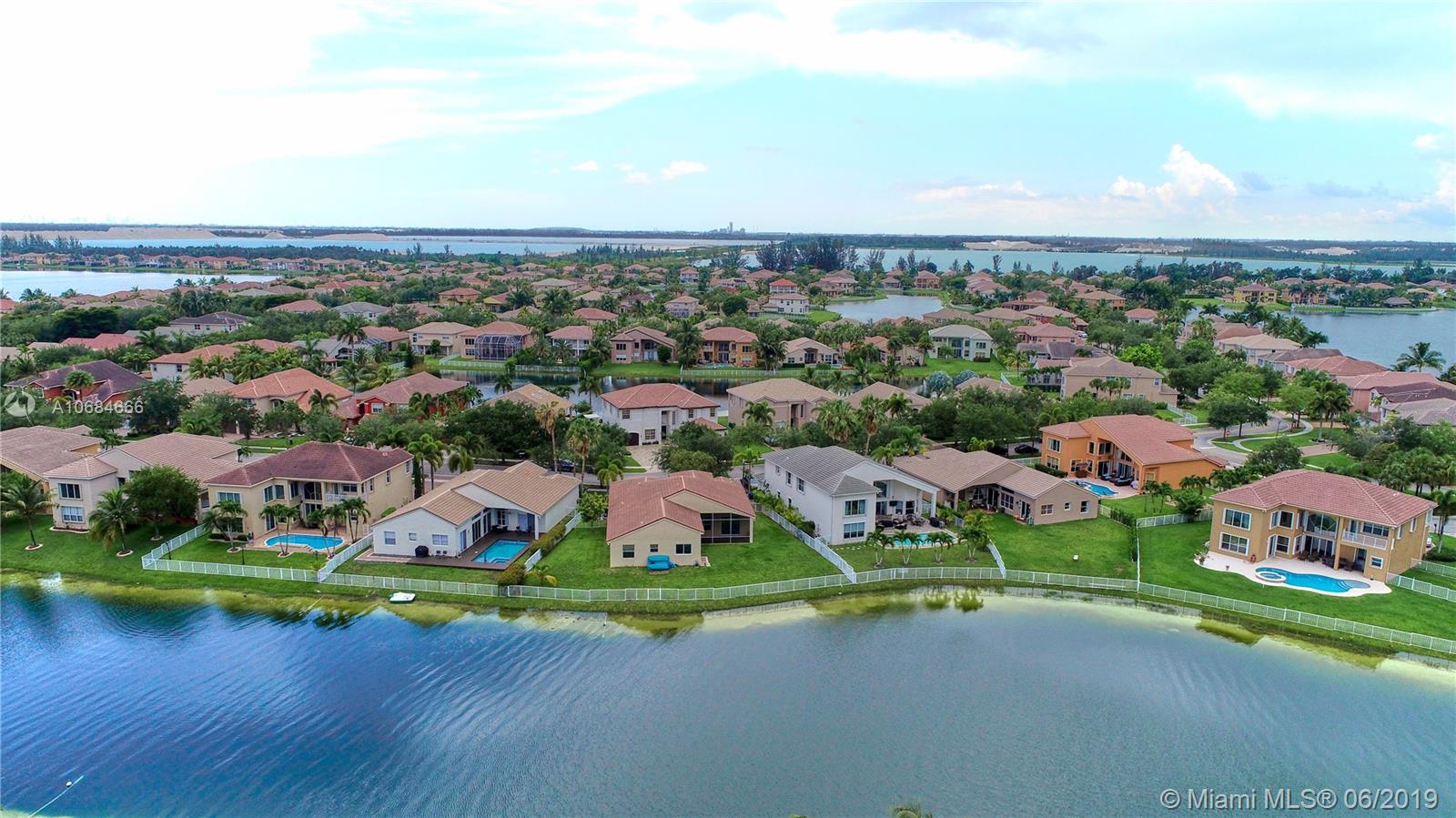 Beautiful lake front one story house in the prestigious community of Sunset Lakes. Over size lot. Open plan, high ceilings, large windows with plenty of natural light. 5 bedrooms with hard wood floors, 3 bathrooms. 2 bedrooms share a Jack-Jill bathroom. Large master bedroom with 2 walking closets. Master bathroom has his and hers sinks, jacuzzi tub. Formal dining room and living room, spacious kitchen with stainless steel appliances and granite counter tops. Big family room with a gorgeous sunset view over the lake, impact windows facing the lake, screened terrace, fence. Laundry room with sink and cabinets. 3 car garage. The Association fee includes basic cable, alarm and access to the club house that includes resort style pool, complete gym/sauna, tennis, basketball, and playground.