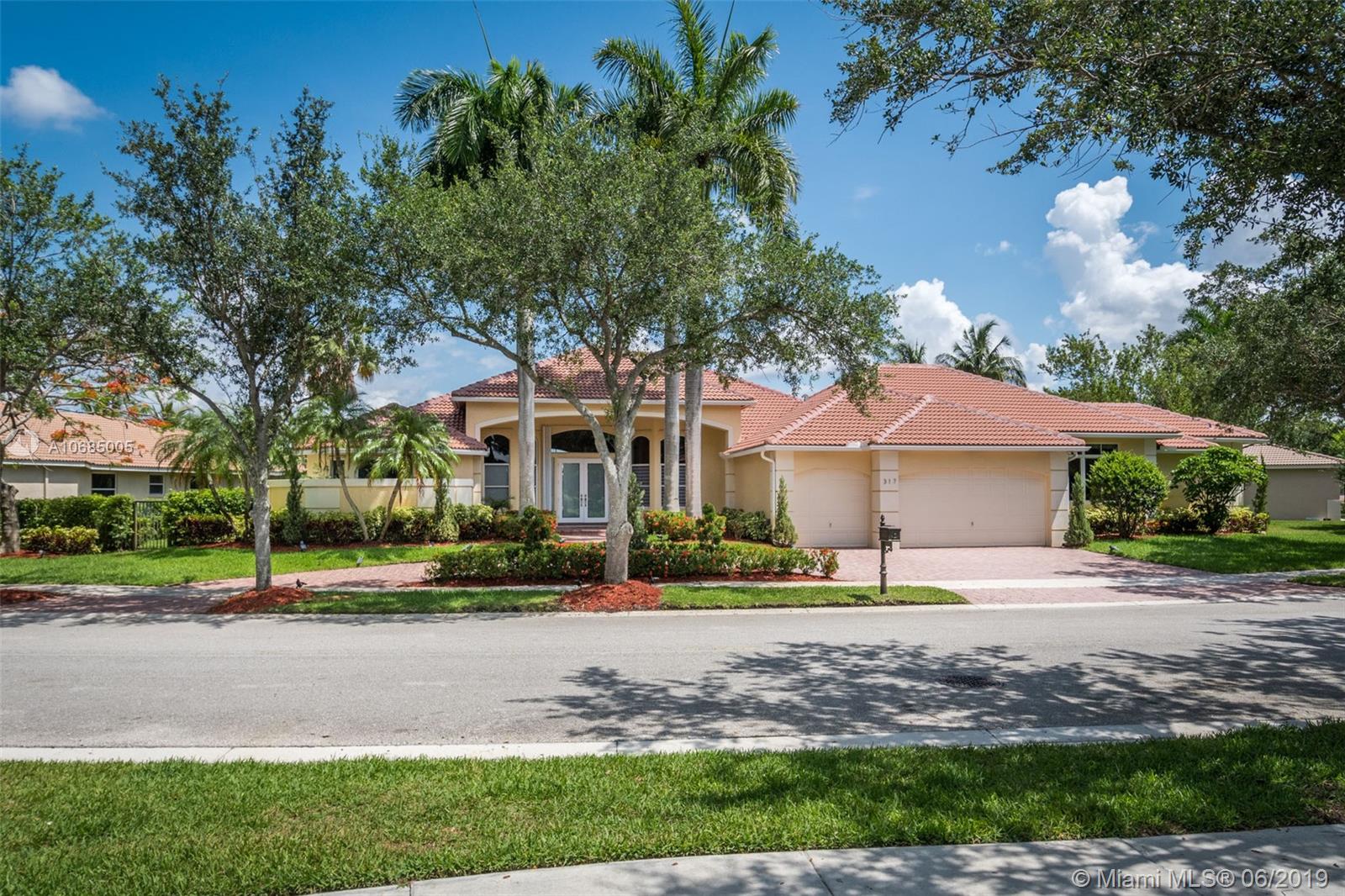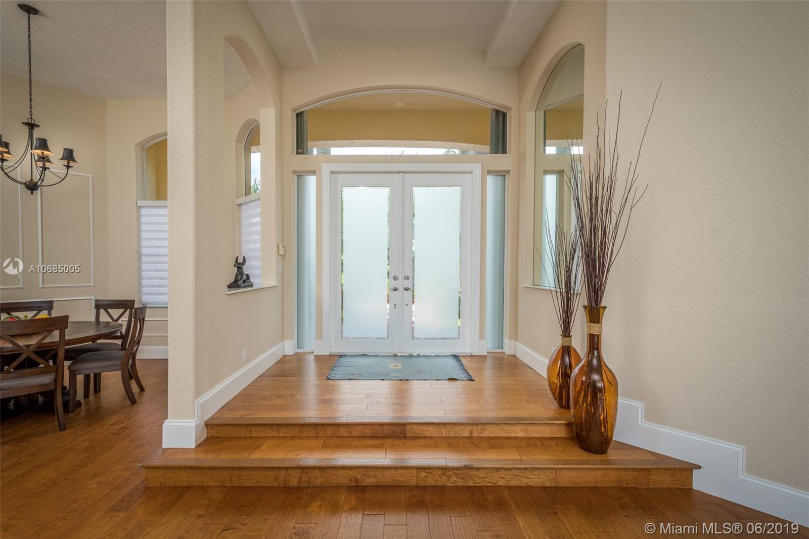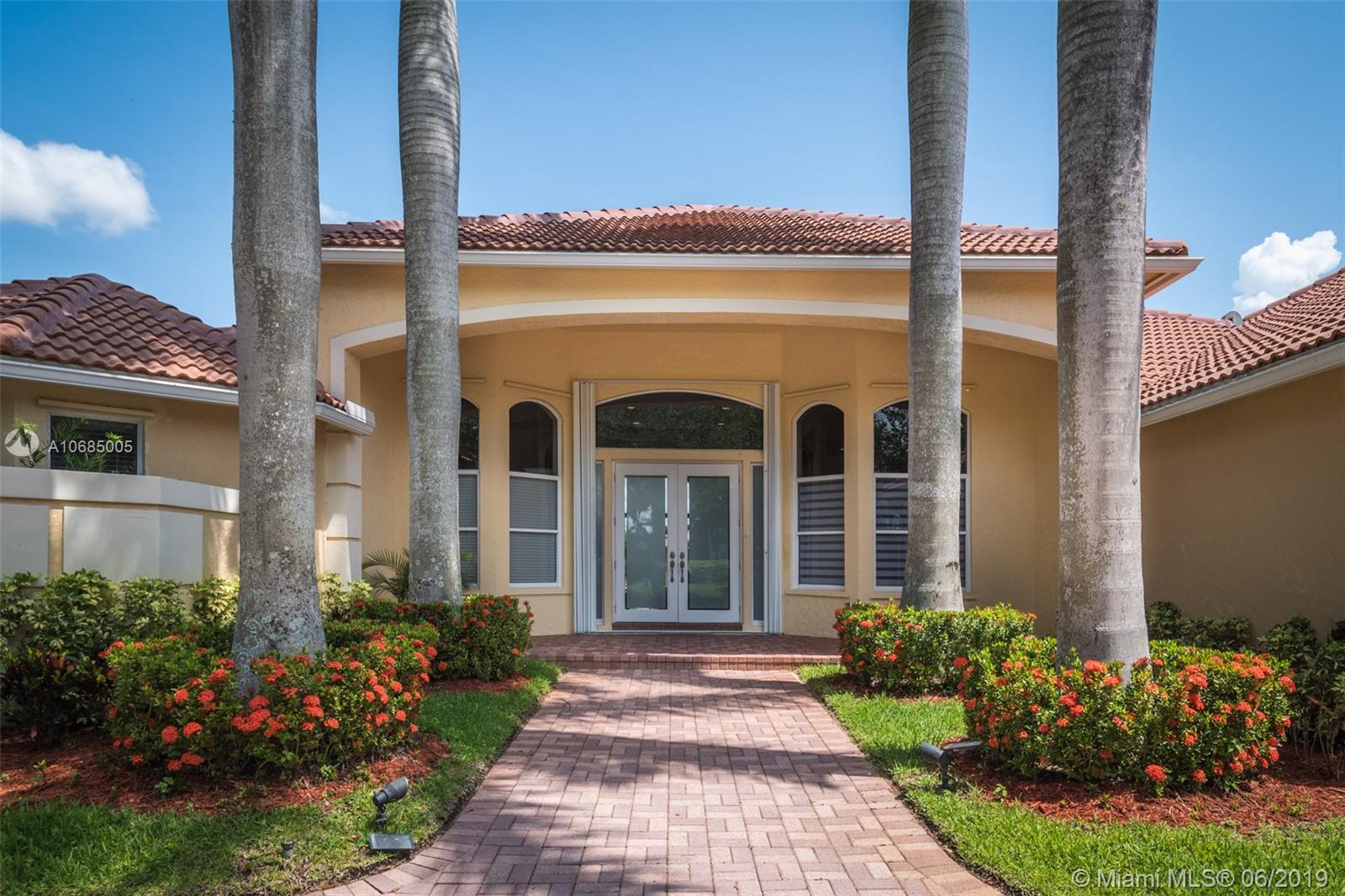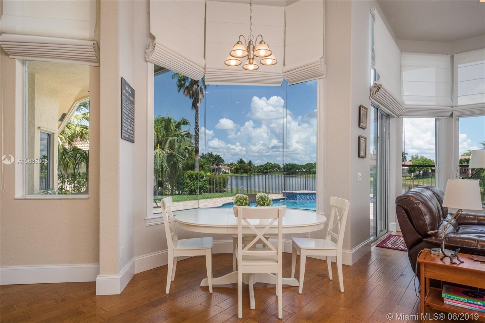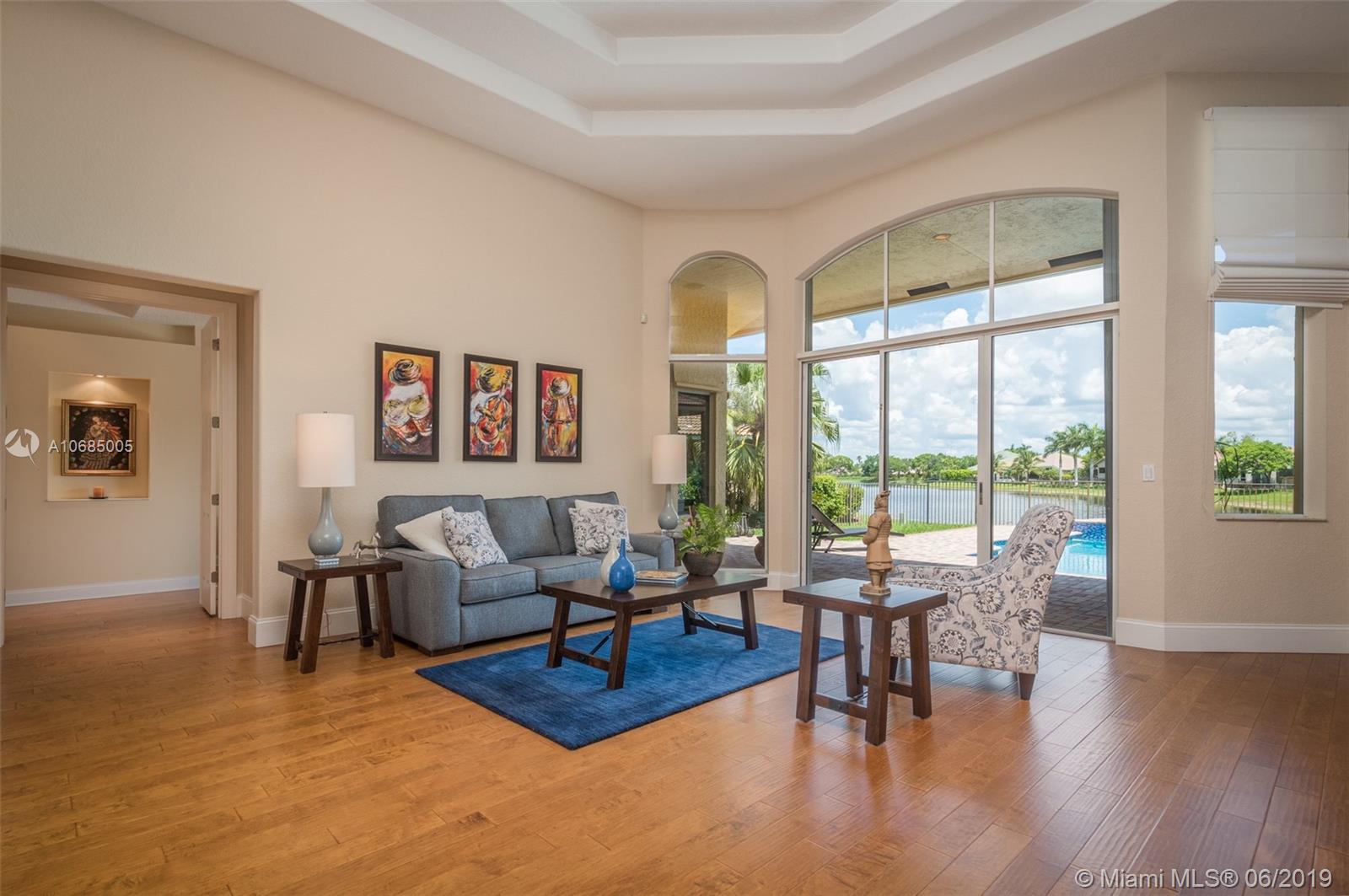 This is the one you have been waiting for. Expanded custom one story home on a private oversized 17,796 square foot lot. Enjoy long lake views with newly renovated heated pool - chlorinated but could be salt*cascading spa*spacious covered paver patio*summer kitchen*fully fenced*across the street from the community park. Chef's Delight kitchen*marble center island 9x5 with seating*top of the line Stainless Steel Appliances*Custom wood floors*Master bedroom with custom built in closet*glass doors*shoe closet*Marble Master Bath*Spa.Newer addition 2010 with full impact glass protection. Kid Wing includes large playroom*guest room*office* Newer Roof*Newer A/C's*Accordions*Fireplace