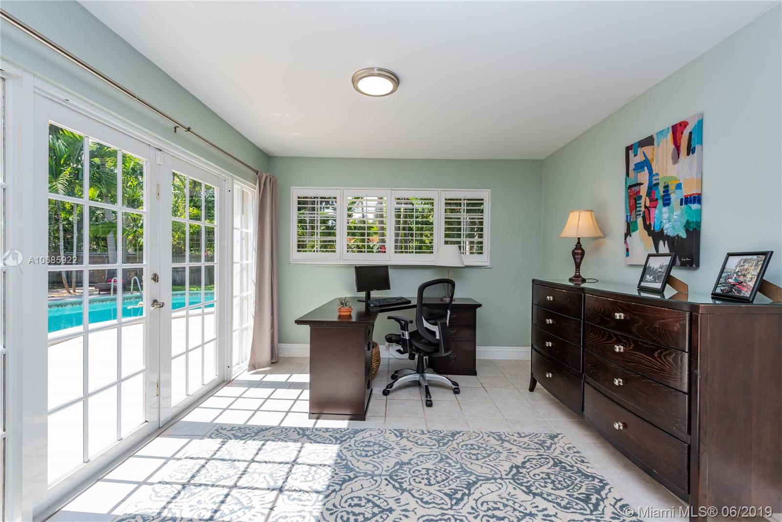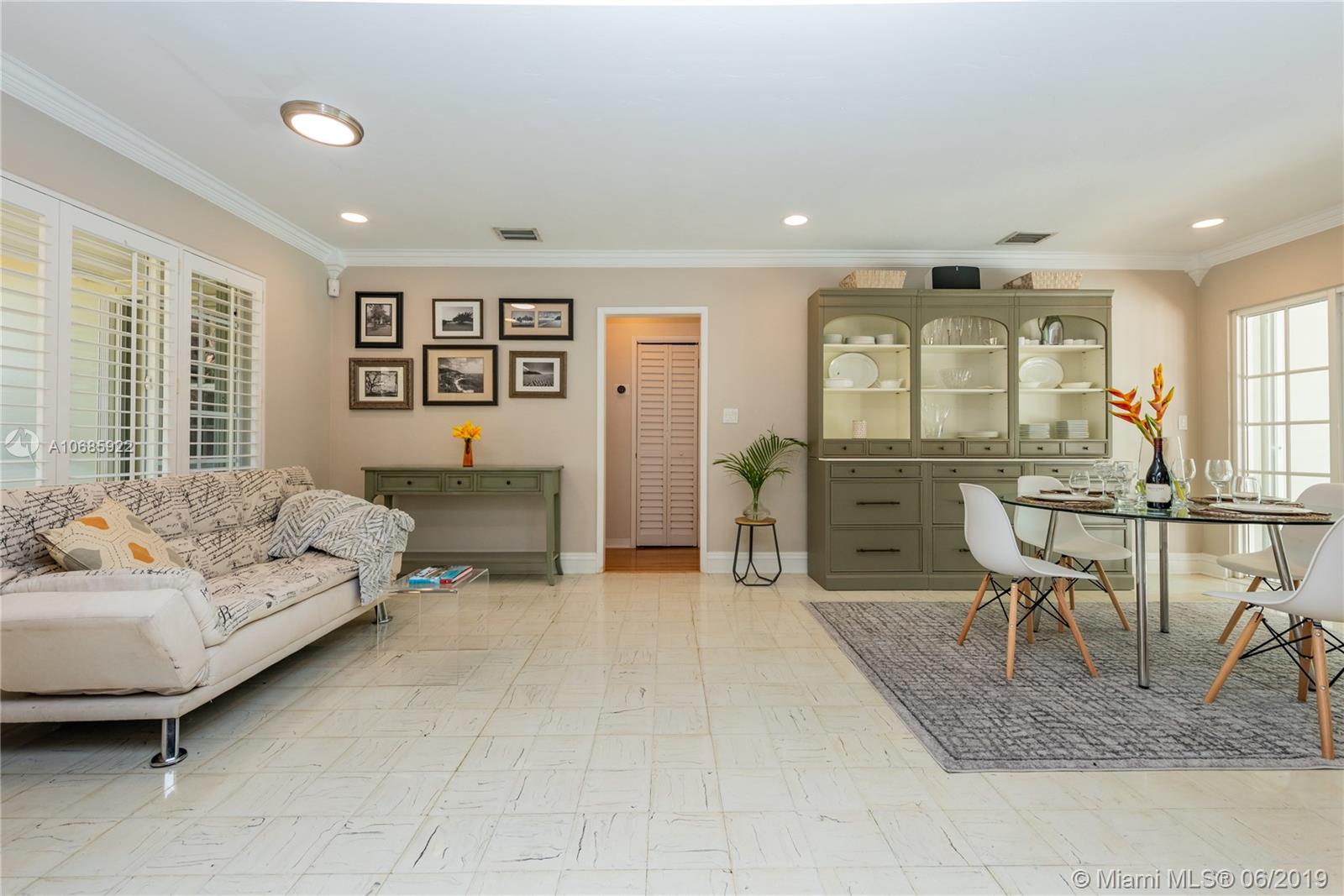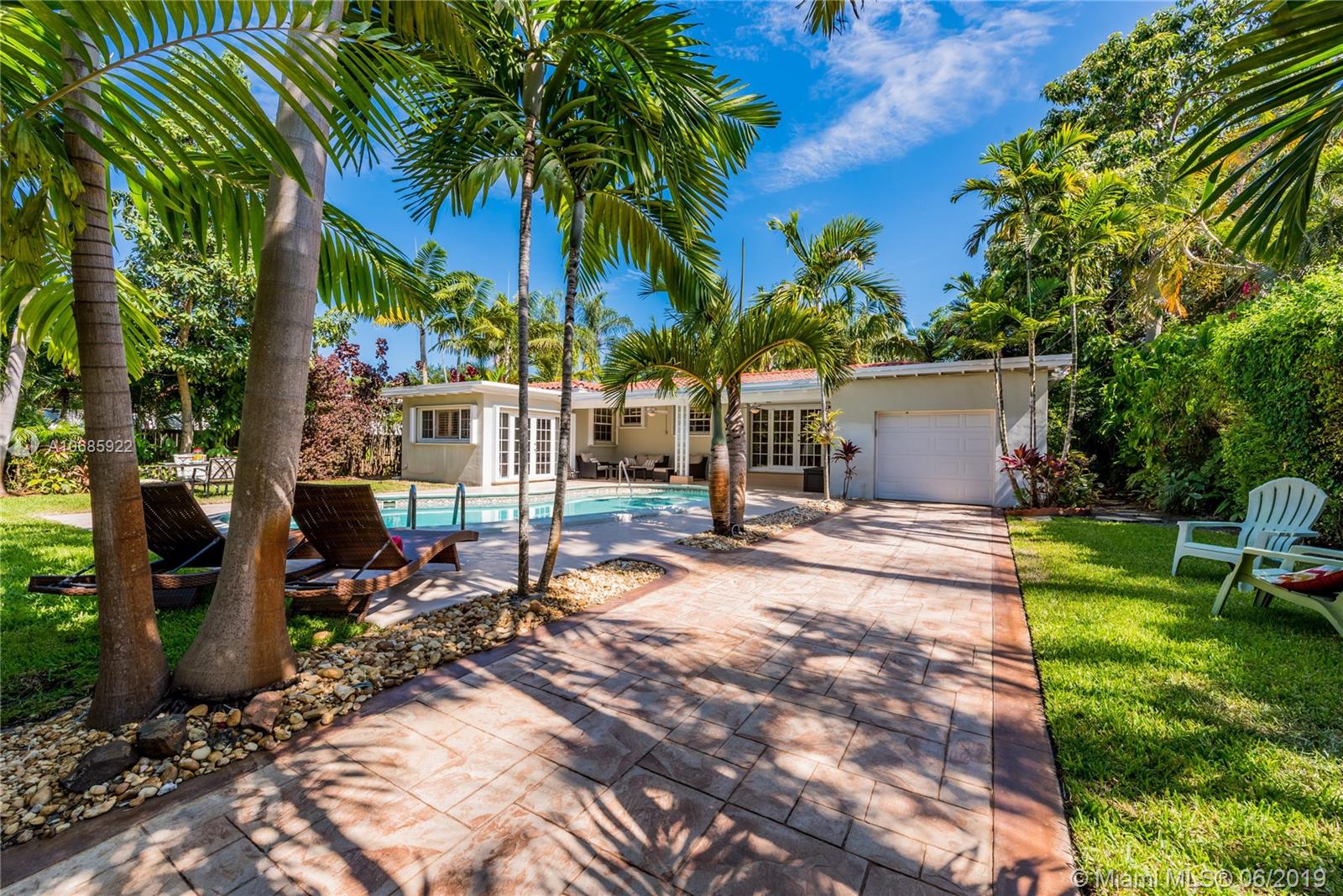 Welcome to Tropical Shores Oasis... Make a splash in this impeccable Miami Shores pool home! You'll feel like you're on vacation in the spacious tropical backyard oasis with a sparkling pool and multiple areas for dining, playing and fun! "Oh, waiter, another round, please!" Enjoy bright living in this updated home with an open flow plan with formal living, den, kitchen and dining room with double French doors opening to the covered patio, perfect for year-round indoor-outdoor living. Double en-suite split three bedroom plan with a bonus sitting room in the master suite retreat with double French doors-- so you can slip out for a private moonlight swim. All with a one car garage, located in a non-flood zone on a quiet, tree-lined street in beautiful Miami Shores. Dive in!