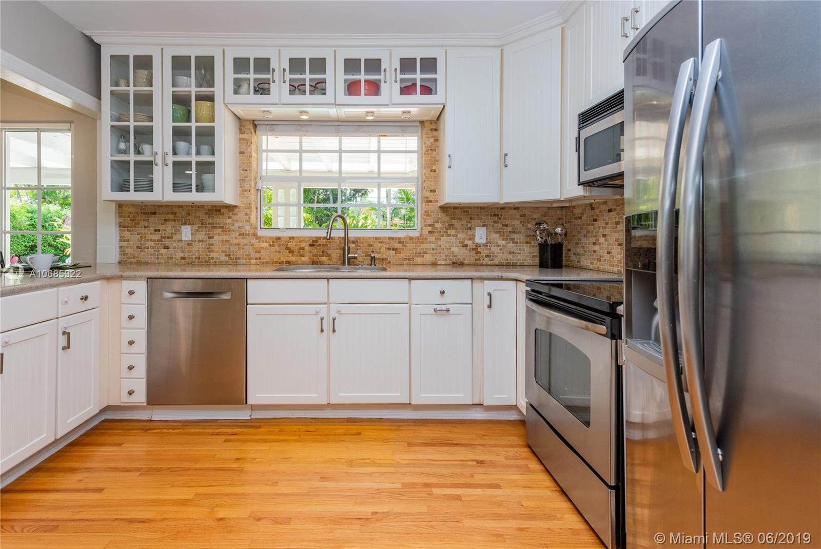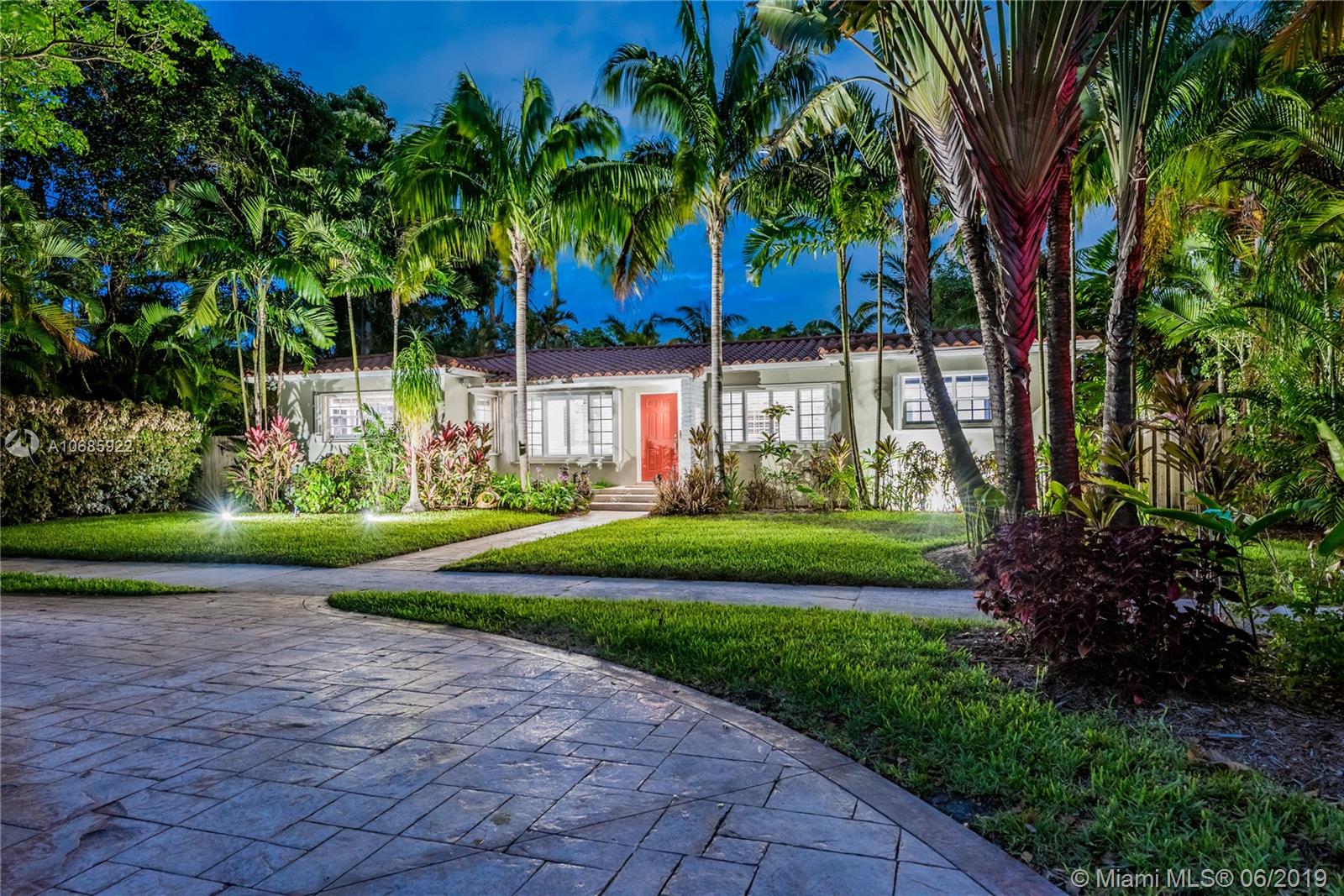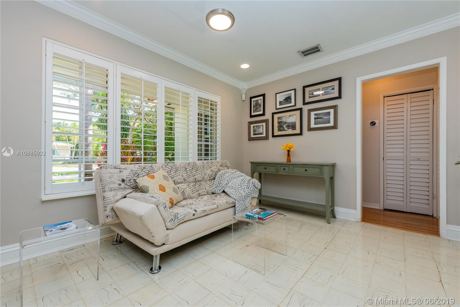 Welcome to Tropical Shores Oasis... Make a splash in this impeccable Miami Shores pool home! You'll feel like you're on vacation in the spacious tropical backyard oasis with a sparkling pool and multiple areas for dining, playing and fun! "Oh, waiter, another round, please!" Enjoy bright living in this updated home with an open flow plan with formal living, den, kitchen and dining room with double French doors opening to the covered patio, perfect for year-round indoor-outdoor living. Double en-suite split three bedroom plan with a bonus sitting room in the master suite retreat with double French doors-- so you can slip out for a private moonlight swim. All with a one car garage, located in a non-flood zone on a quiet, tree-lined street in beautiful Miami Shores. Dive in!