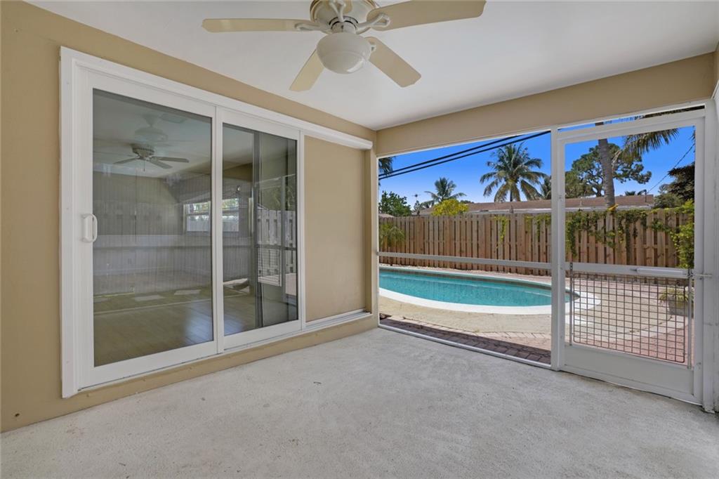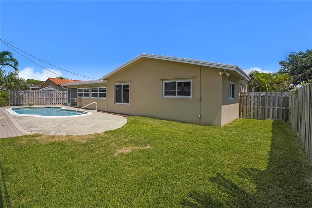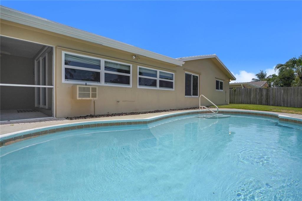 You have found your next home! This 4 bedroom, 2 bath property has impact windows and doors, and the kitchen, baths and floors have been redone. Bright and open with granite counters and stainless steel appliance in the kitchen. A fully fenced, large back yard with a beautiful pool and southern exposure for plenty of sun and breezes. Beautiful landscaping with circular drive in a great neighborhood, close to shopping, parks and healthcare etc. An over-sized one car garage. Just bring your toothbrush and clothes!