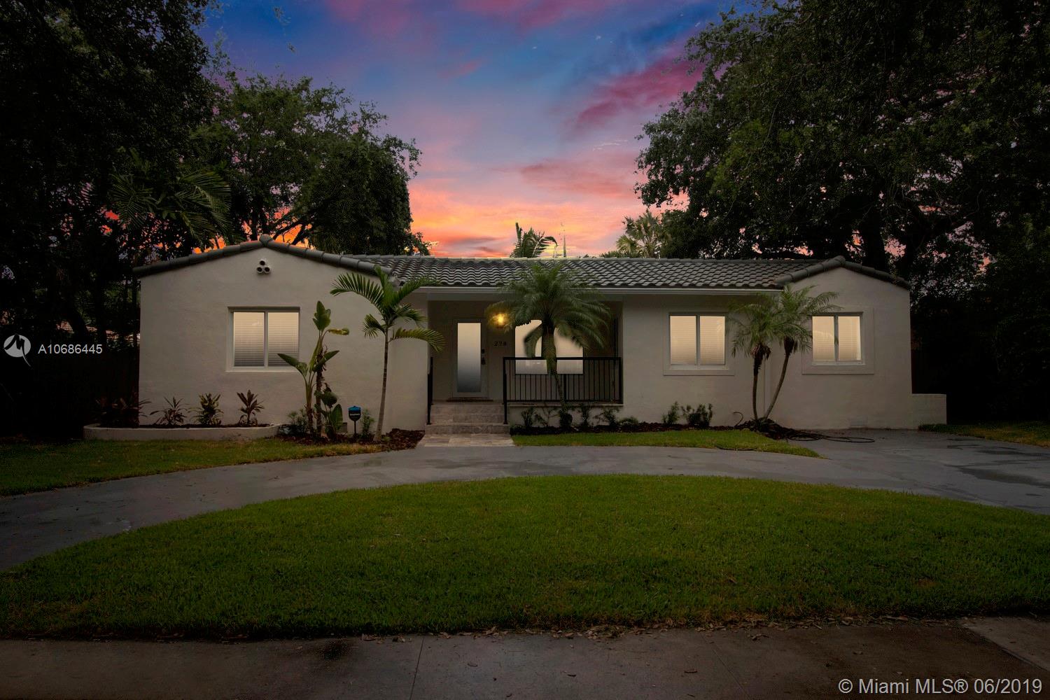 Gorgeous one story Mediterranean 3B/3B House in the heart of highly desired Miami Shores. This architecturally- rich home has been totally renovated, including New Kitchen and Bathrooms; New Hurricane Windows and Doors; New Plumbing, Electrical and A/C; as well as a new roof. Spacious fenced backyard with Fabulous Pool, Deck and garden area.