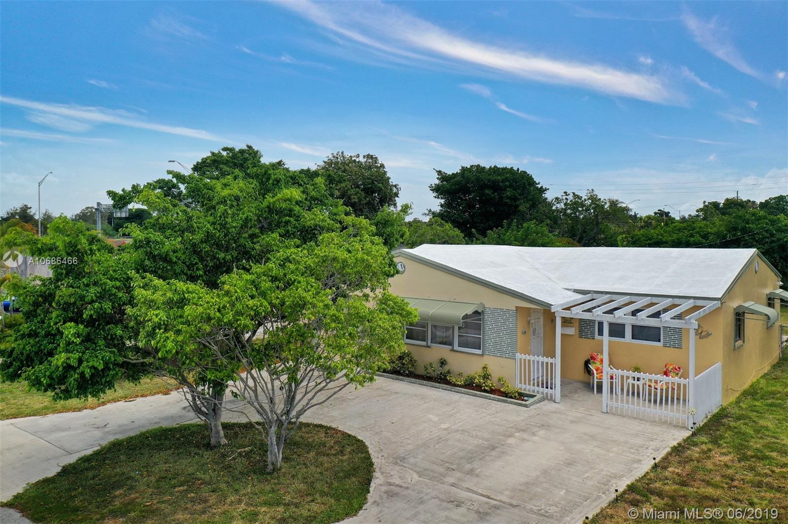 Very cute 3/1 located on a cul de sac in East Hollywood. From the moment you arrive & park on the circular driveway you’ll enjoy a moment taking a seat at the welcoming front patio. Once inside you’ll appreciate the pride of ownership in the care of the property. Important details include extra insulation to keep the house cooler during the hot summer months. FPL installed a surge protector for the house. 24" tiles. Both the kitchen & the bathroom are renovated. The house was recently painted. When you step out to the pergola, perfect for BBQ’s, you’ll be amazed at the expansive back yard. There’s room for a pool, space for playing, and you even have space to plant some herbs, fruits & vegetables. The septic field is located on the NE side of the yard, near the shed.