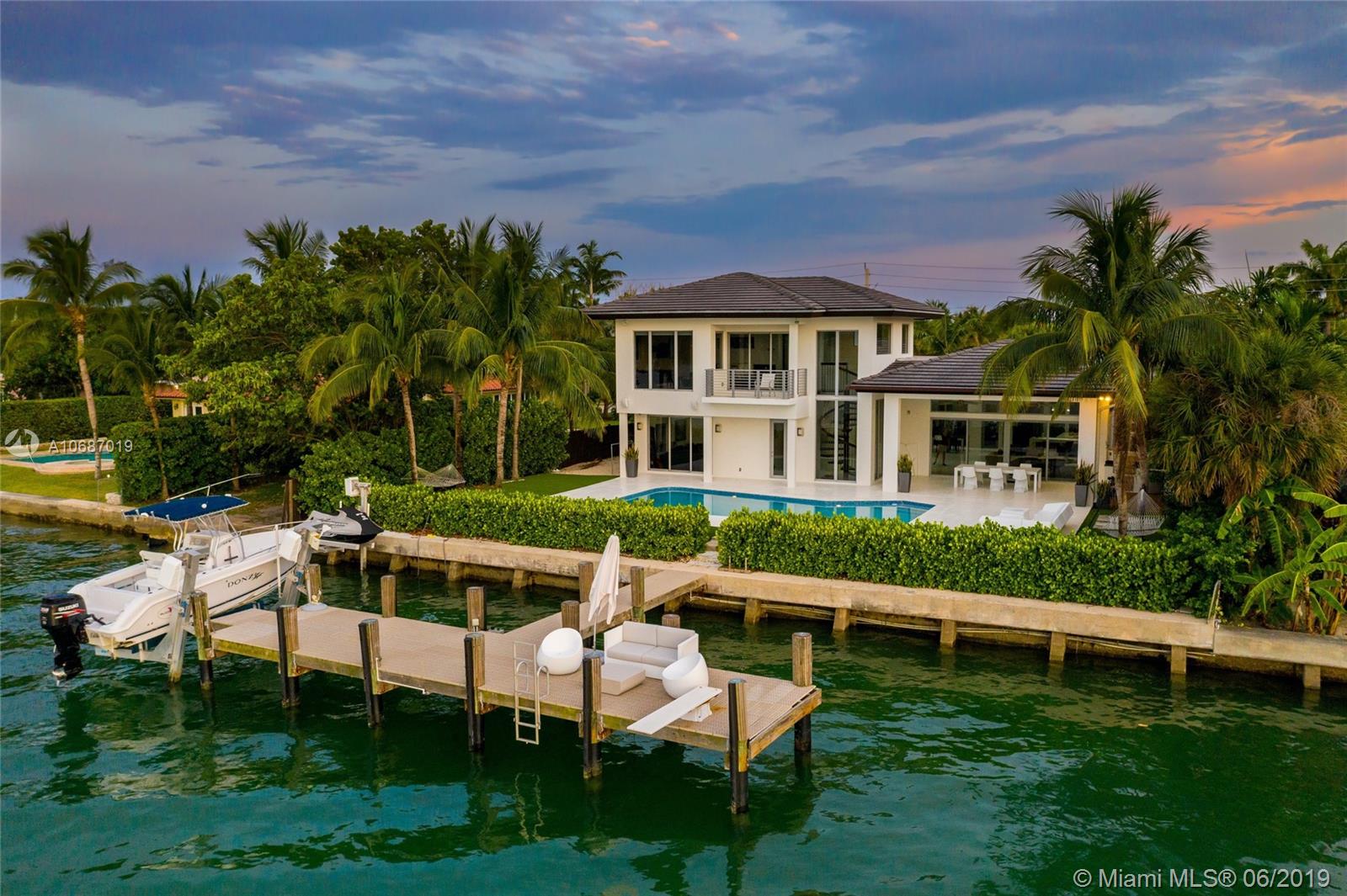 Your modern oasis in the secluded gated island of Normandy Shores awaits you. Contemporary architecture welcomes you to this home offering high ceilings, flow-through design, stunning panoramic views of the bay along with romantic sunsets every evening. 5 bedrooms, 5 bathrooms, and over 4,700 square feet of living space. Recently renovated in 2014, this home offers it all. Featuring top of the line appliances, luxurious finishes for comfort and enjoyment. Ideal for the avid boater who loves to entertain with 94 feet of water frontage, 500 foot deep water dock, and Davit system.