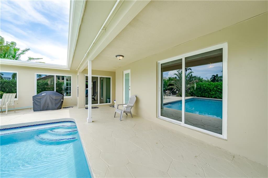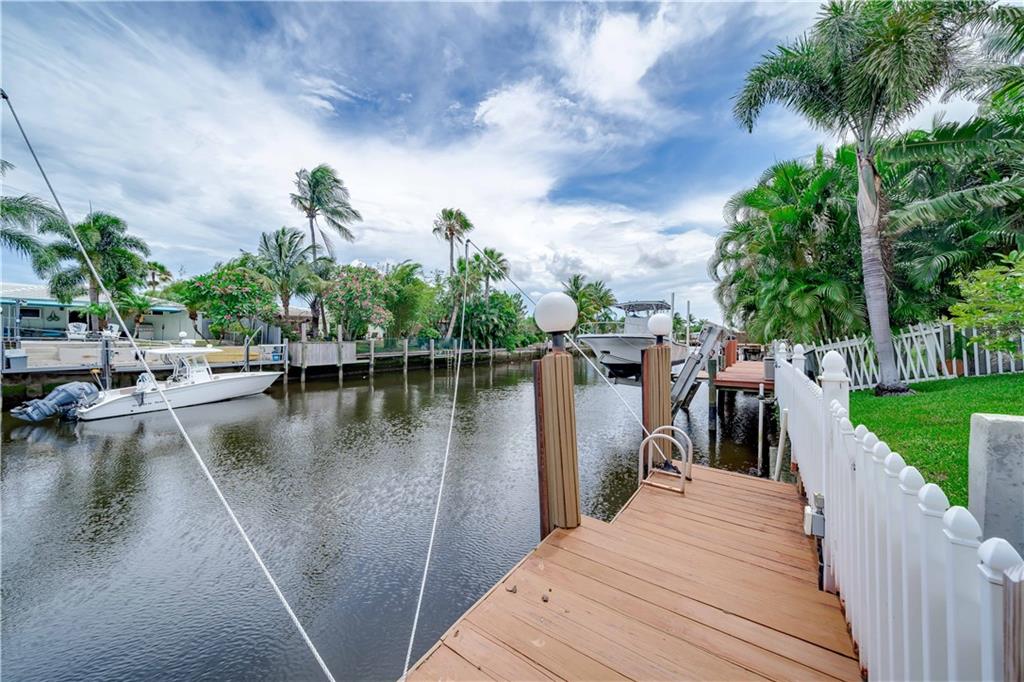 This wonderfully renovated 3 bedroom/2 bath 2 car garage waterfront home offers 65' on the H2o & is nestled into the far north end of the neighborhood on a quiet cul-de-sac street. In 2014 this home was tastefully renovated. Impact Windows & an insulated, impact resistant garage door, a new kitchen, updated baths & updated electrical panel are among the permitted improvements. The home offers an open floorplan with generous room sizes & a sought after split bedroom plan. The master opens onto the pool area which also leads out to your nicely landscaped yard & your own private dock. Minutes from the ICW with 1 fixed bridge at US 1 (approx. 11' clearance) this location is optimal. Close to schools, grocery, highways for an easy commute, about 3 miles to our beautiful beaches. Come see this!