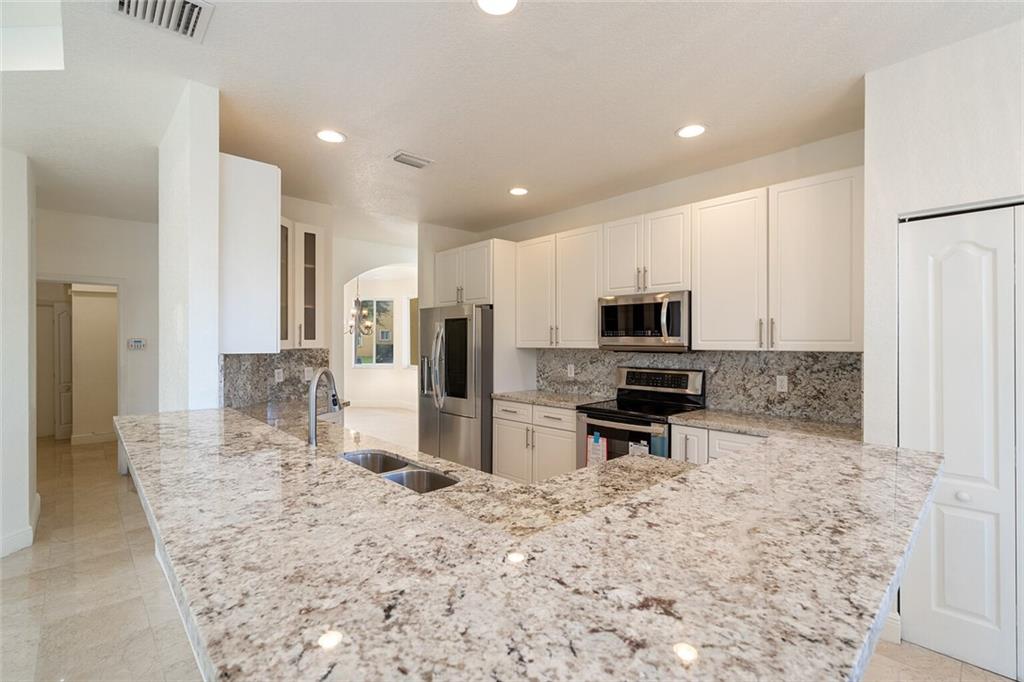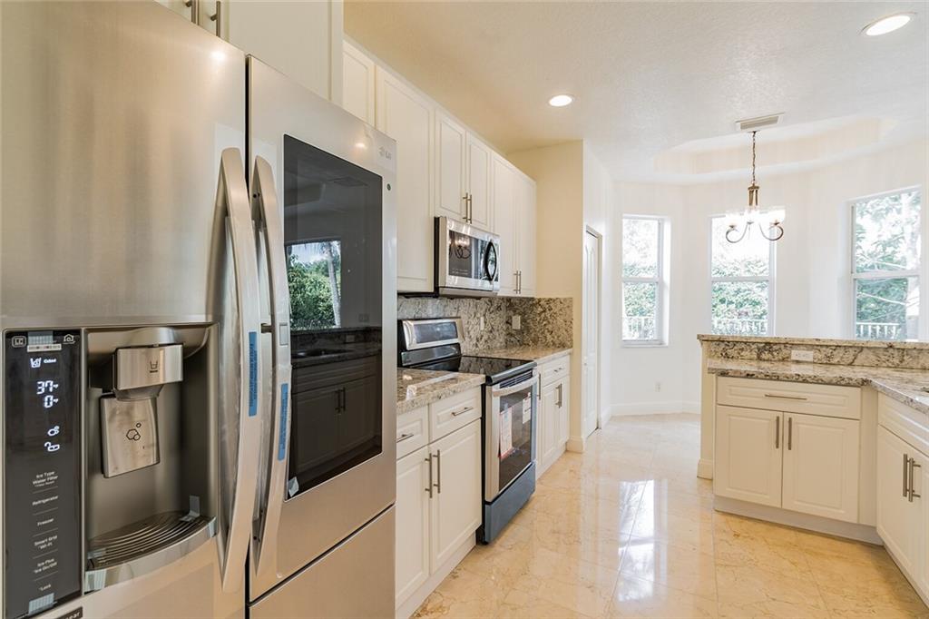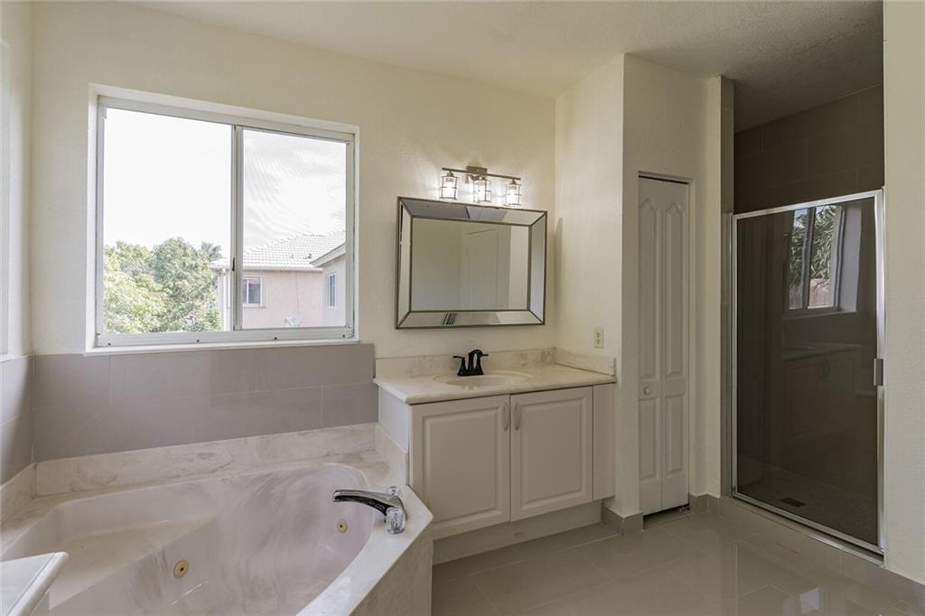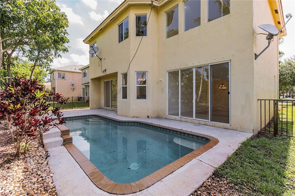 Immaculate 5 bedrooms 3 full bathroom single family home with 3 car garage located in the prestige gated community of Monarch Lakes in Miramar. This 2,895 sq. ft. property features marble floors, cathedral ceiling, brand new upgraded elegant kitchen with granite countertops, white wooden cabinetry, and the most up-to-date stainless steel appliances. This model has 1 bedroom on the first floor and 4 bedrooms on the second floor, with a loft area. All bedrooms include wood flooring and bathrooms are completely remodeled with porcelain tile. Master suite features soaking tub, separate shower, and walk in closet. The exterior features a fenced-in backyard with pool and room for entertainment.