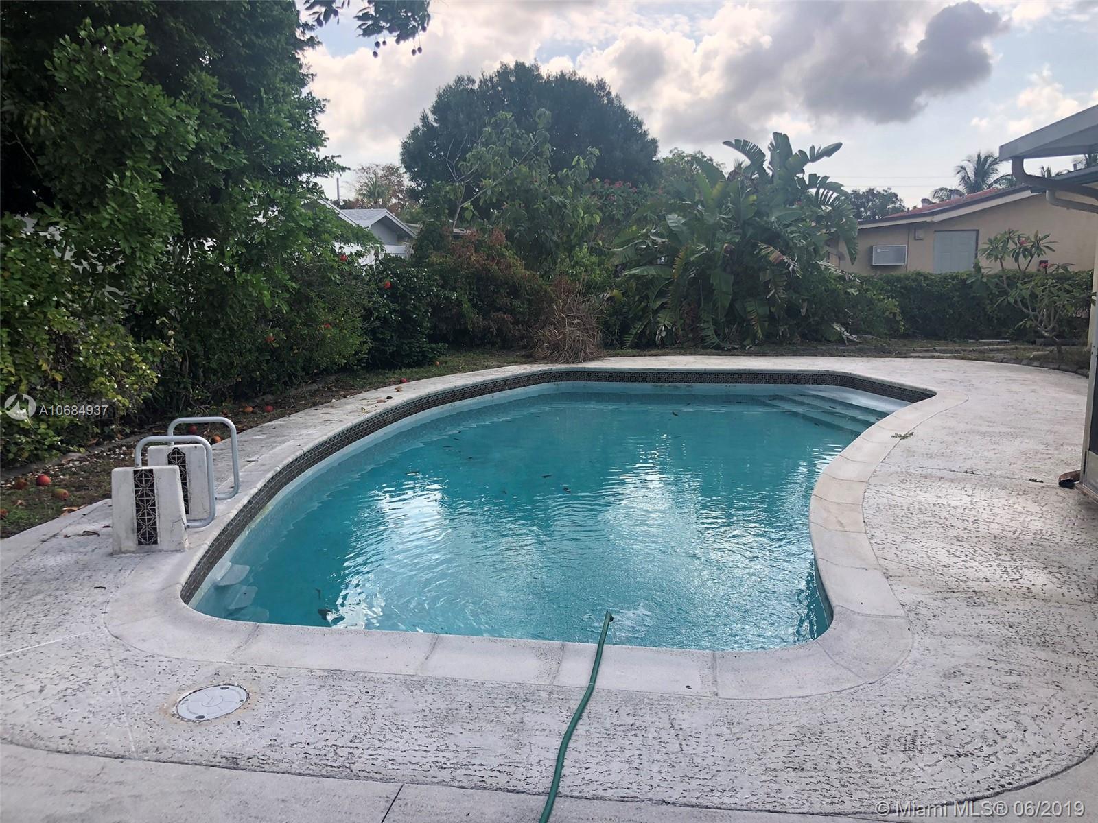 4 bed/ 2 bath house w/Pool, needs updating. Large pool in fenced in back-yard with screened porch. Kitchen pass thru to outside covered patio. Tiled floors with carpet in bedrooms. Spacious kitchen opens to Living room and formal dining room. Master bedroom w/new updated bathroom features large dressing double closet. 2nd bathroom w/double sink and tub. Full size 1 car garage. Electric water heater. Central A/C. Circular driveway. Located in Palm Aire between Commercial Blvd and W. Atlantic Blvd. Close to Turnpike, I95 & Ft Lauderdale Executive Airport.