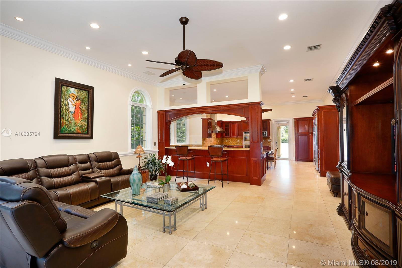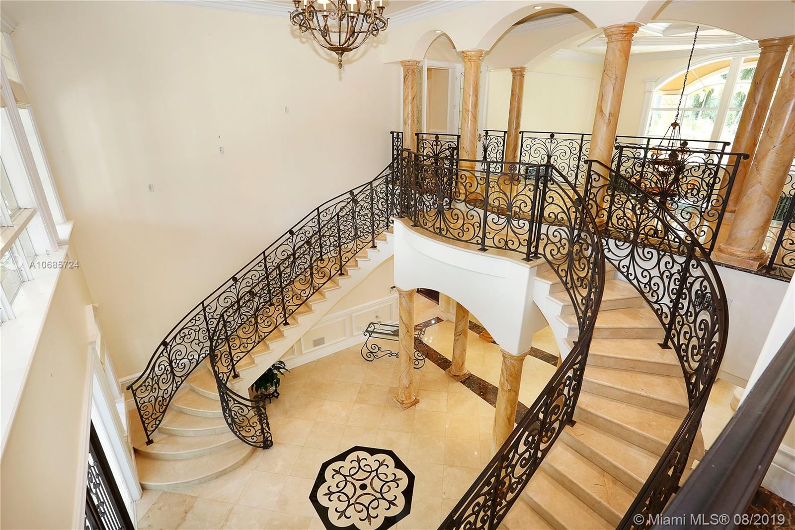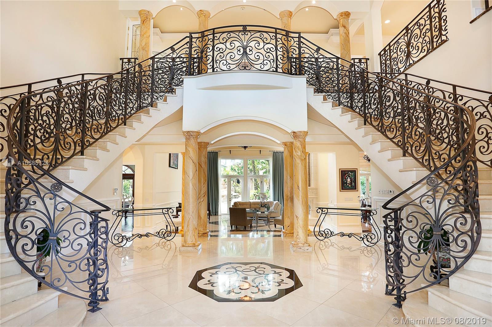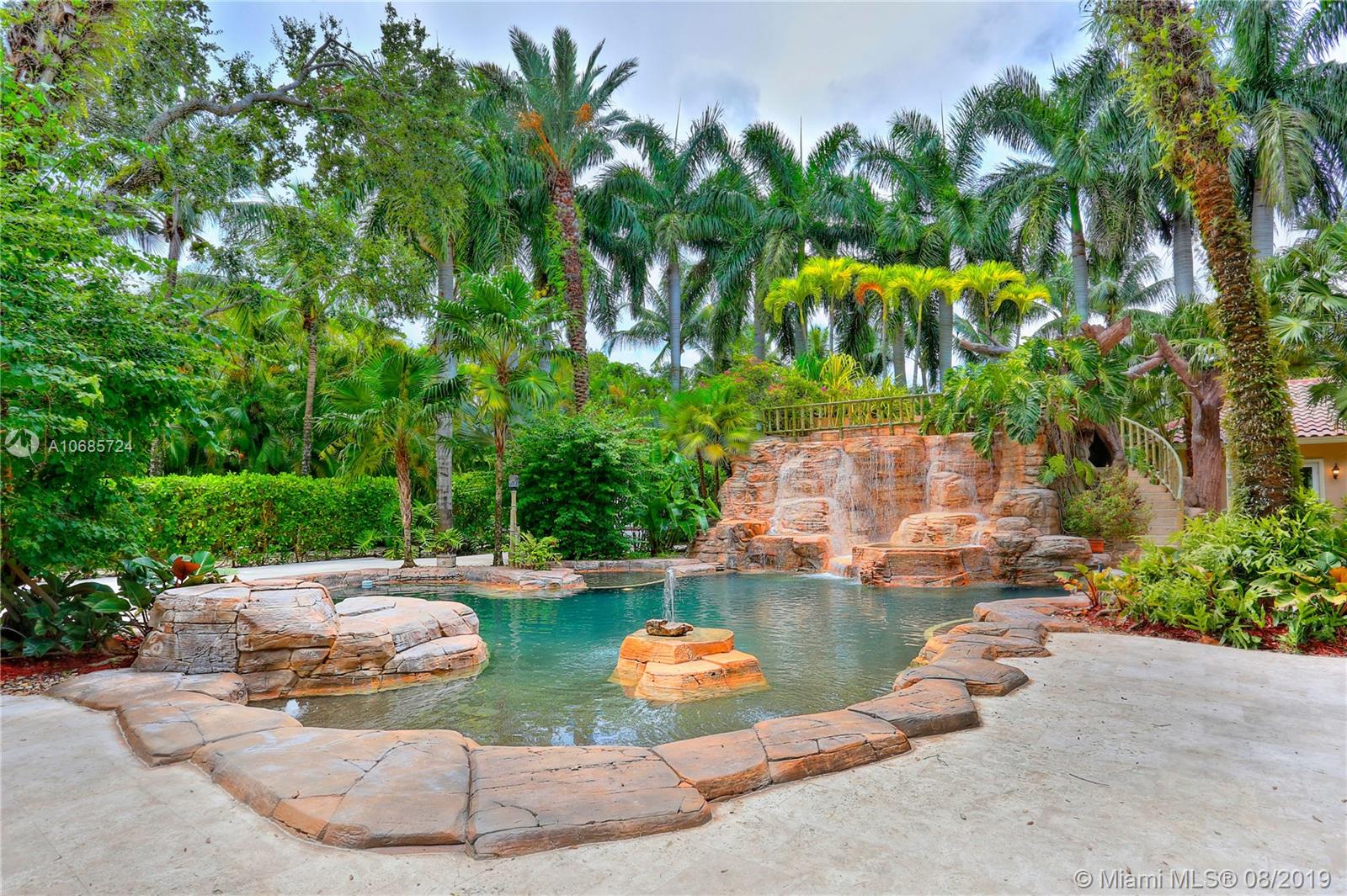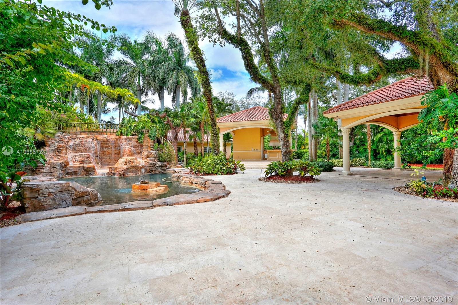 Majestic and Gated 2 Story Estate on Lush Acre Plus! Custom built 9792 sq ft. on 51,400 sq. ft lot! Grand Entrance Foyer with double staircase! Grand Spaces and double volume ceilings with Finest Finishes and Details throughout! Banquet sized formal dining and living room, 6 en-suite bedrooms, Elevator, 13 Seat Home Theater, Billiard/Game room, Cherry Wood Office/Library and separate building on property with Gym and extra storage. Amazing back yard for entertaining featuring oversized covered terraces, Resort Style Pool with a Cascading Waterfall & Second Story Jacuzzi, (pool was featured in Pinecrest Magazine in Aug 2014). Outdoor Kitchen with Cabana Bath and Professionally Manicured Landscaping with Majestic Palm Trees throughout.