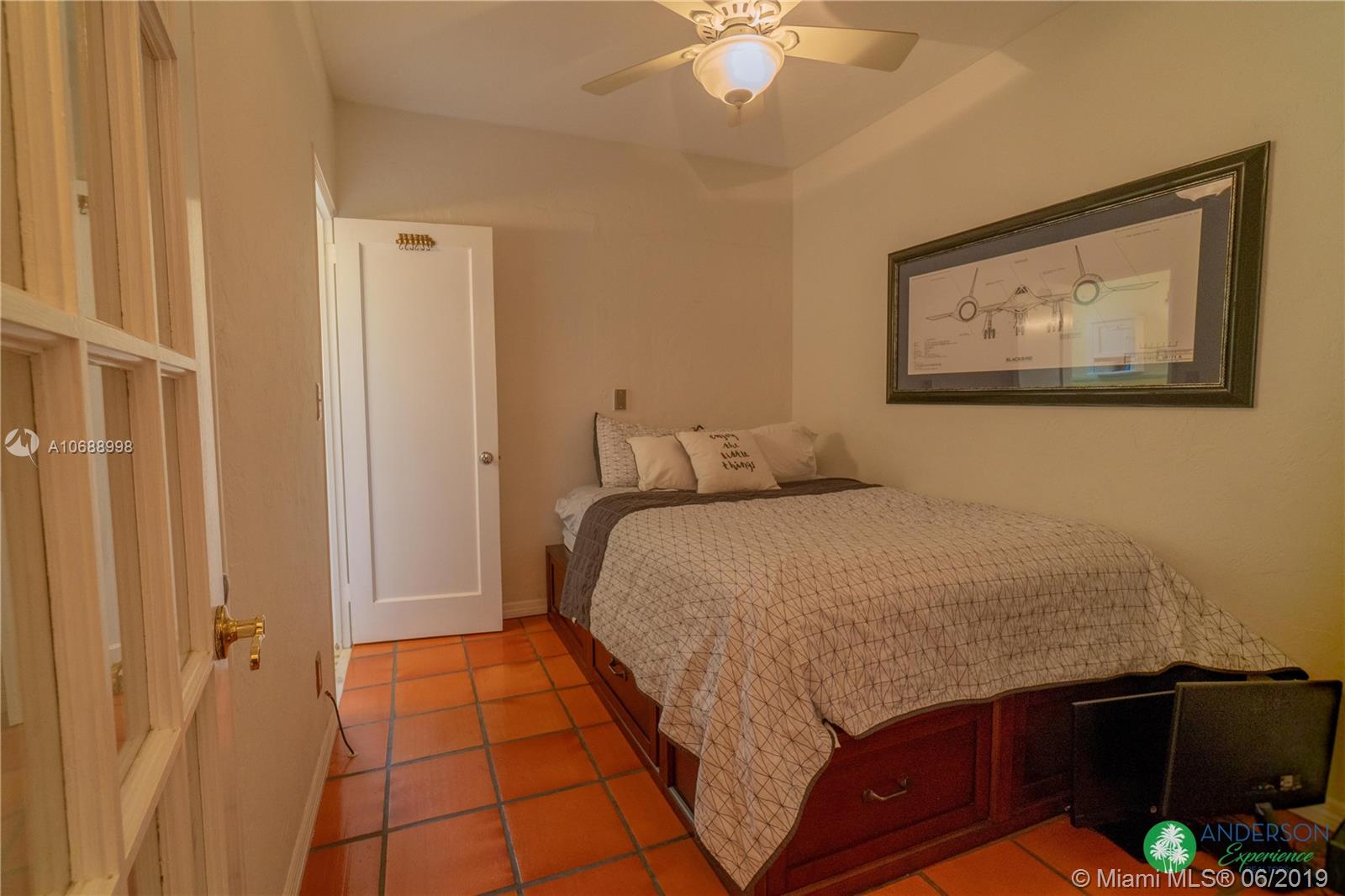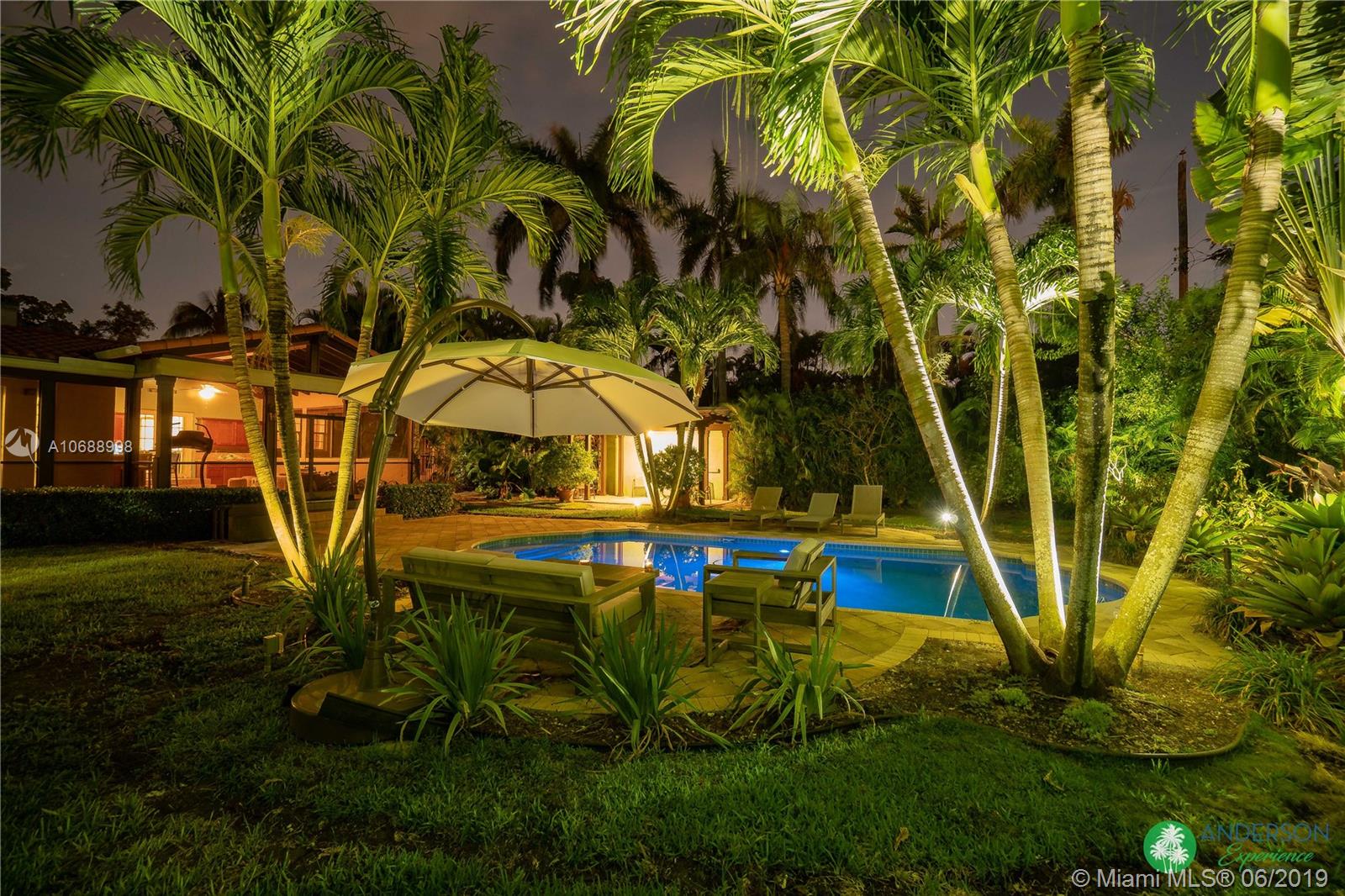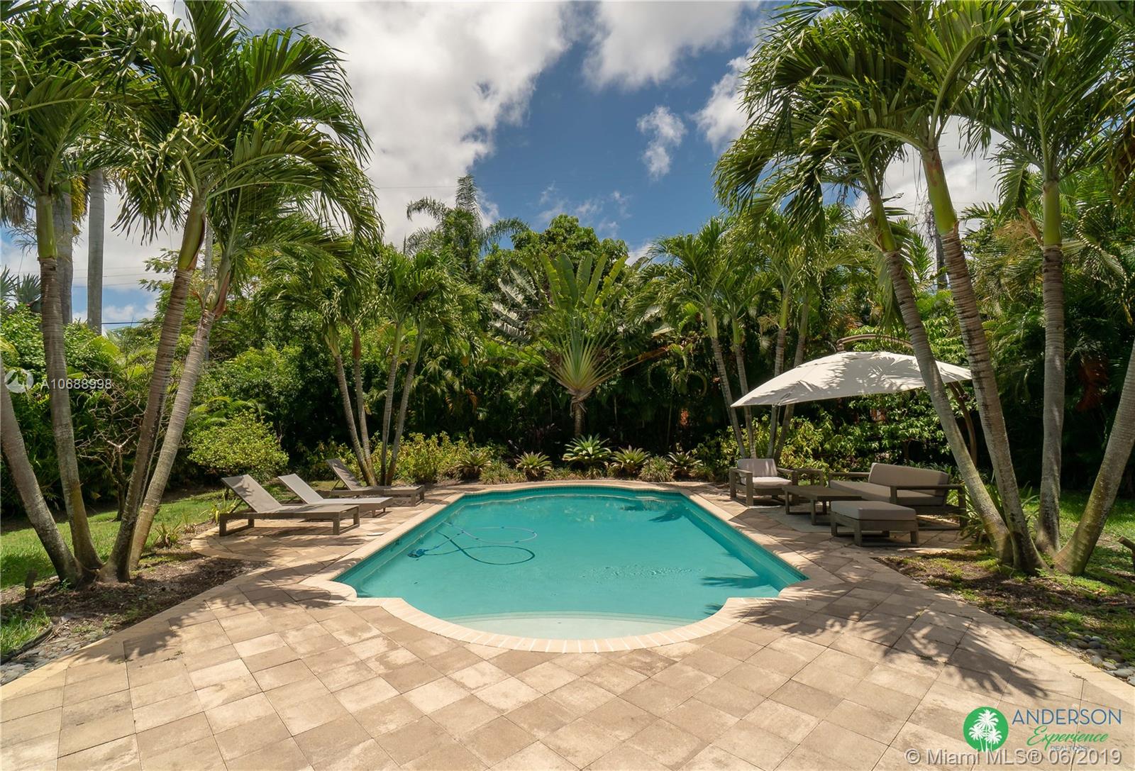 Great house to call home! Located a few blocks from Granada Golf Course and the Coral Gables Country Club. Built in 1944, this charming Art Deco home sits on a beautiful tree lined street w/ a circular driveway and a 1-car garage. The living room has beautiful Art Deco features in the ceiling & mantel of the working fireplace. The home is a split plan 3b/3b. The master bedroom features a walk-in closet & master bath w/ his n’ hers sinks. From the living room, French doors open to a huge screened in patio w/ wood beam vaulted ceiling, wet bar, serving station, and plenty of room for a dining table and seating area. Sparkling salt water pool with brick paved deck area, tropical landscaping, detached gazebo.