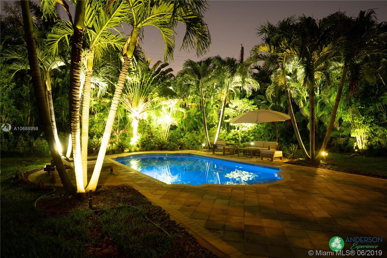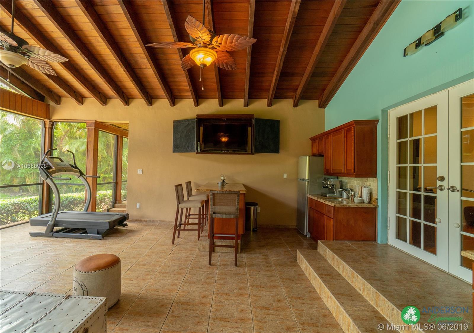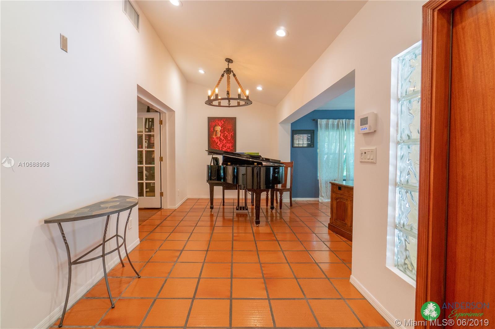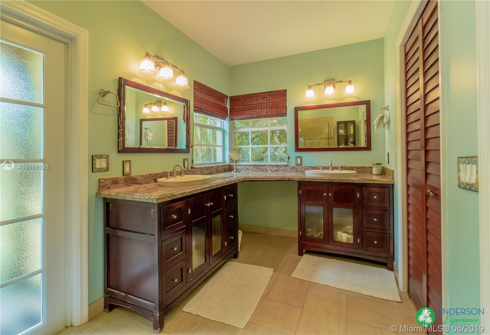Great house to call home! Located a few blocks from Granada Golf Course and the Coral Gables Country Club. Built in 1944, this charming Art Deco home sits on a beautiful tree lined street w/ a circular driveway and a 1-car garage. The living room has beautiful Art Deco features in the ceiling & mantel of the working fireplace. The home is a split plan 3b/3b. The master bedroom features a walk-in closet & master bath w/ his n’ hers sinks. From the living room, French doors open to a huge screened in patio w/ wood beam vaulted ceiling, wet bar, serving station, and plenty of room for a dining table and seating area. Sparkling salt water pool with brick paved deck area, tropical landscaping, detached gazebo.