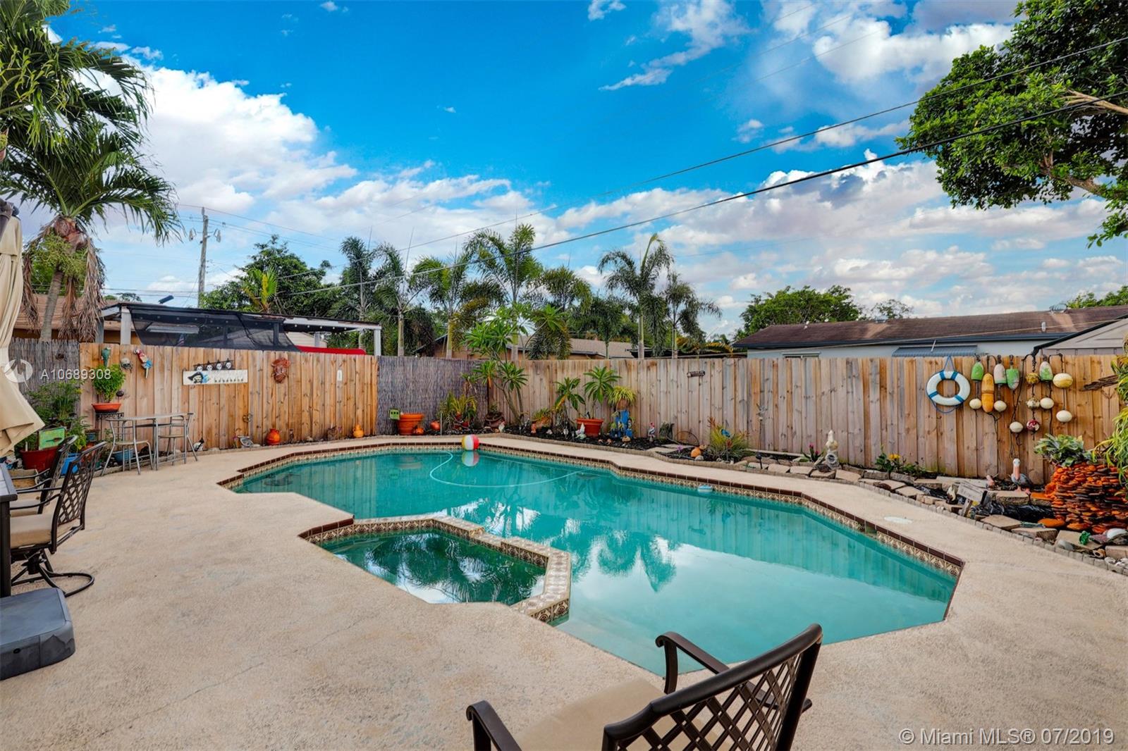 KEY WEST MEETS HOLLYWOOD! IMMACULATE POOL – IMPACT WINDOWS ON MOST OPENINGS, ACCORDIAN SHUTTERS ELSEWHERE; NATURAL GAS IS IDEAL FOR A GENERATOR; NEW A/C; UPDATED KITCHEN W GRANITE, REAL WOOD CABINETS, HUGE LAUNDRY/UTILITY ROOM - 4 generous sized bedrooms, Triple split floor plan allows for in-law quarters, extended family, guests, or home office. The comfortable FAMILY ROOM flows out to the SPARKLING oversized pool patio gardens. This delightful house and the AMAZING GARDENS have been lovingly cared for. NO FHA, VA OK! HUGE PRICE REDUCTION, HURRY.