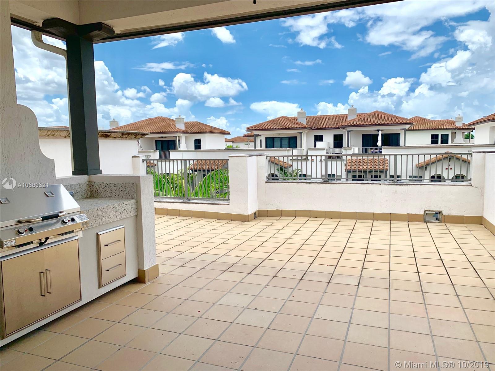 Excellent Location, This Luxury and beautiful 3 Story Townhome is in Downtown Doral, Featuring 4 Bedrooms, 3/1 Baths with a large living room in the top third floor that you can easily convert into a fourth Bedroom with a private Bath, convert into a Penthouse Guest room or office! First floor with an Amazing Open Kitchen, full of upgrades, with European Cabinets and top of the line Stainless Steel Appliances, high ceilings with marble in the First floor and in the main Bath, wood floors throughout bedrooms. Enjoy the views from Open Balcony, roof top Terrace with outdoor built-in grill (BBQ). Close to Schools, Shops, Dining, Trump International Golf Resort, Miami International Airport and more. Wont last, This beautiful Townhome is ready to move in !
