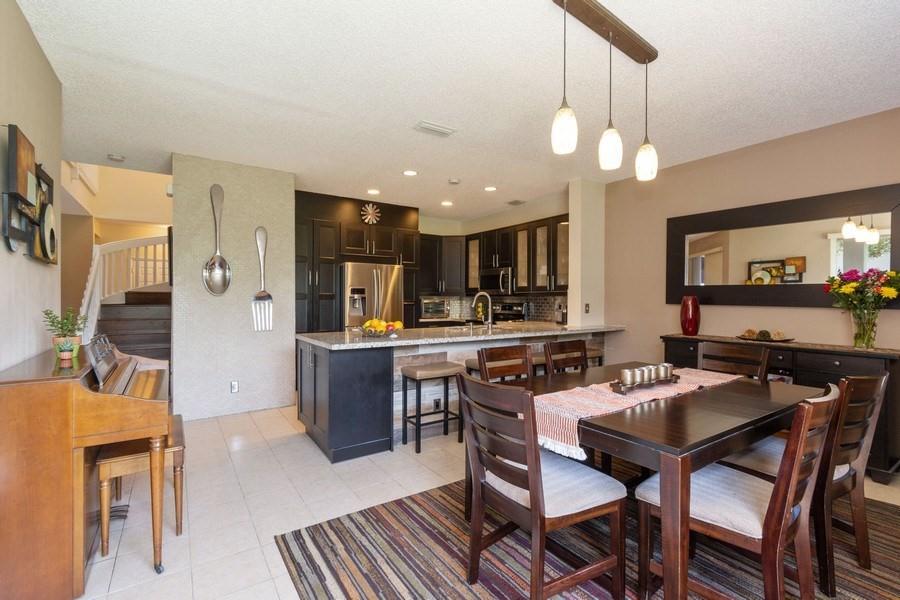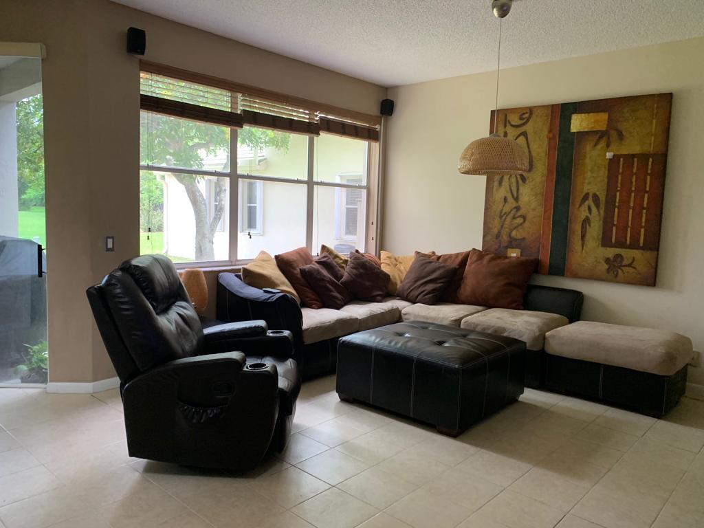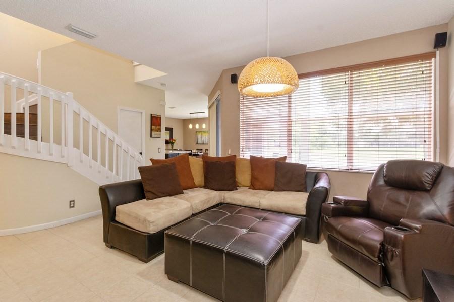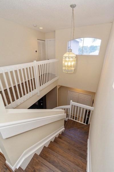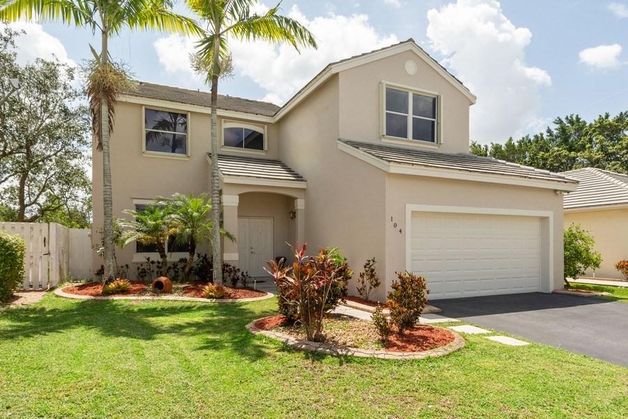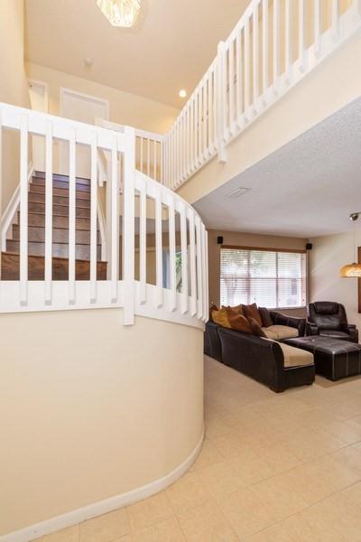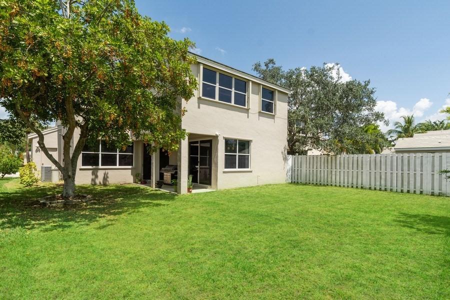Beautiful and bright 4 bedroom home with den/office downstairs easy to convert into a 5th bedroom. Gorgeous upgraded kitchen with granite countertop & stainless steel appliances. All bathrooms tastefully remodeled. Elegant wood stairs and floors in all bedrooms. Master suite with custom made walk in closet. Newer A/C. Accordian shutters upstairs. Enjoy spectacular patio and yard that backs to common area. Freshly painted. Amazing view from living area and master. Located on a cul-de-sac. Community offers pool, play area and guard at gate.