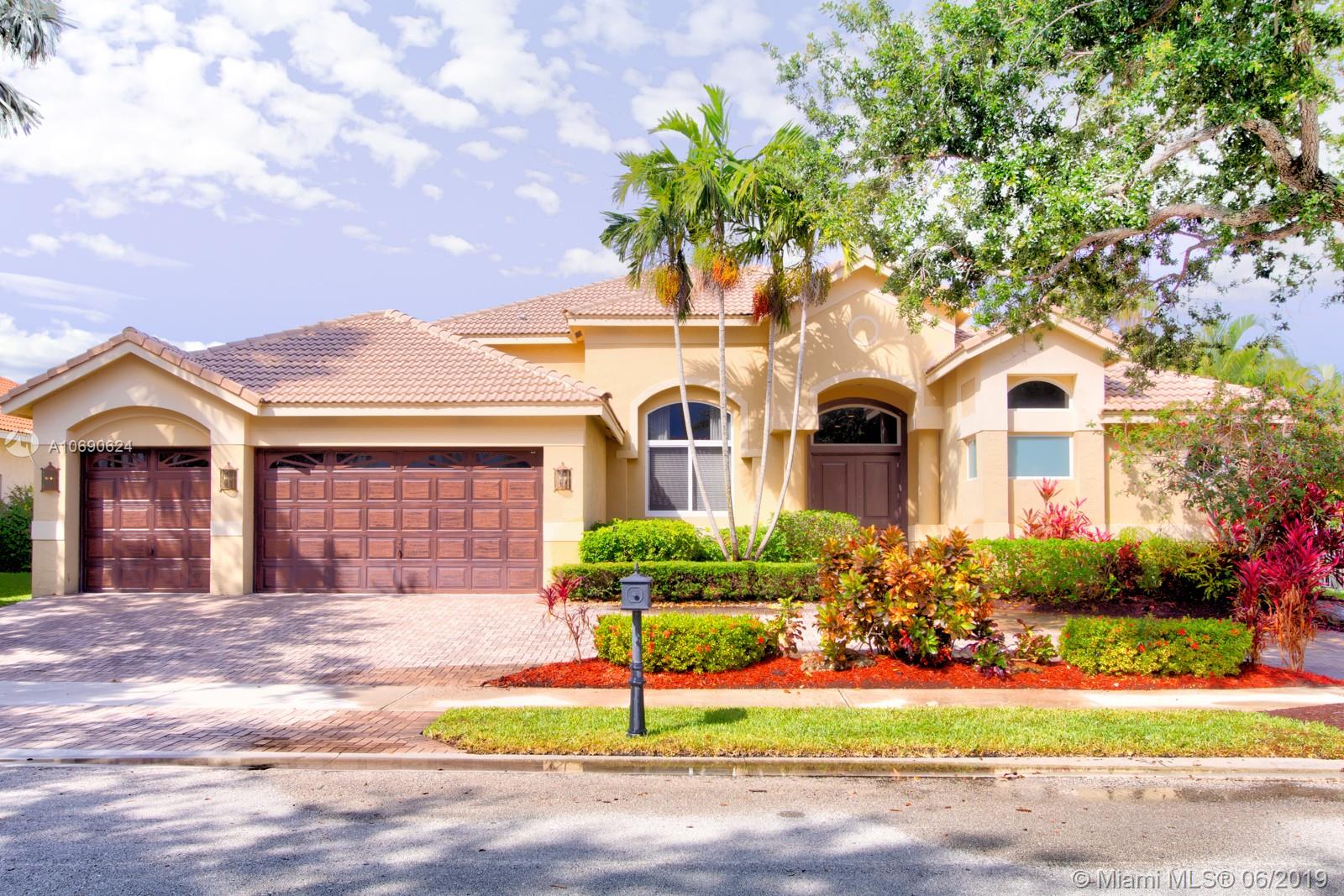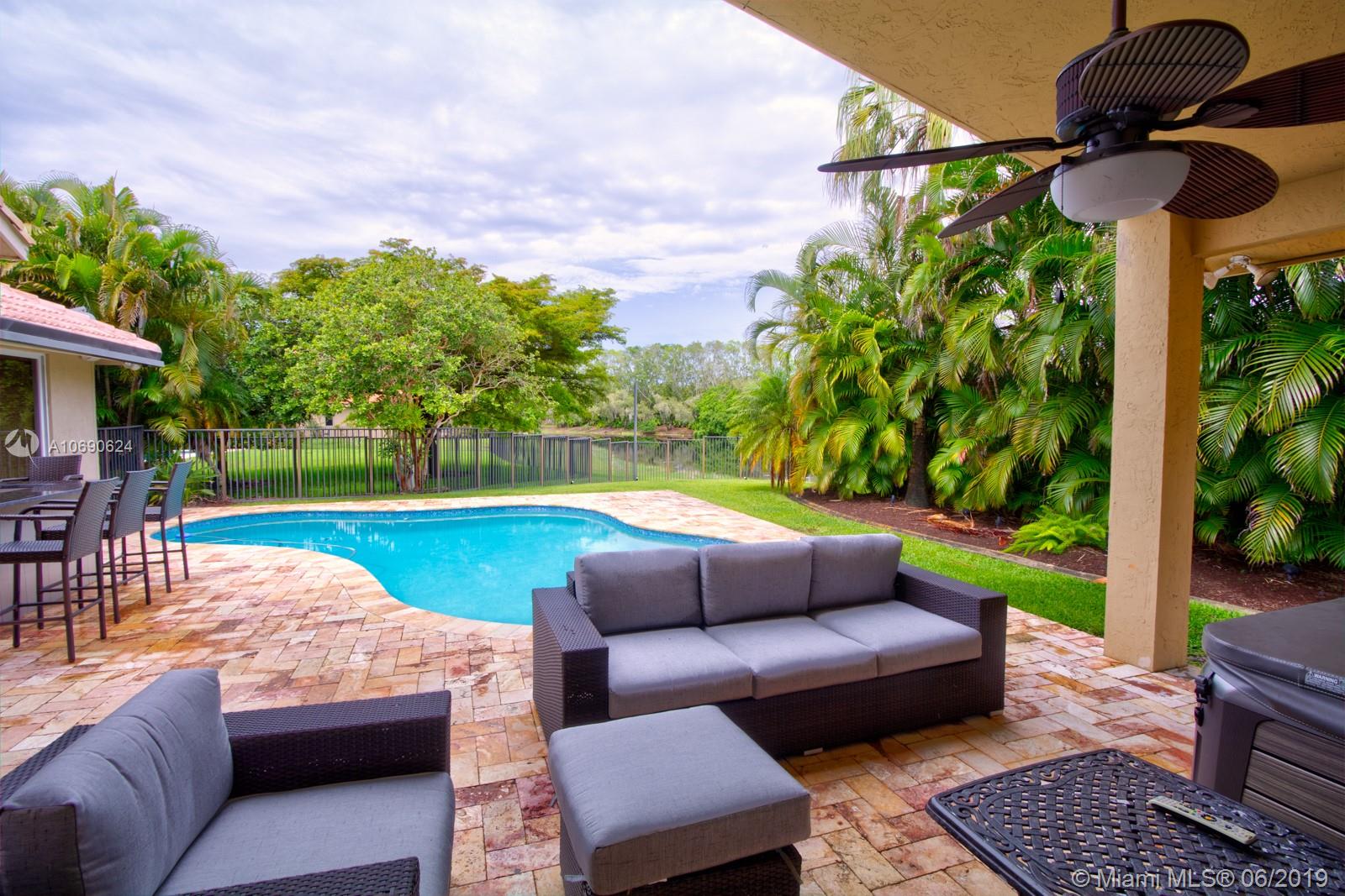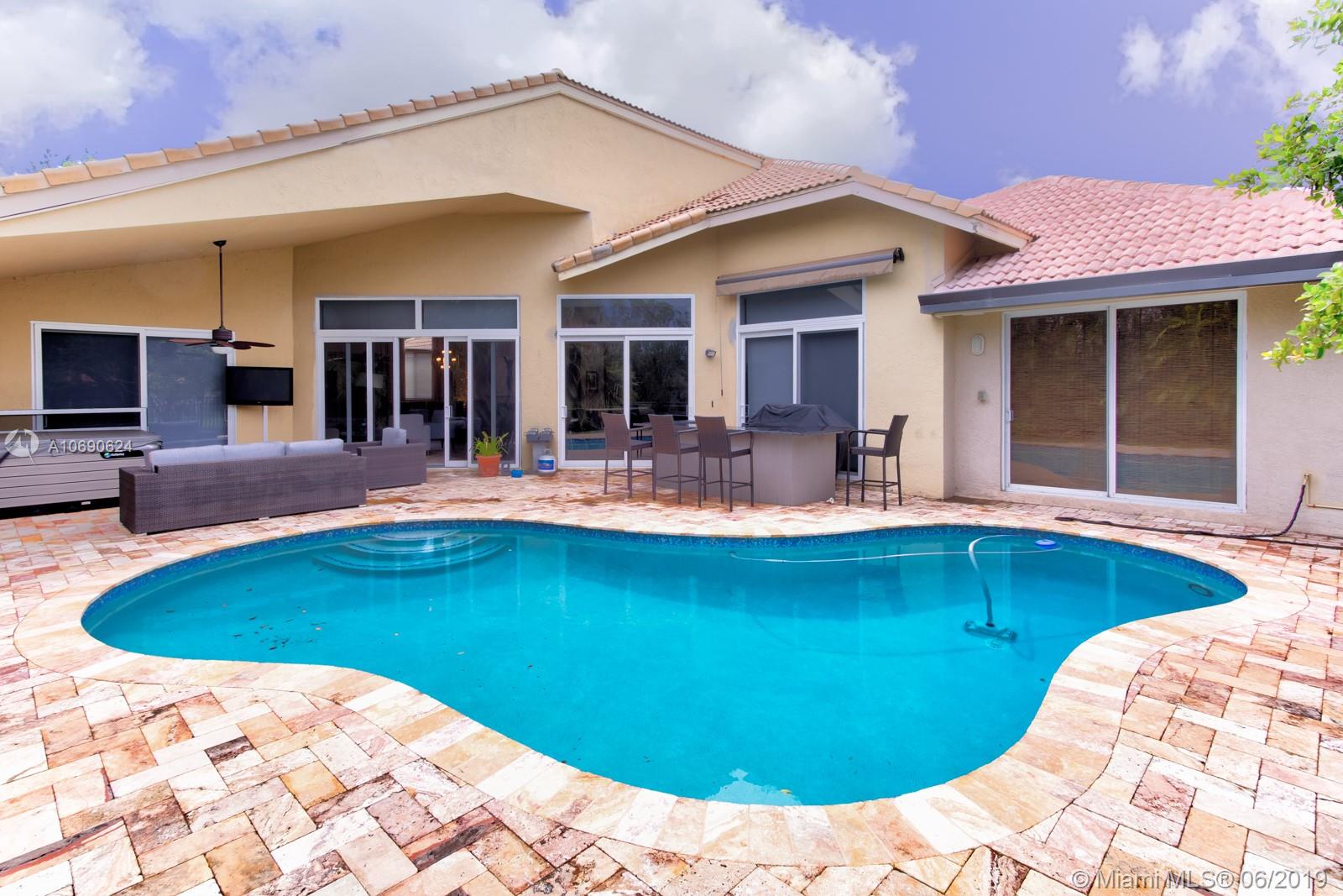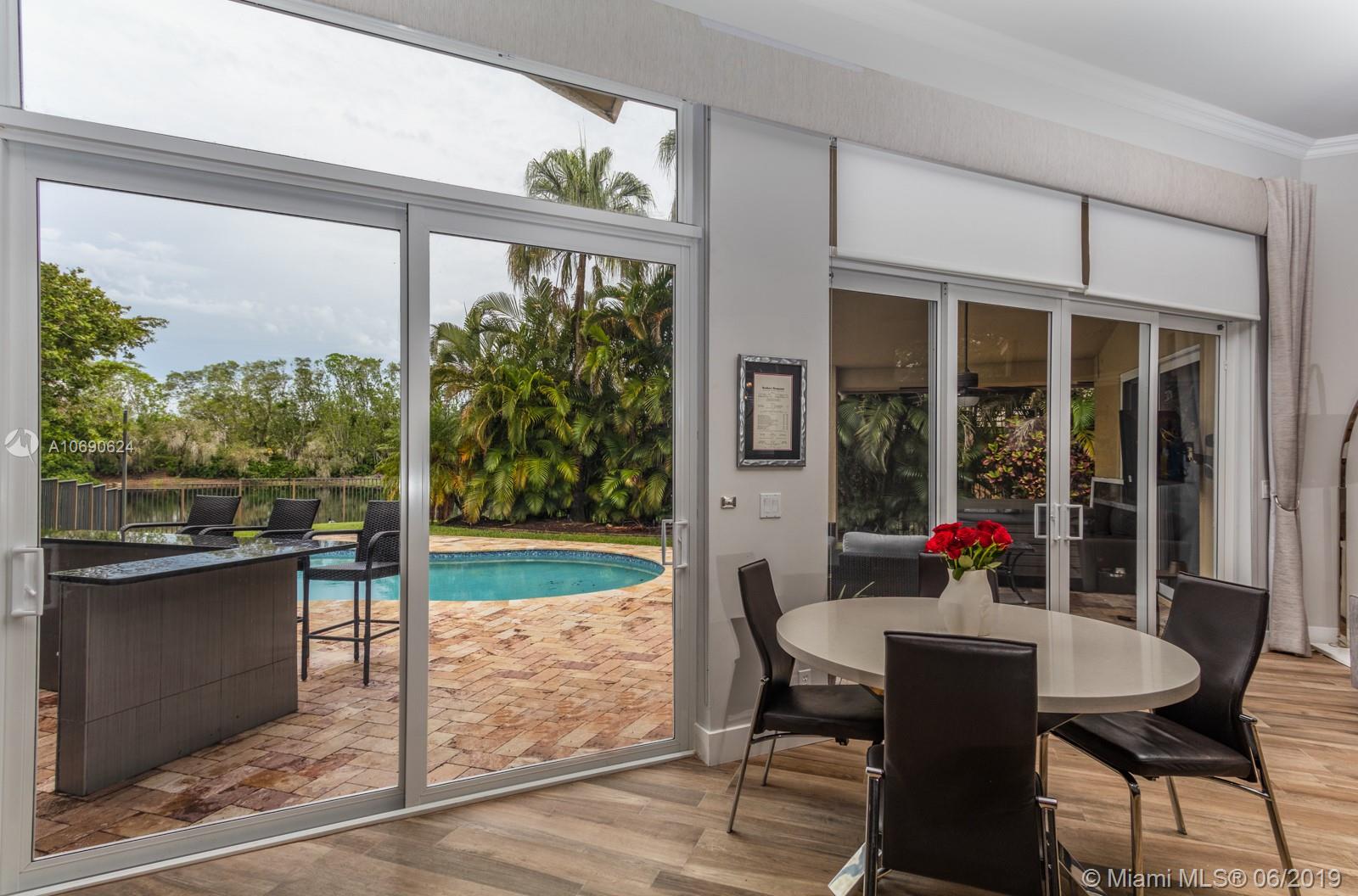 Beautiful turn-key modern house with lake view. Fully remodeled 5 bedrooms and 3 bathrooms. Baseboard and crown molding throughout. Upgraded gourmet kitchen, quartz countertops, stainless steel appliances, and breakfast area. Hurricane impact windows throughout the home. "A" rated schools, private/peaceful backyard with bar and pool. The home is located in Weston Hills.