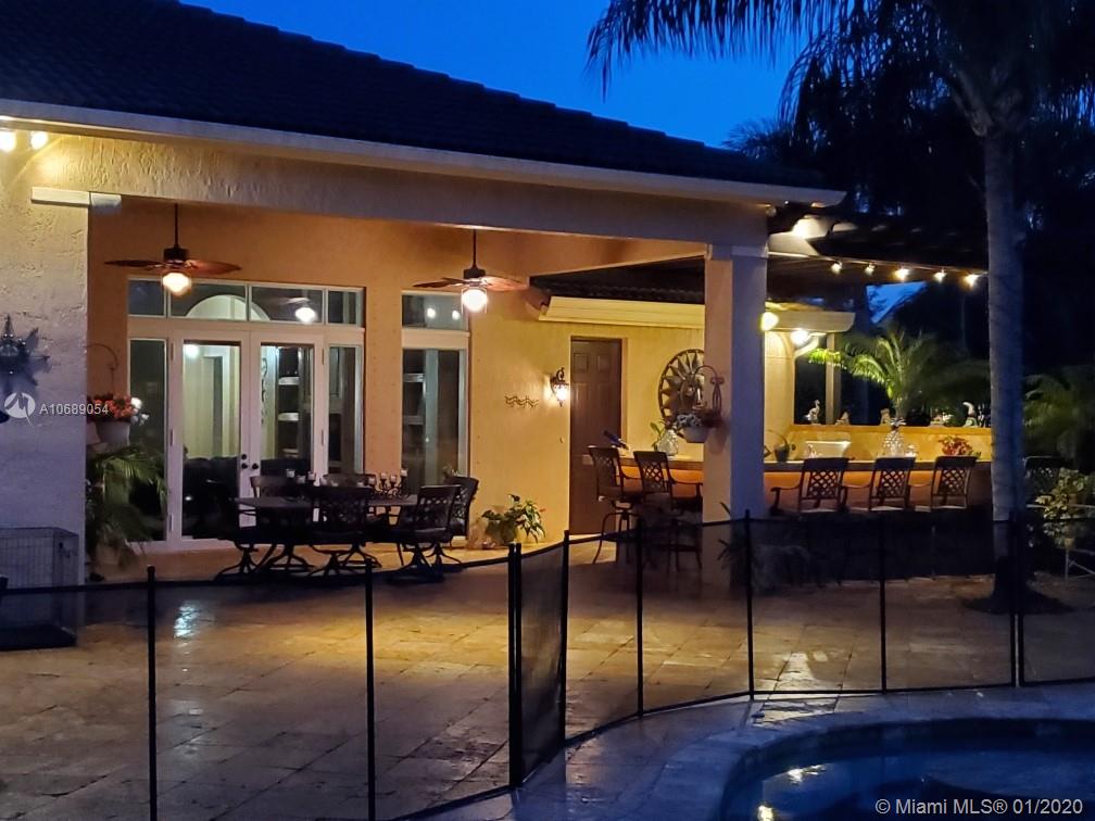 Come to relax looking over this beautiful backyard, an unique experience, allow yourself to feel like home! This is the only lake view property available for sale in Saddlebrook Community. Plus this over 35K sqft lot, outdoor kitchen, fruit tree, salt pool and spa. This one story house w/ 6 beds+a den, 1 extra suit (@ 2nd floor) for guests with a private entrance, master bed w/ sitting room/office w/overlooking view to the lake/pool and spacious bathroom, kitchen with maple cabinets, double oven, cooking island and butler/wine station, 3 cars garage plus long driveway for extra parking, garage cabinets will stay , pool table may stay, NO Carpet, high ceiling throughout the house. GENERATOR professionally installed included