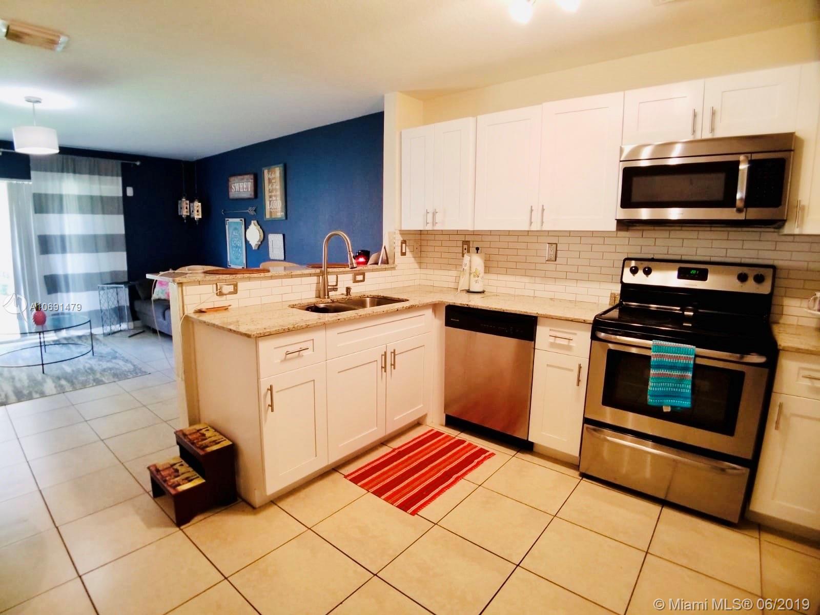Beautiful Townhouse at Melrose Point in Monarch Lakes, Miramar. This spacious home features 3 bedrooms and 3 full bathrooms (1 bedroom and 1 full bathroom on the first floor plus 2 bedrooms and 2 full bathrooms on the second floor) with 1,489 sq ft of living space. The kitchen has been remodeled with an open modern look, white wooden cabinets, granite counter tops, stainless steel appliances, and modern fixtures. Lot of closets/storage spaces, washer and dryer upstairs, and fantastic resort amenities that the community has to offer: swimming pool, clubhouse, exercise facilities, lake, tennis courts & playgrounds, much more to entertain. New roof and new exterior paint from 2019. Maintenance fees includes Cable and Wifi. Property is in great conditions and is being sold AS-IS.
