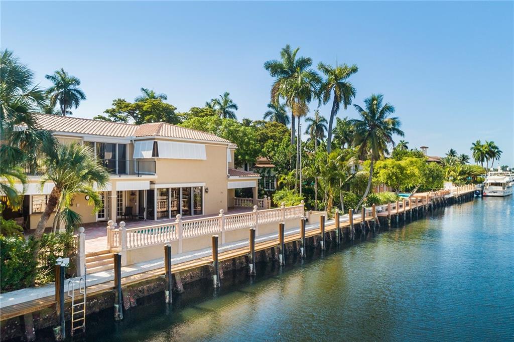 Located on one of the highly desirable South Las Olas Isles.Enjoy rare & valuable 120ft of deepwater dockage for upto a 100ft yacht.This light bright residence has a 2018 roof & 2018 2 air conditioners. Extremely well maintained with a high elevation, strong curb appeal including a large private side lawn area for children or pets. 20ft volume ceilings feature in the living room with bar area & family room, all water facing. Well equipped kitchen is centrally located to the breakfast & formal dining room.First level also includes a VIP Guest Suite & second bedroom suite perfect for mother-in-law/boat captain. Second level includes the expansive Master Suite with large balcony & outdoors spiral staircase to pool plus two additional bedrooms & baths.Perfect for the avid entertainer or boater