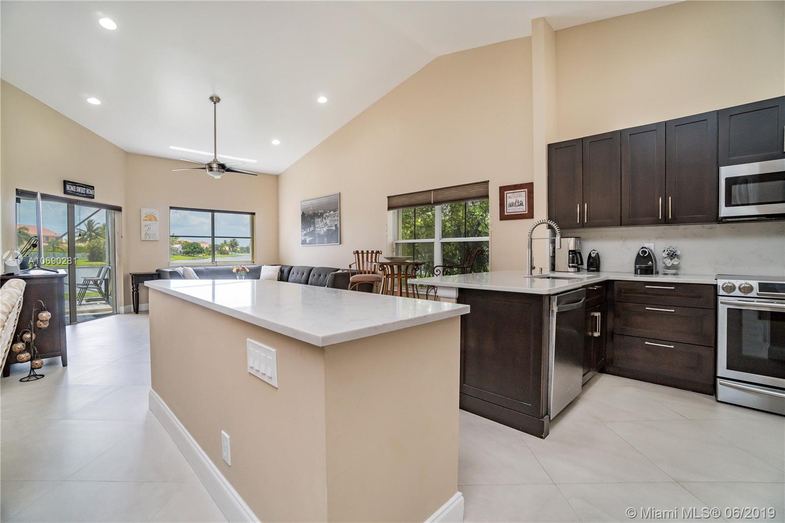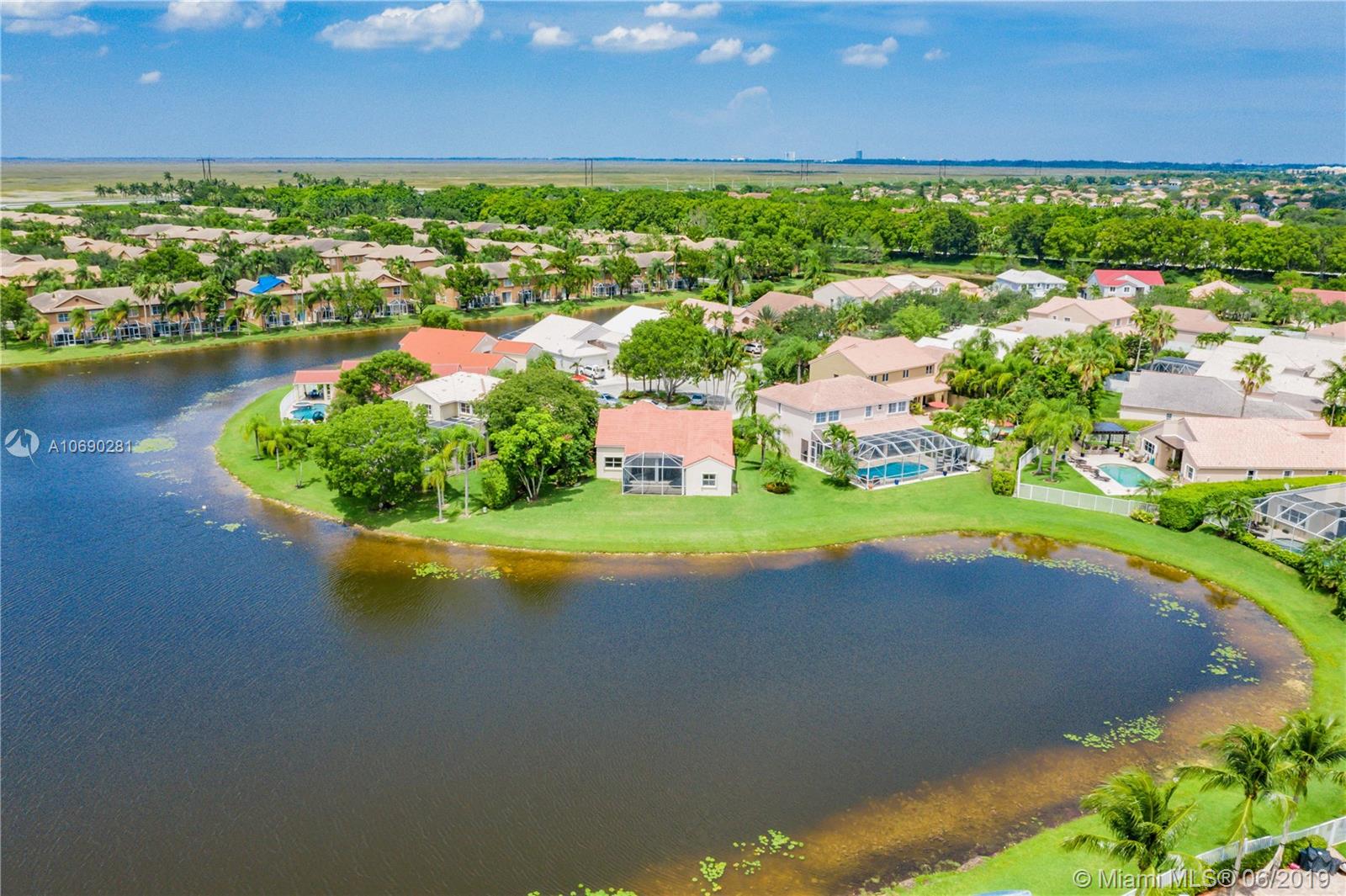 BREATHTAKING IS THE WORD- Impressive & expansive water views of this lake setting. We Challenge You To Find.. a home situated on a quiet cul-de-sac with a over-sized pie shaped lot .. your own SPACE and PRIVACY. This home consist of many PLUS features- porcelain tiles & beautiful hardwood floors, remodeled kitchen w/ quartz countertops, maple cabinets, designer island, chic remodeled master bath, soaring vaulted ceilings with recessed lighting, new Hunter Douglas window treatments, NEST smart thermostat, 400 Sq-ft porch with screen enclosure, recently painted exterior, fascinating SUNSETS on the lake, Kids' Special, Near & Zoned A+ Schools- EAGLE POINT, TEQUESTA TRACE, CYPRESS BAY. In Desirable "The Falls" gated community-heart of Weston-minutes from freeway. Come-A-Running on This One !